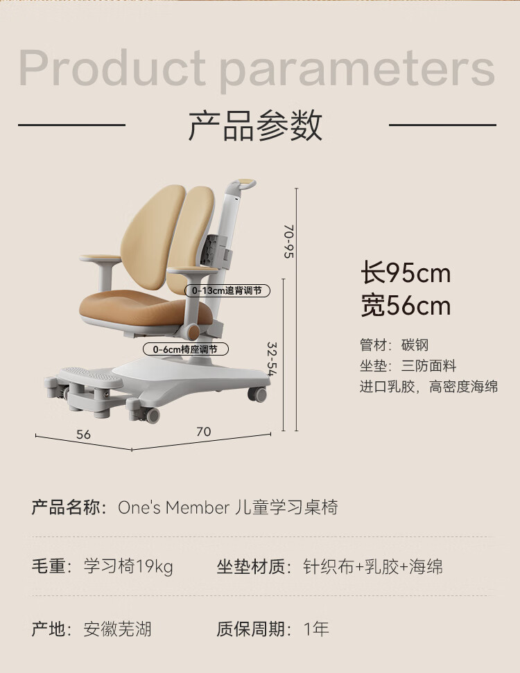 1号会员店(One's Member)乐学派青少年学生升降追背矫姿写字椅学习椅座椅