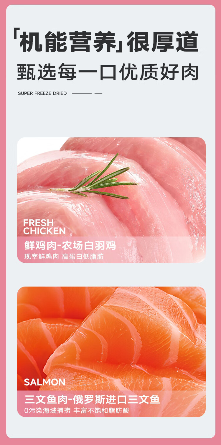 京觅猫粮 冻干三拼兔肉高鲜肉益生菌 幼猫成猫试用装 出行便携 100g