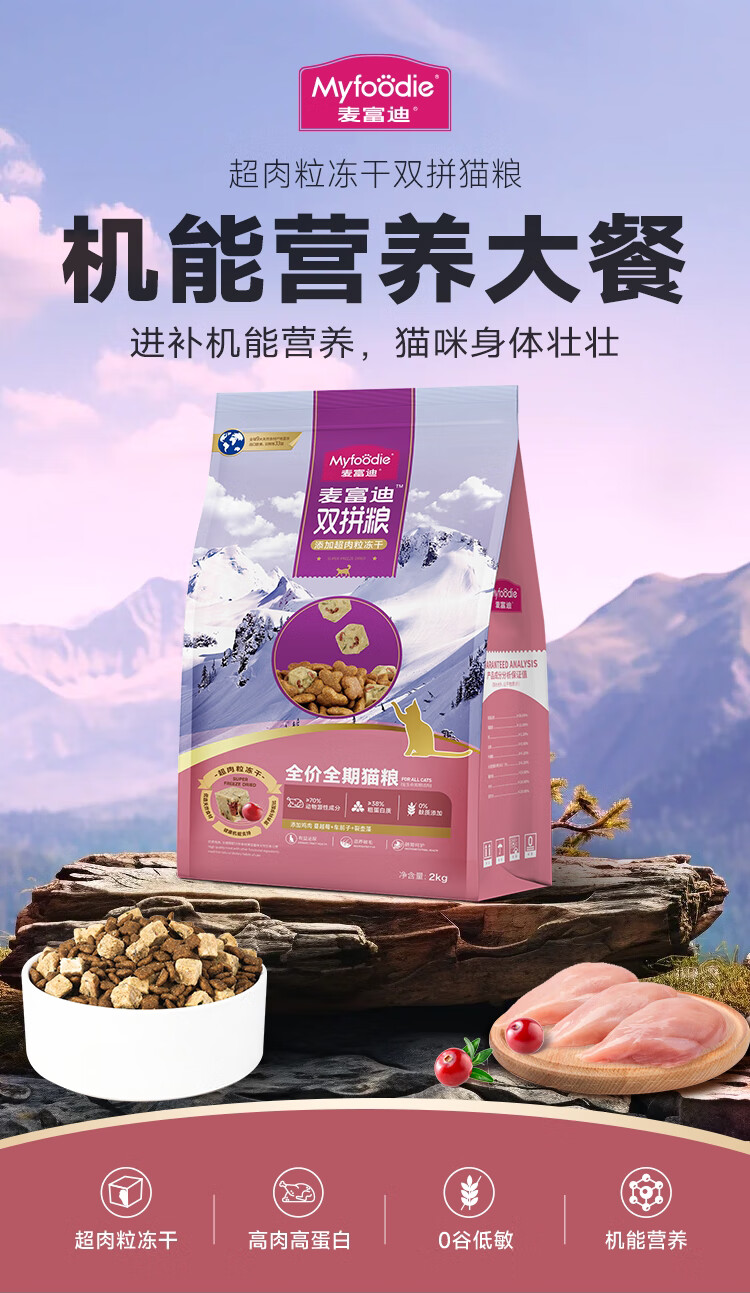 麦富迪 猫粮 超肉粒冻干双拼全价全期猫粮(新升级 0谷物 高肉 高蛋白) 【升级无谷】鸡肉配方10kg
