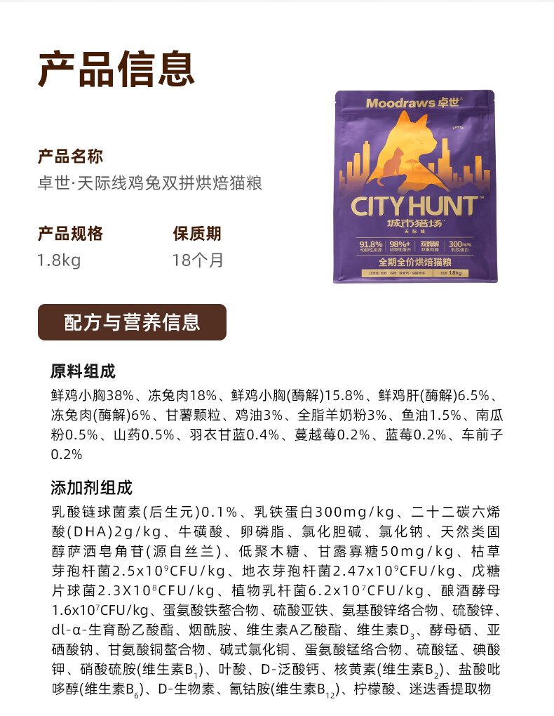 卓世双酶解鲜鸡肉兔肉低温烘焙猫粮乳铁蛋白羊奶粉成幼猫专用全价英短 【爆款】鸡兔双拼烘焙粮1.8kg+试吃装50g*4