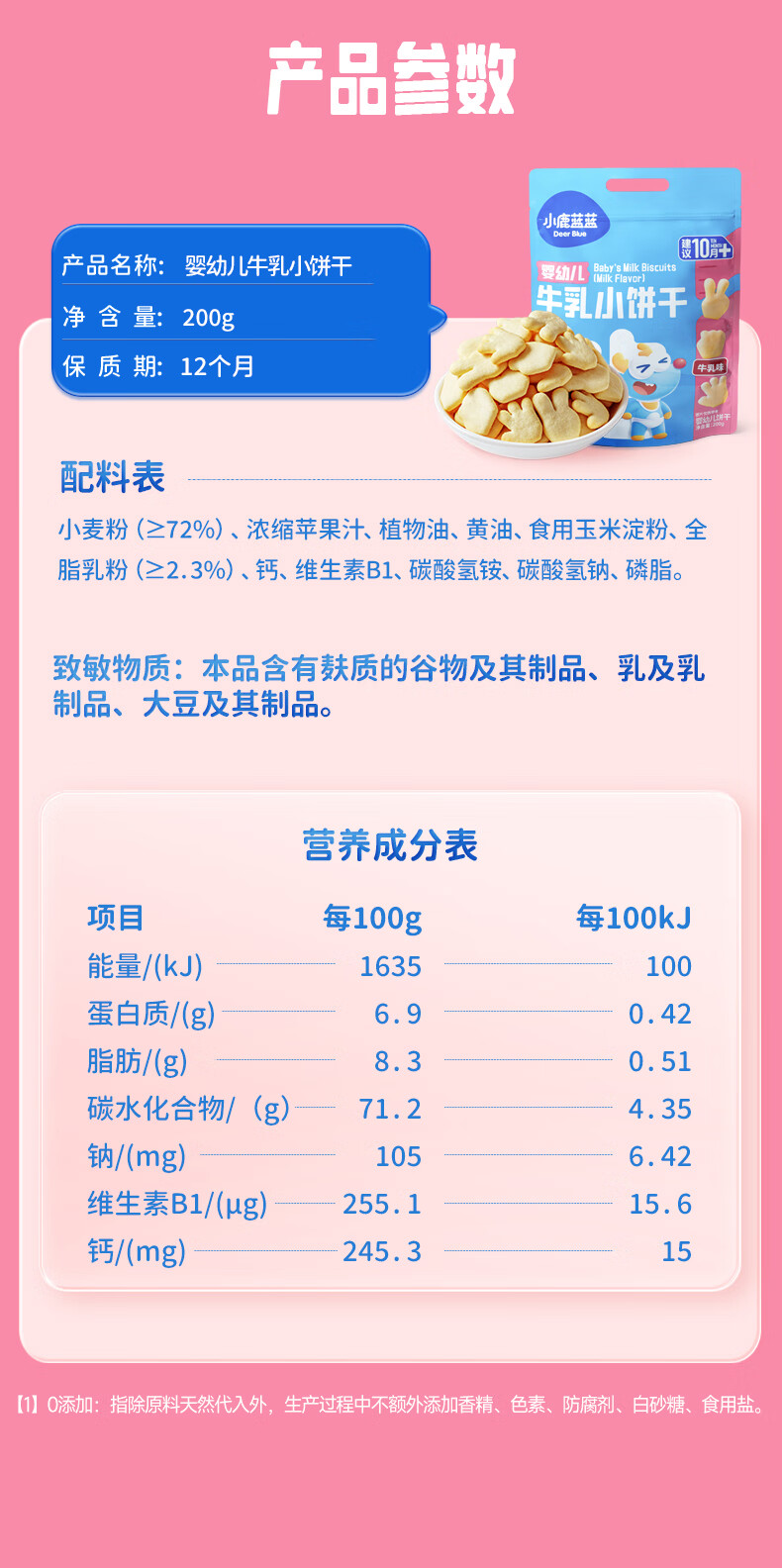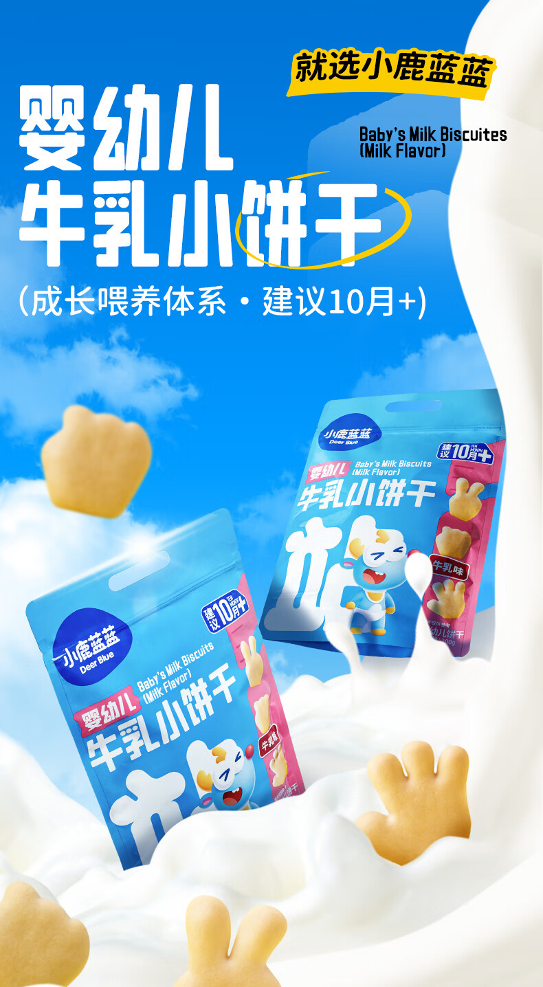 小鹿蓝蓝婴幼儿牛乳小饼干/牛乳味/200g宝宝饼干婴儿饼干零食 益智造型