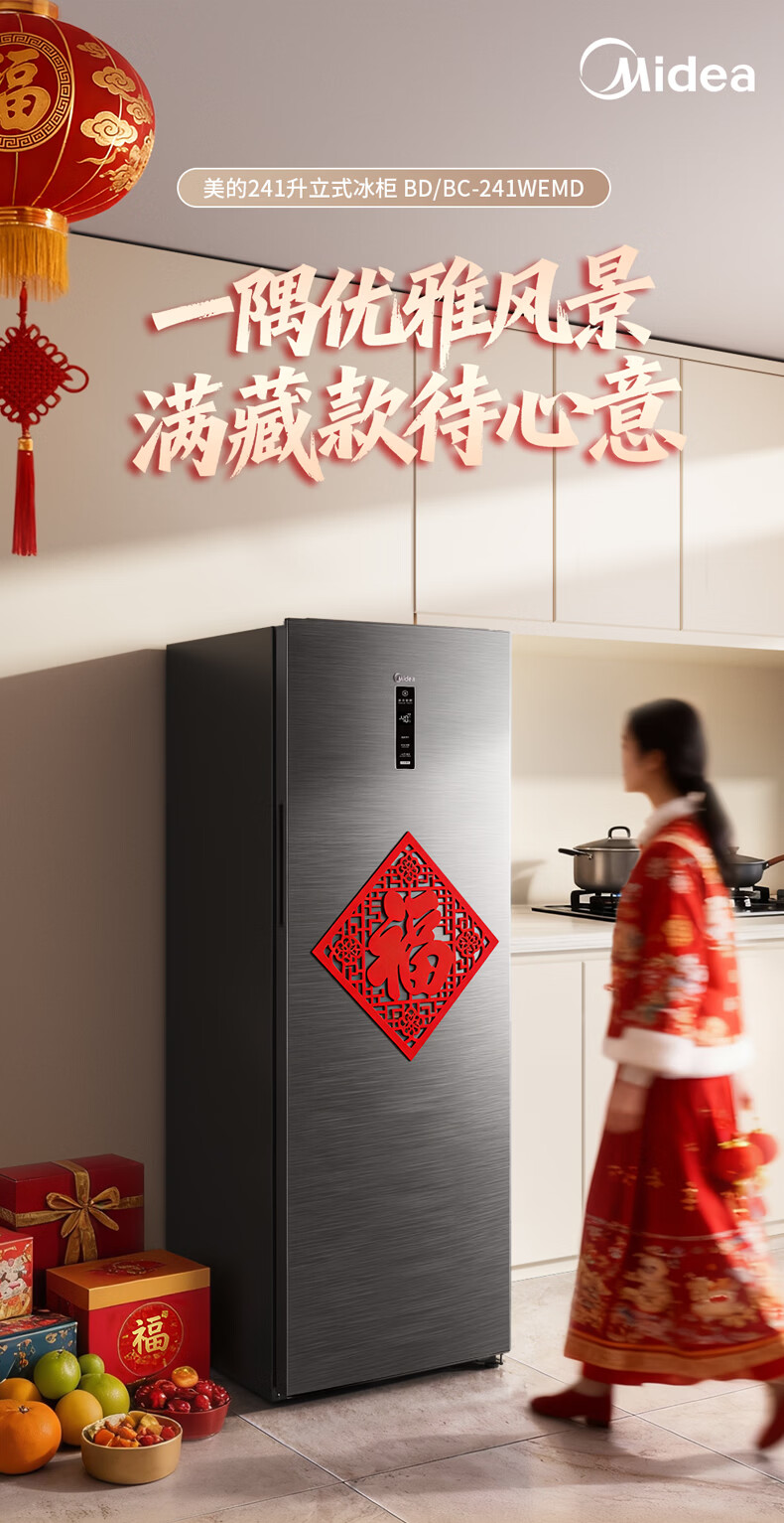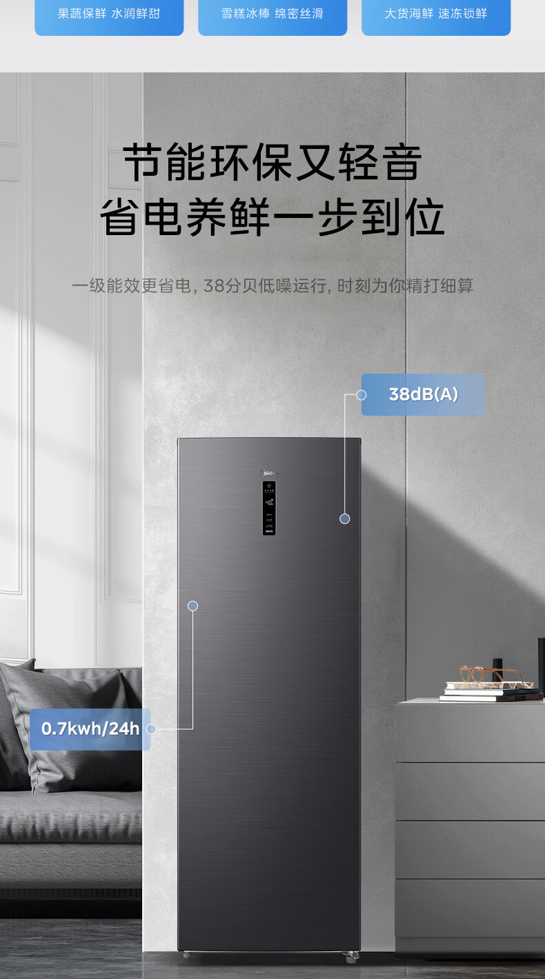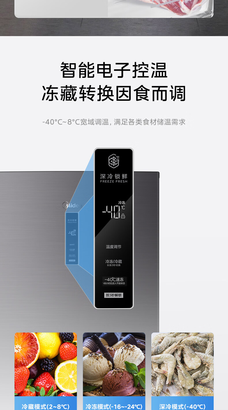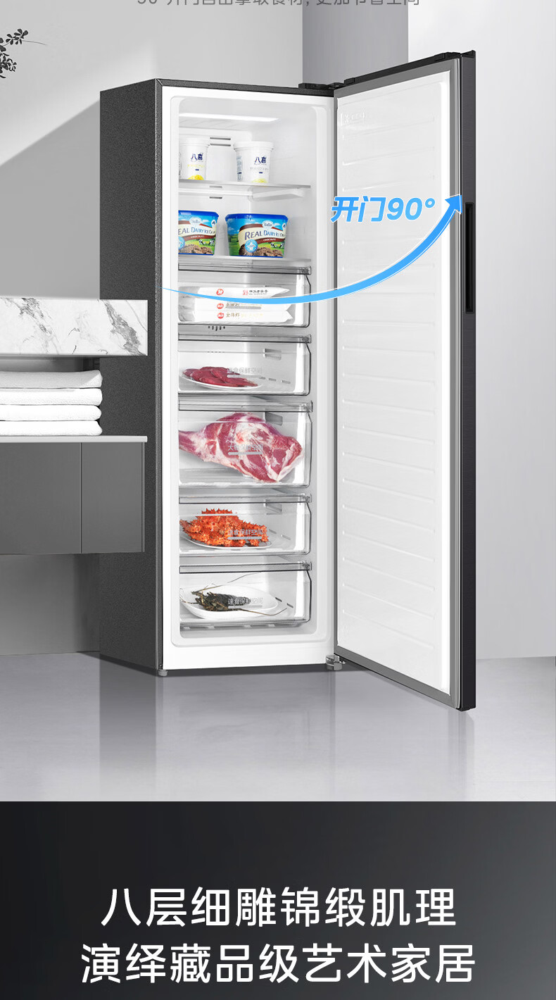 美的(Midea)241L立式家用冰柜风冷无霜变频-40度超低温全冷藏冷冻柜冷柜一级能效冰箱BD/BC-241WEMD国家补贴