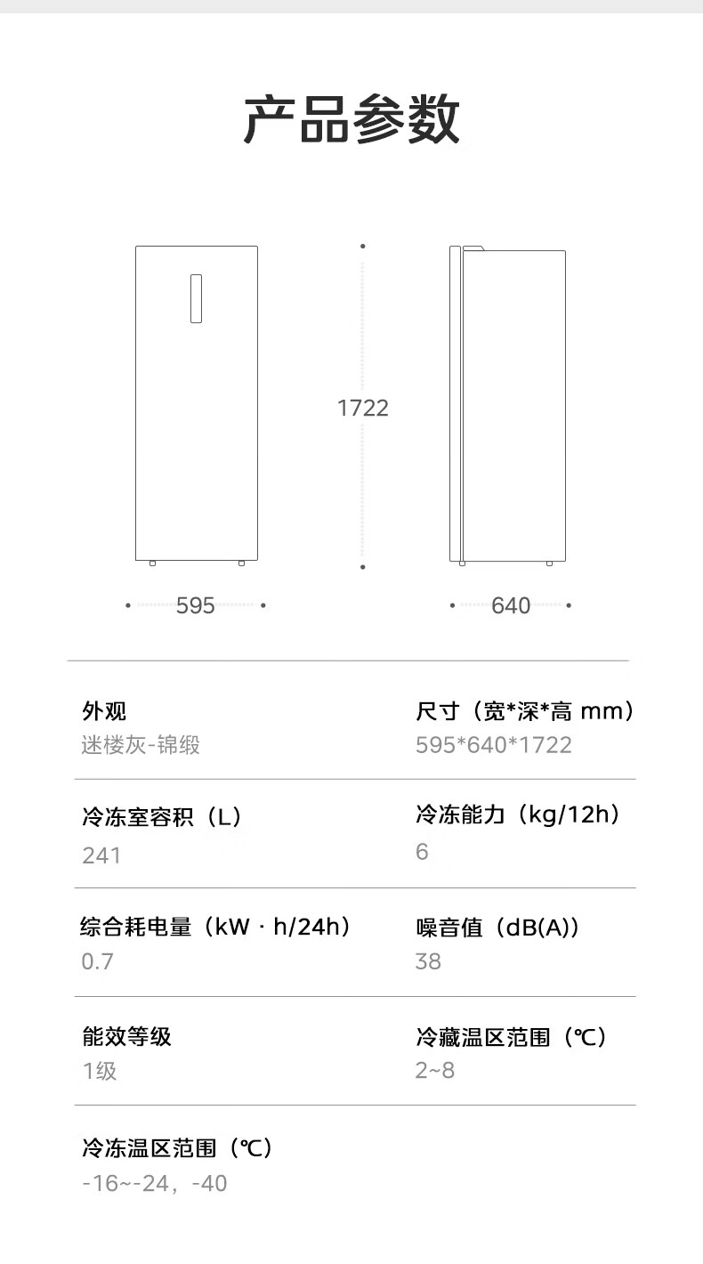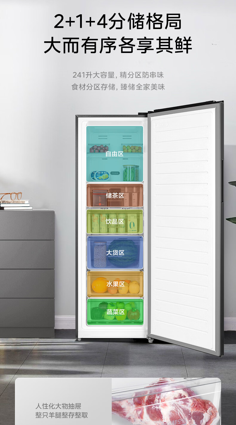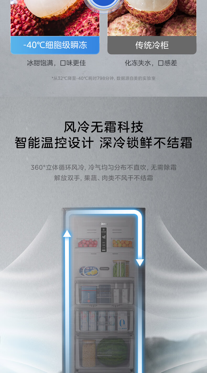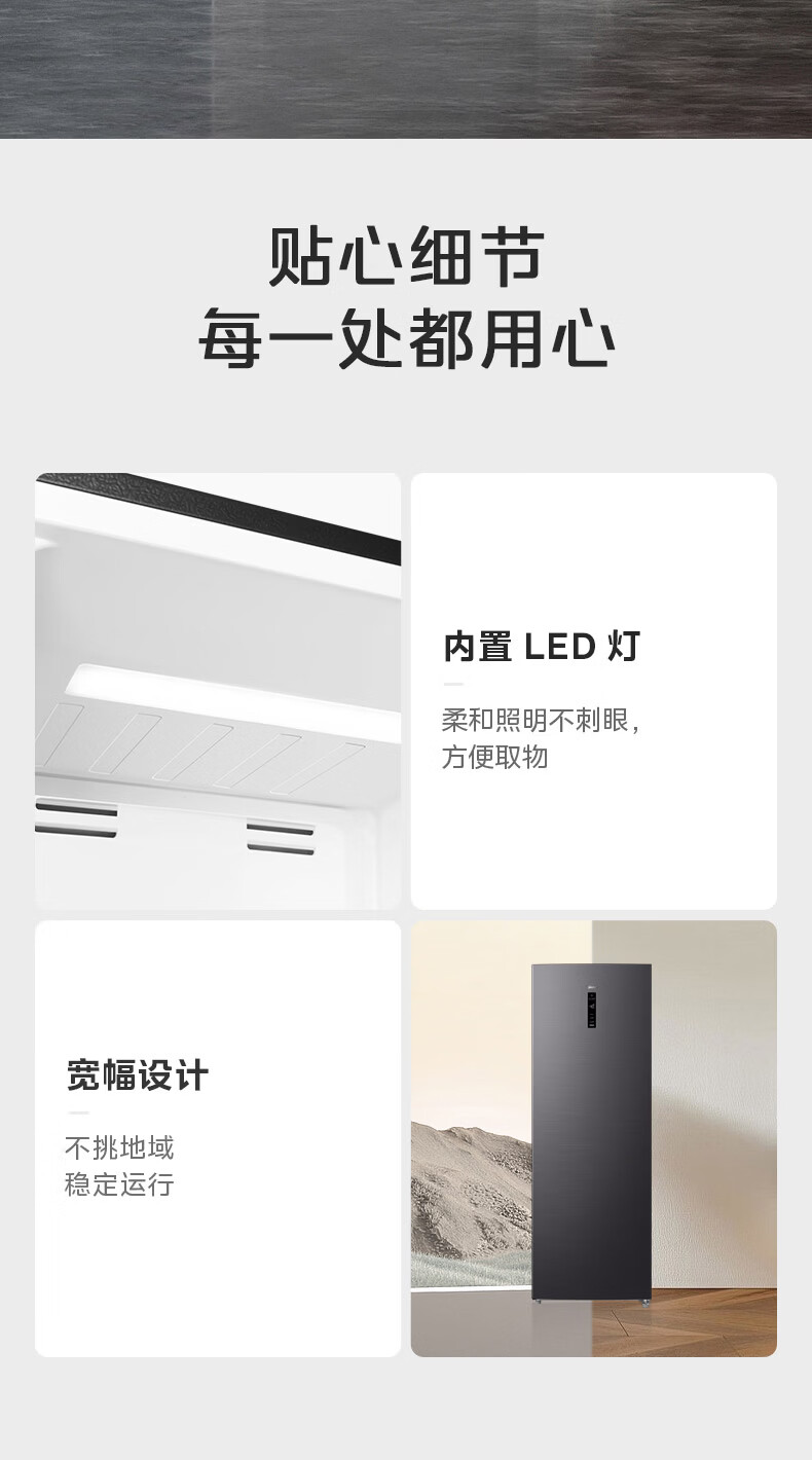 美的(Midea)241L立式家用冰柜风冷无霜变频-40度超低温全冷藏冷冻柜冷柜一级能效冰箱BD/BC-241WEMD国家补贴