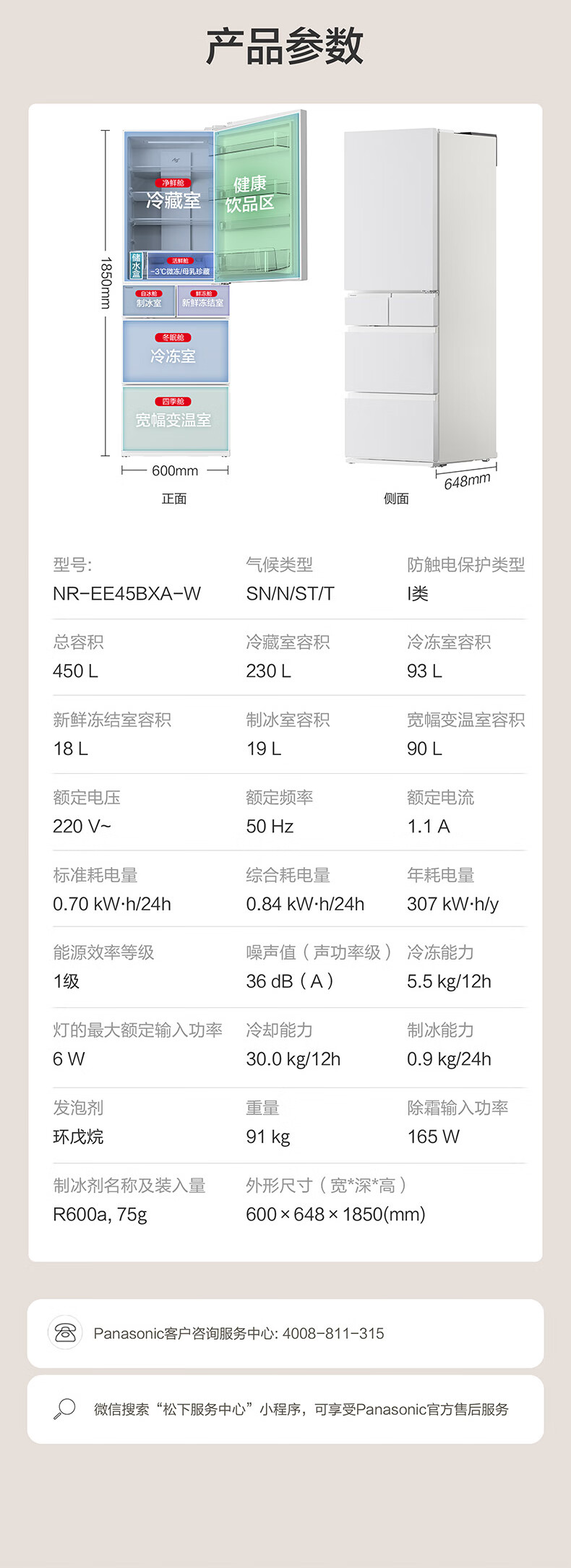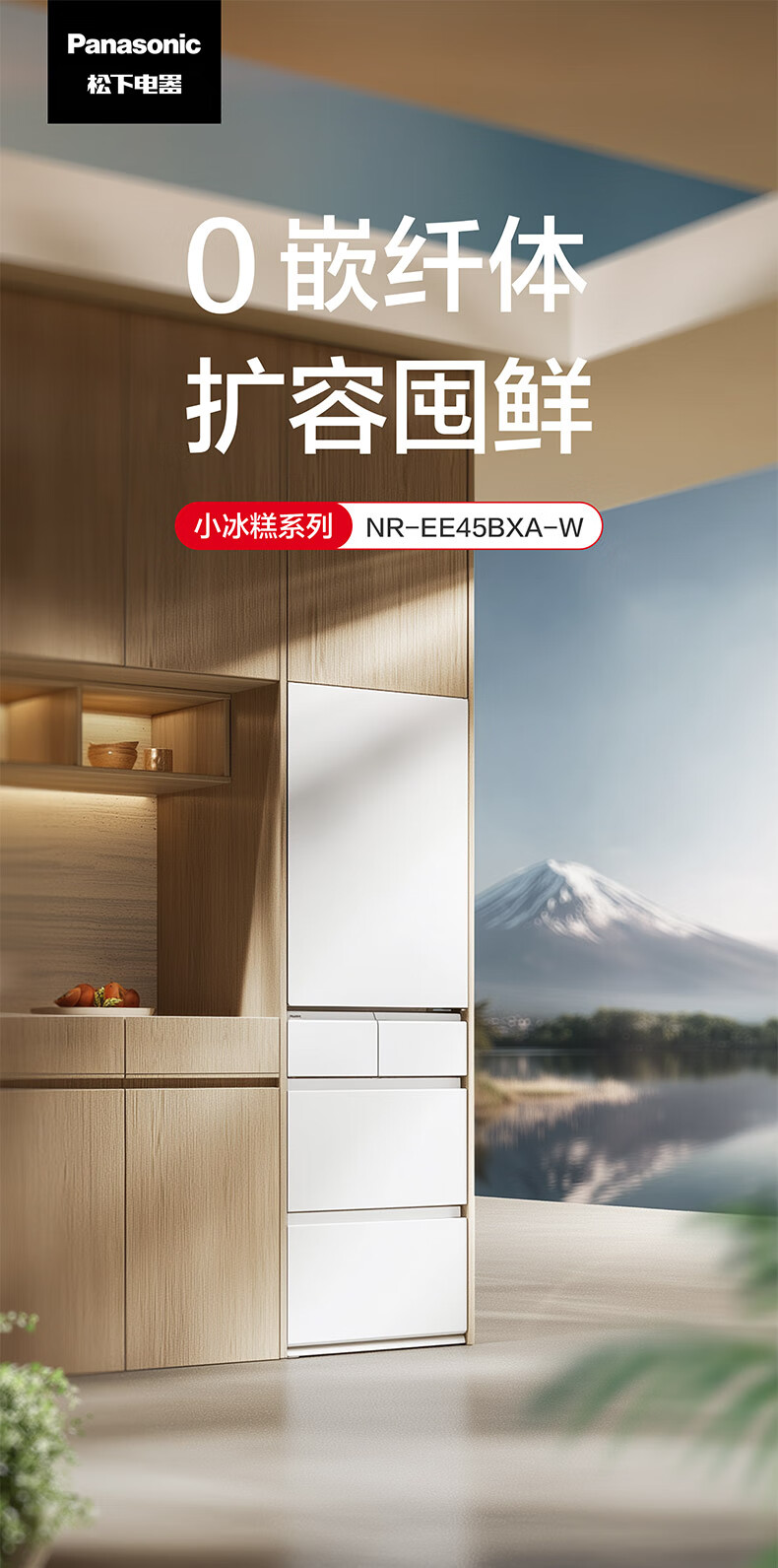 松下(Panasonic)小冰糕2.0 450L法式多门冰箱小户型家用嵌入式无霜自动制冰一级能效NR-EE45BXA-W【国家补贴】