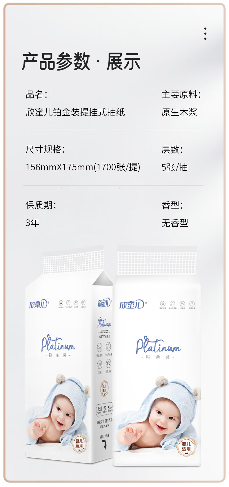 欣蜜儿抽纸悬挂式母婴适用5层1700张*4提 绵柔感餐巾纸面巾纸抽纸巾