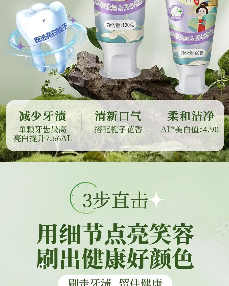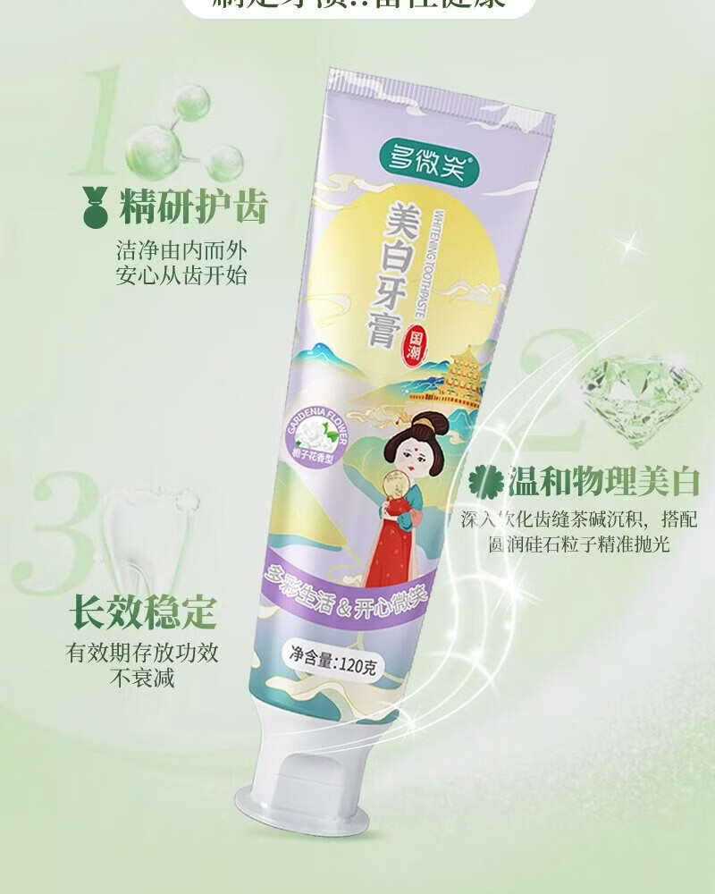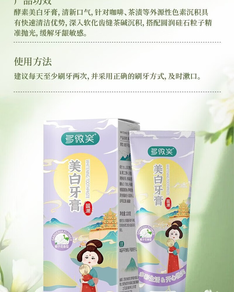 多微笑/长安国潮牙膏 美白去黄牙清洁牙垢【金榜第一】 【热卖组合】早美白晚亮白120g*2支