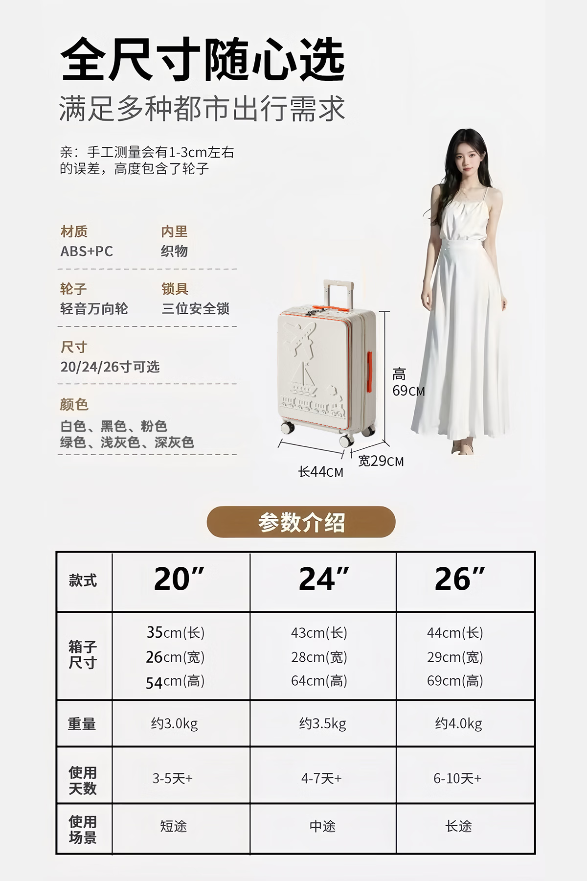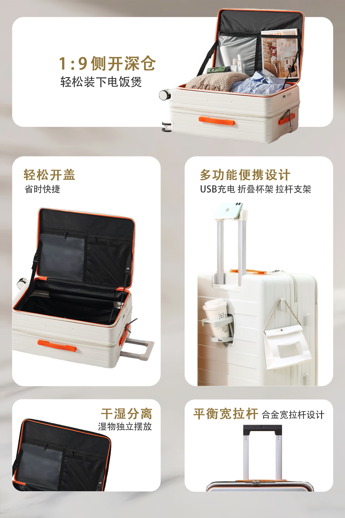 雅士达 行李箱20寸女侧开旅行箱24男密码箱结实耐用大容量拉杆箱登机箱 太空银【分体式侧开深仓+高颜值皮提手】 24英寸 【标准通用大小】当日发货+送货上门