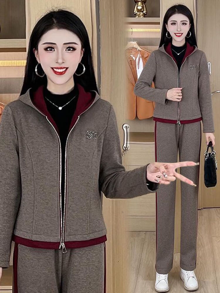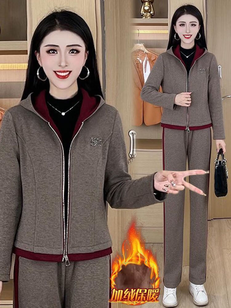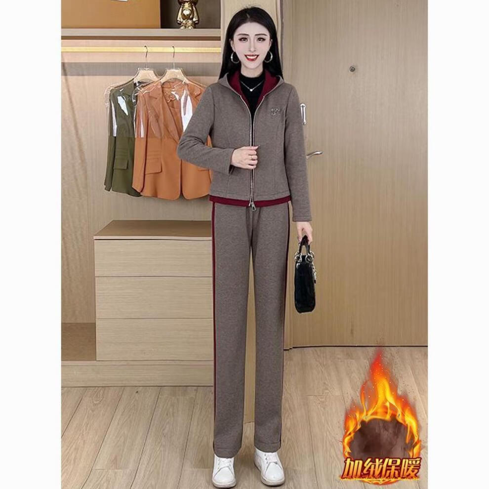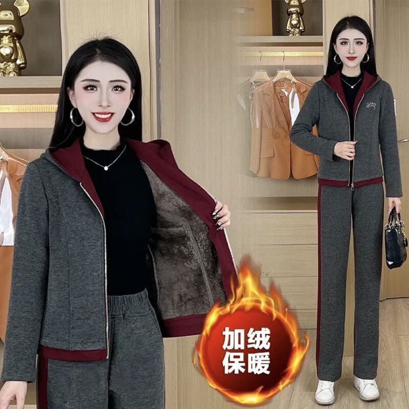 啄木鸟(TUCANO)休闲运动服套装女秋冬季新款加绒加厚外套保暖显瘦长裤时尚两件套 灰色外套+灰裤子【加绒套装】 XL 建议115-130斤