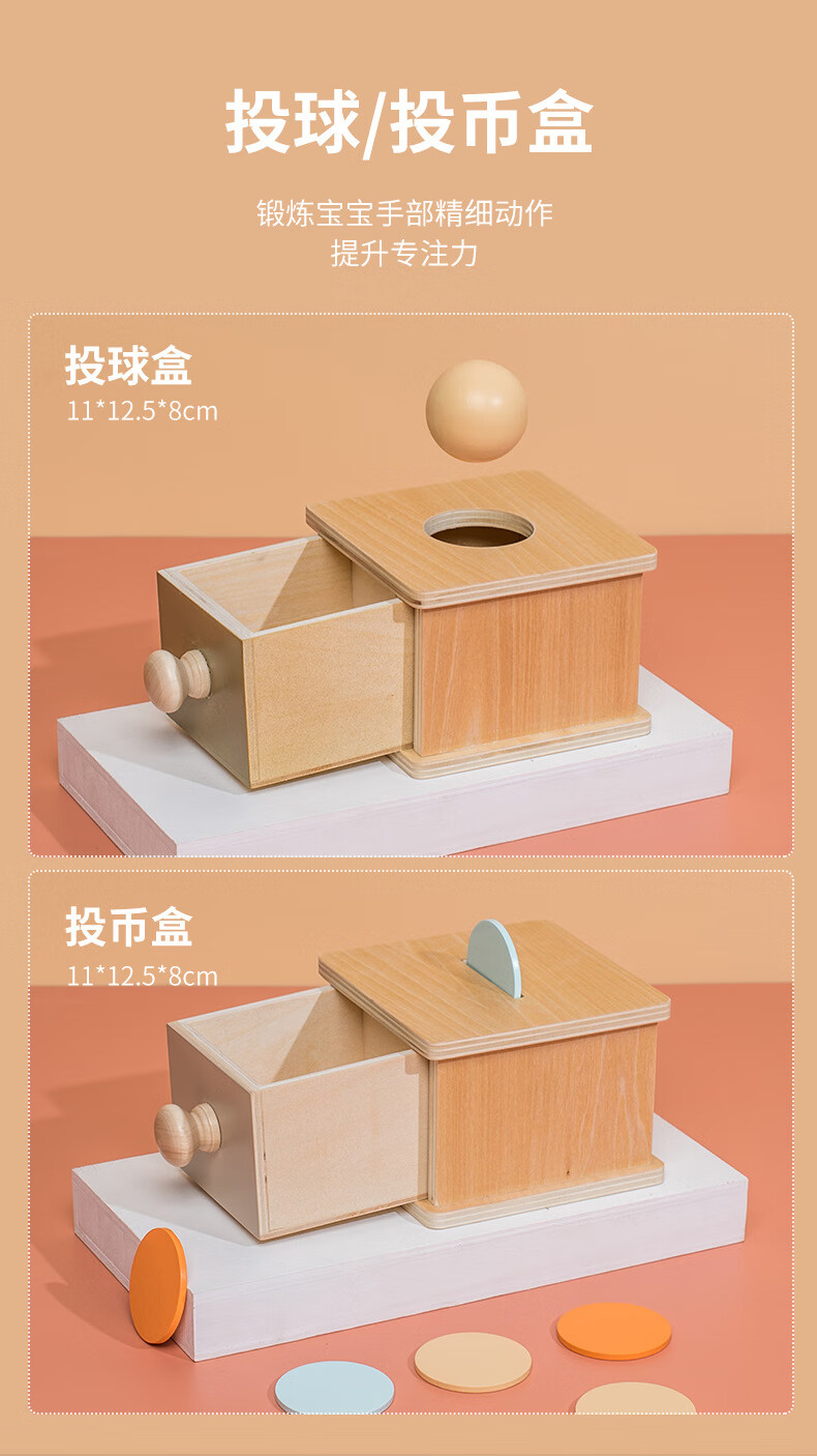 彩色立方蒙特梭利早教玩具蒙氏益智教具小月龄1岁6个月宝宝蒙台梭利纺织鼓 多功能抽屉盒