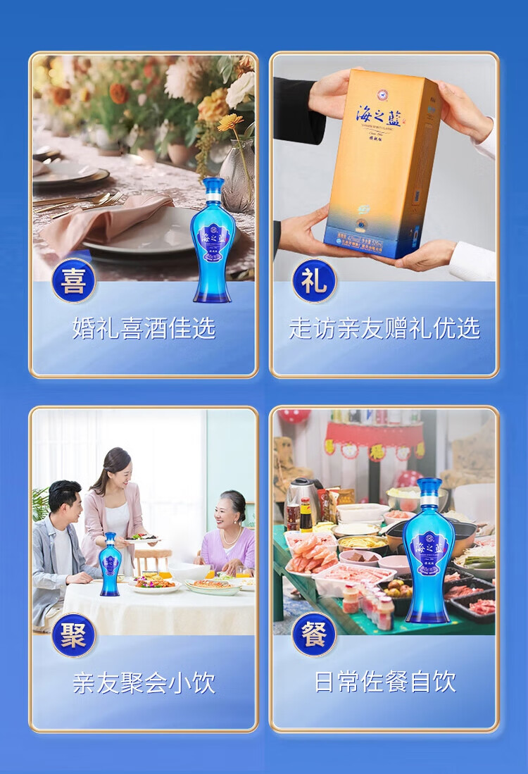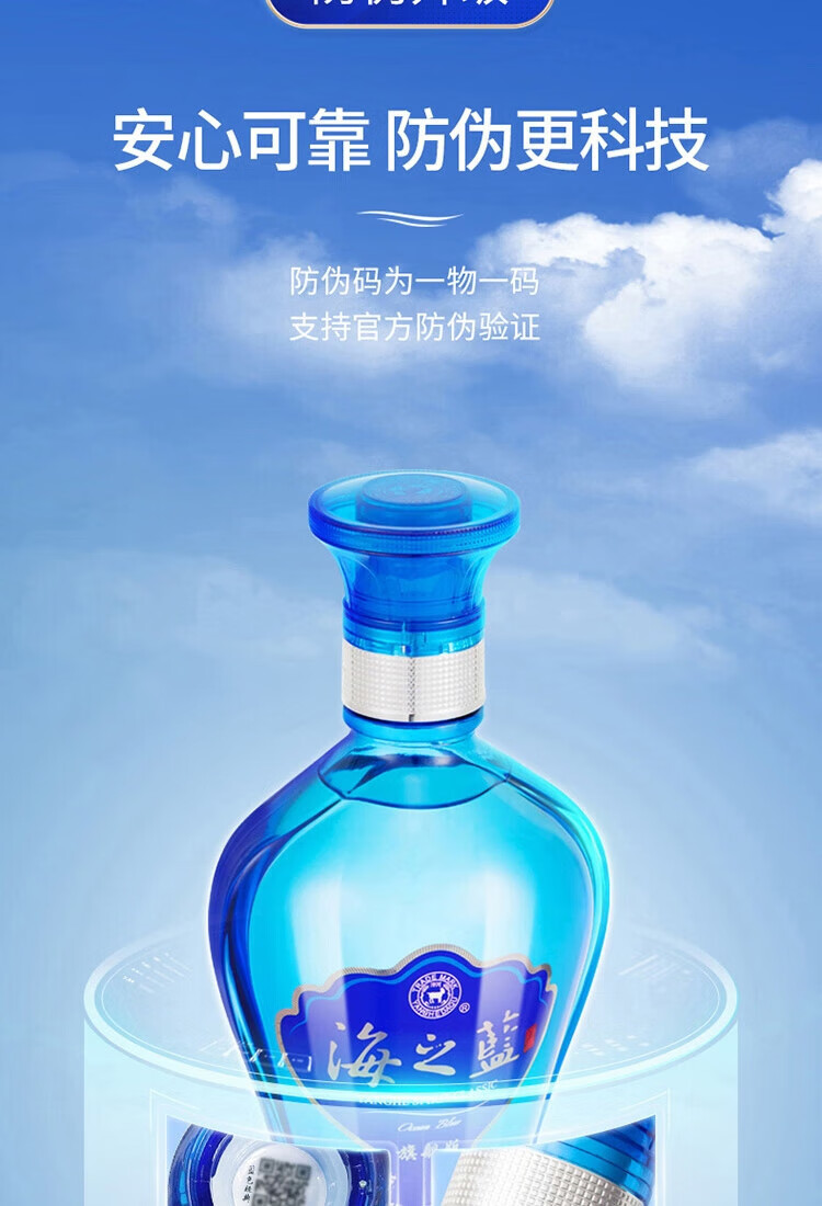 洋河 海之蓝 浓香型白酒 42度 480mL 4瓶 礼盒装