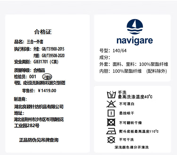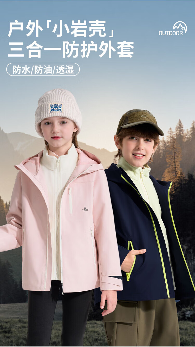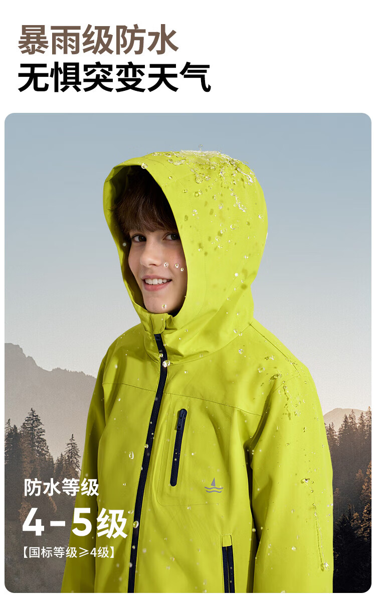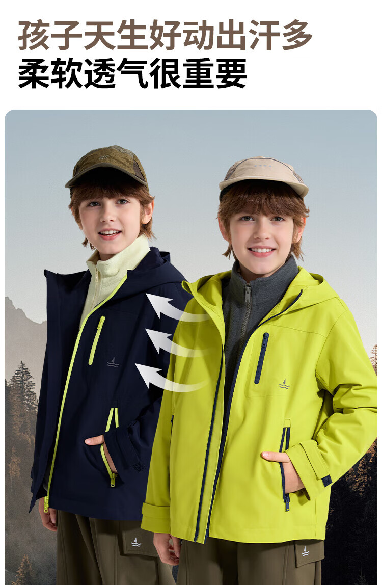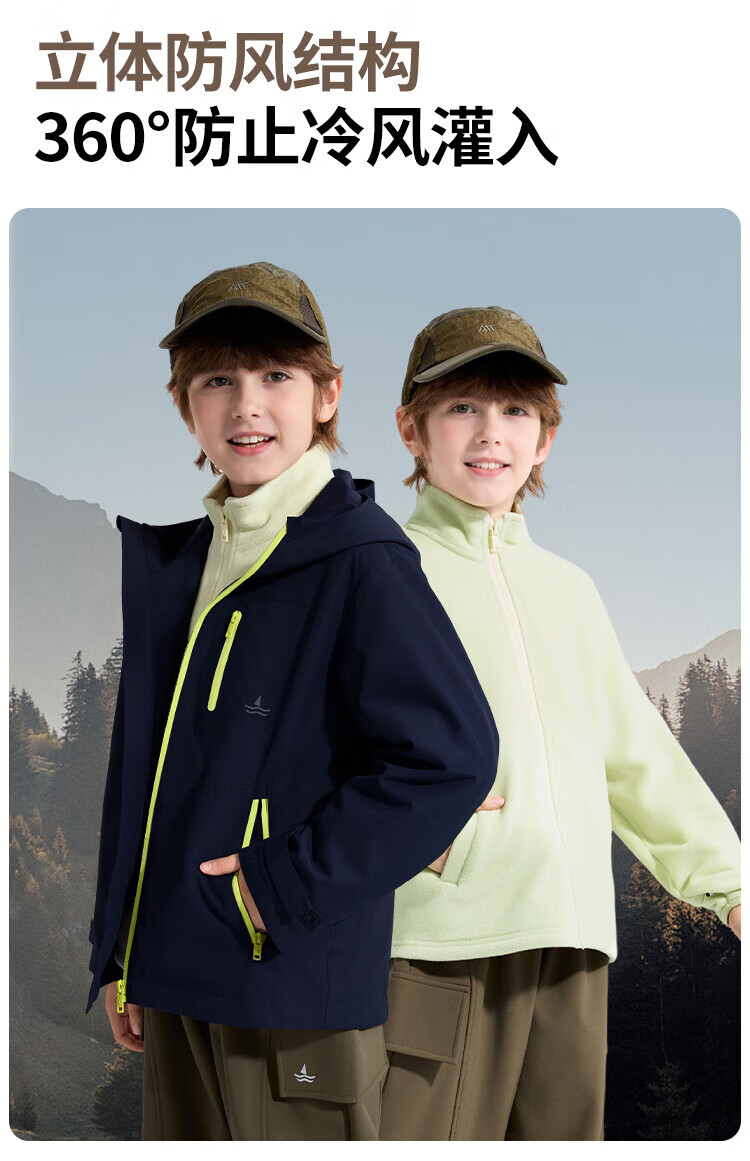 Navigare儿童外套新款男童外套女童上衣三合一外套防水防寒保暖学生衣服5 户外行走牛油果绿 150