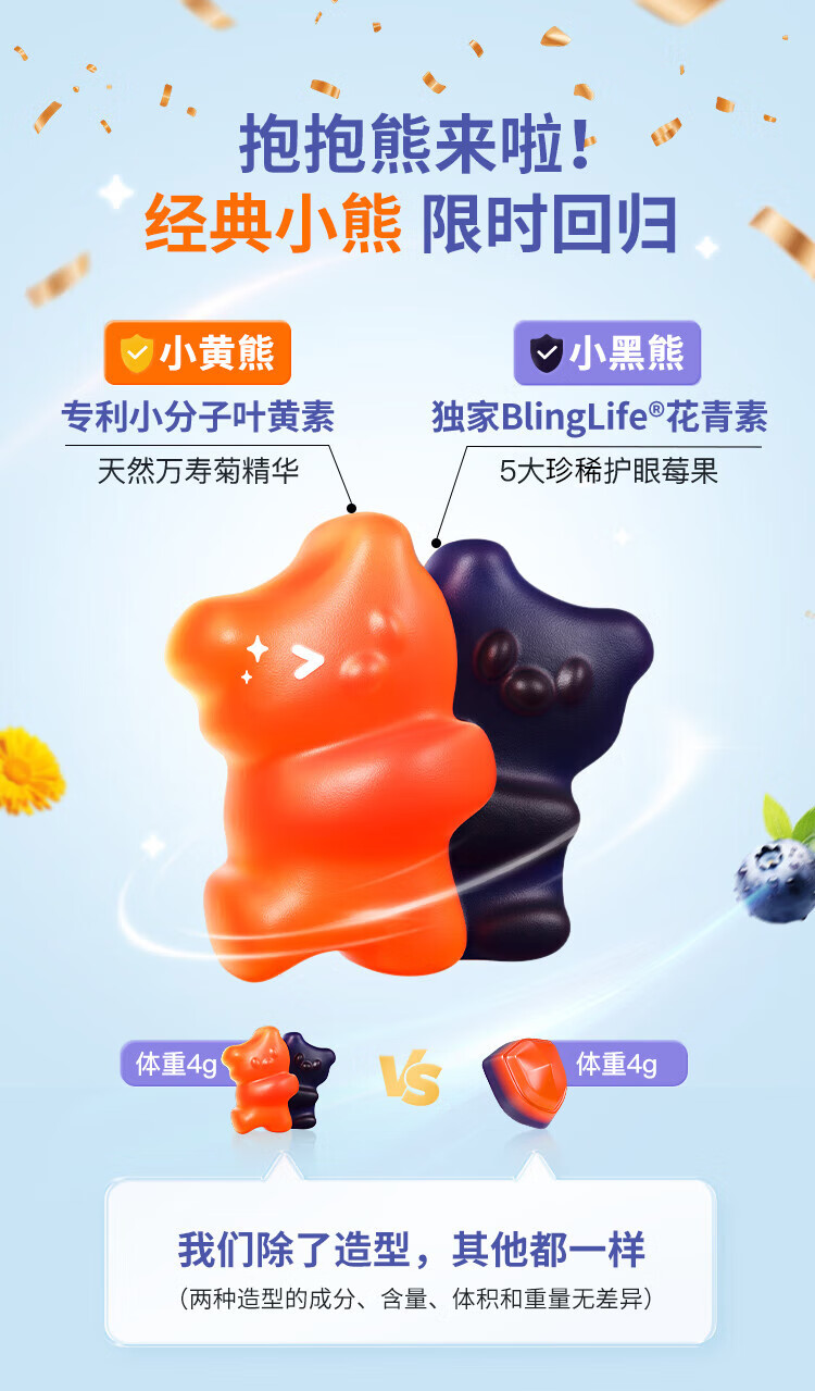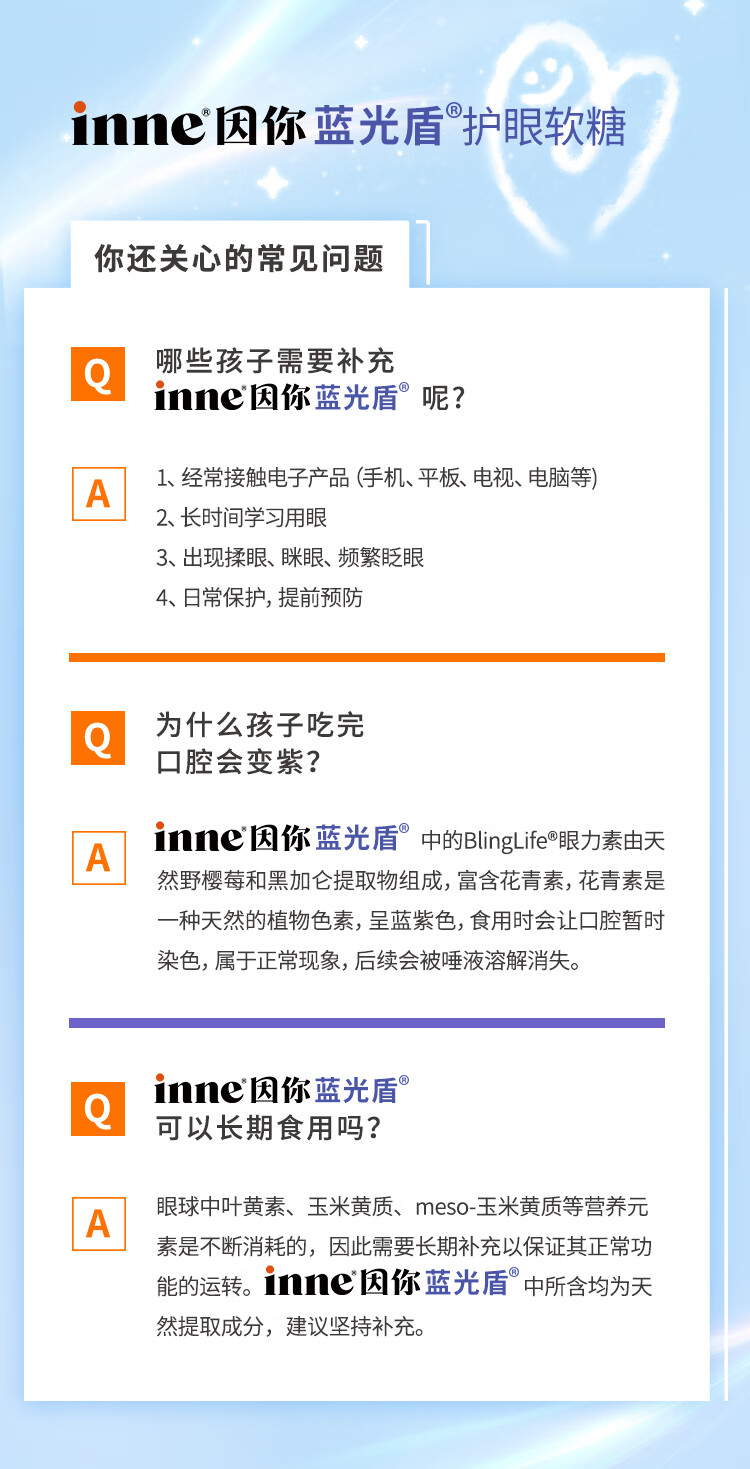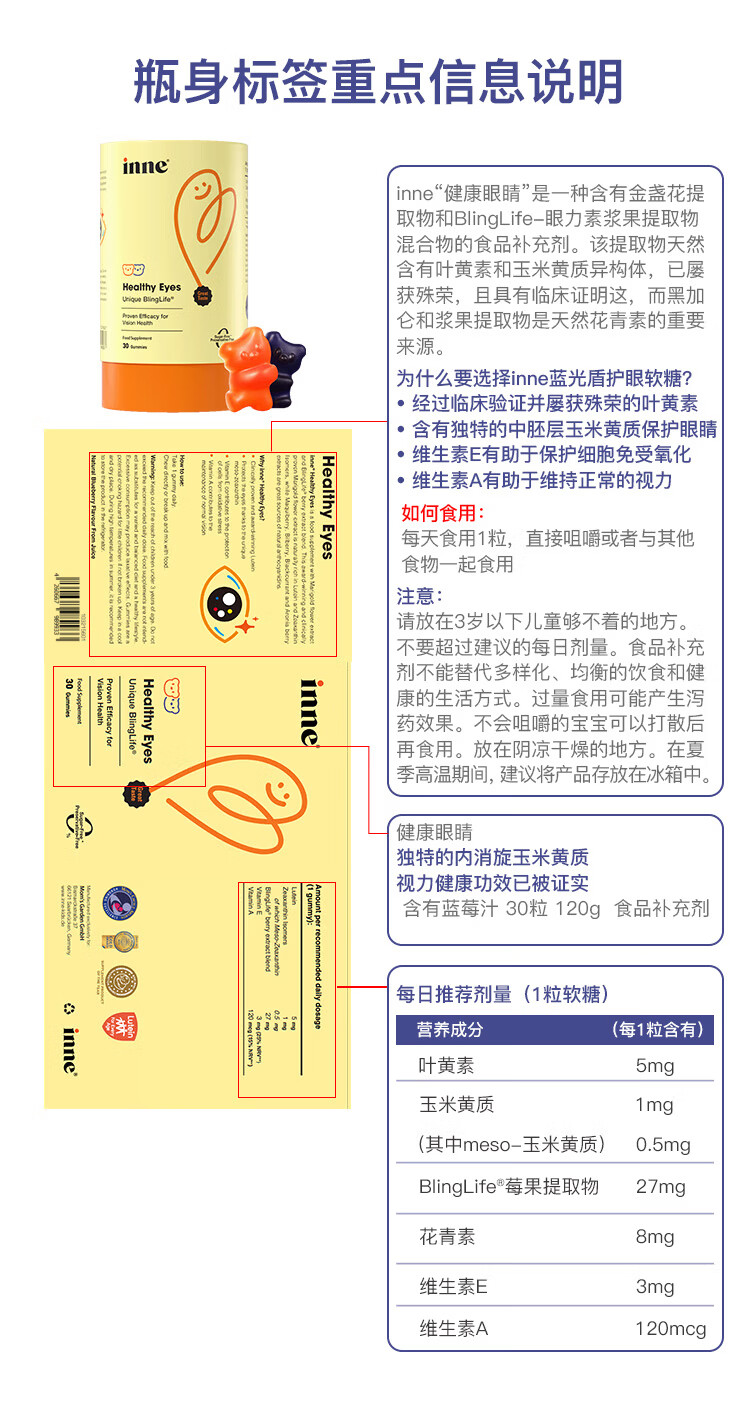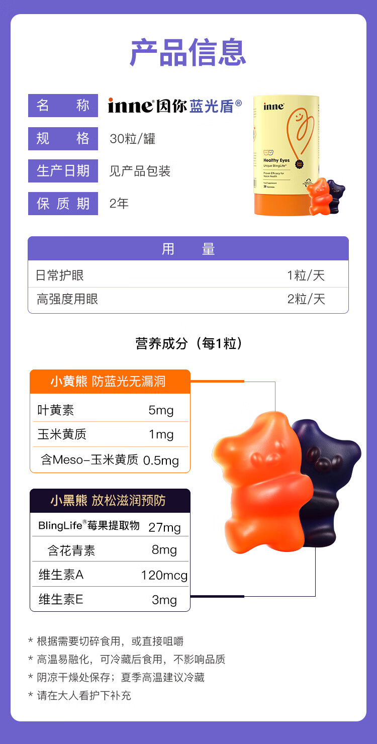 Inne因你蓝光盾叶黄素儿童护眼软糖抱抱熊30粒蓝莓花青素