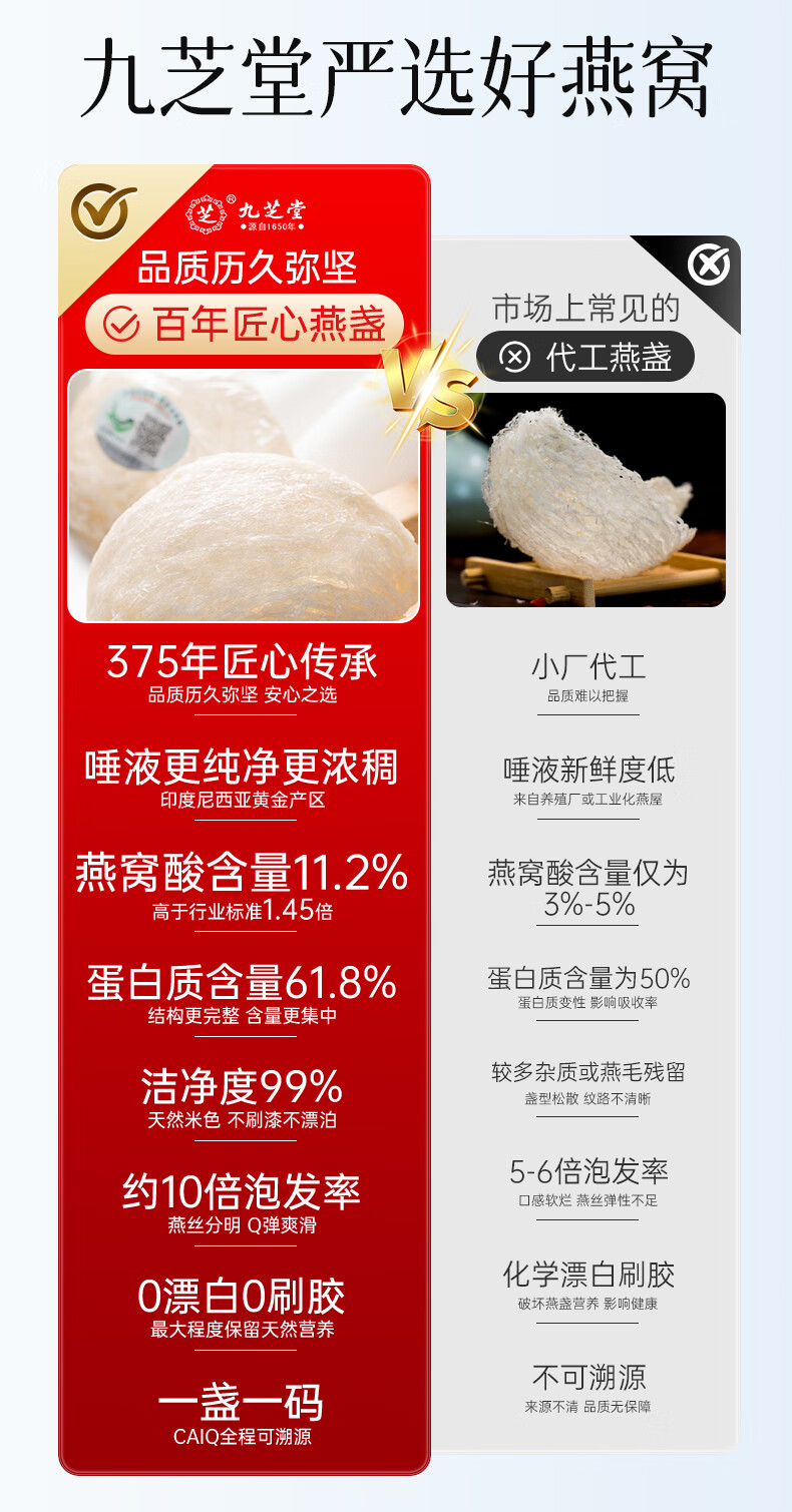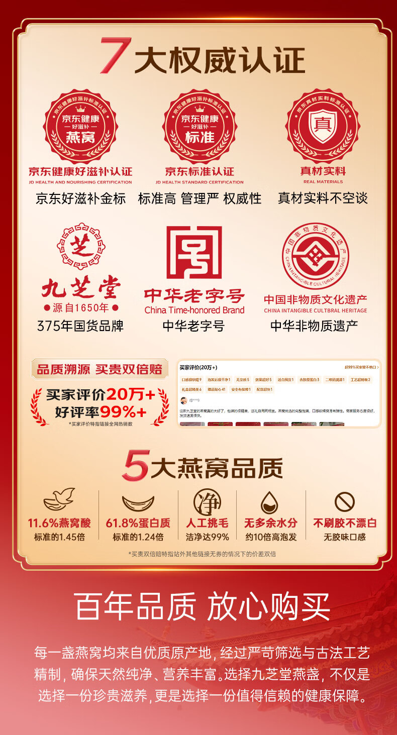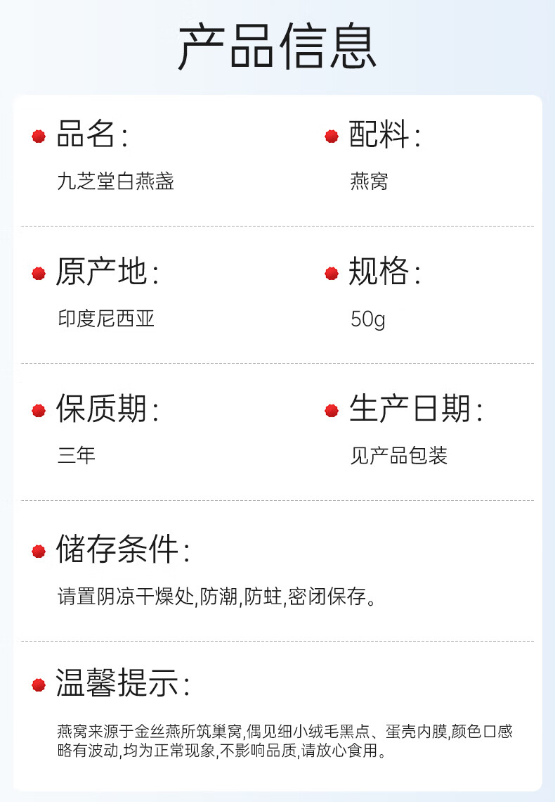 九芝堂干燕窝干盏50g 过年送长辈礼品送妈妈东南亚进口礼物春节年货礼盒