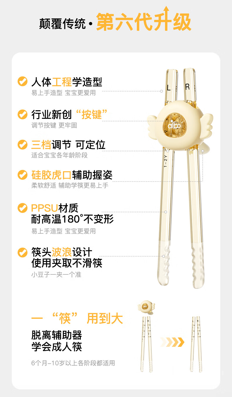 albo儿童筷子训练筷2-3-6岁虎口学习筷二段PPSU宝宝家用儿童餐具