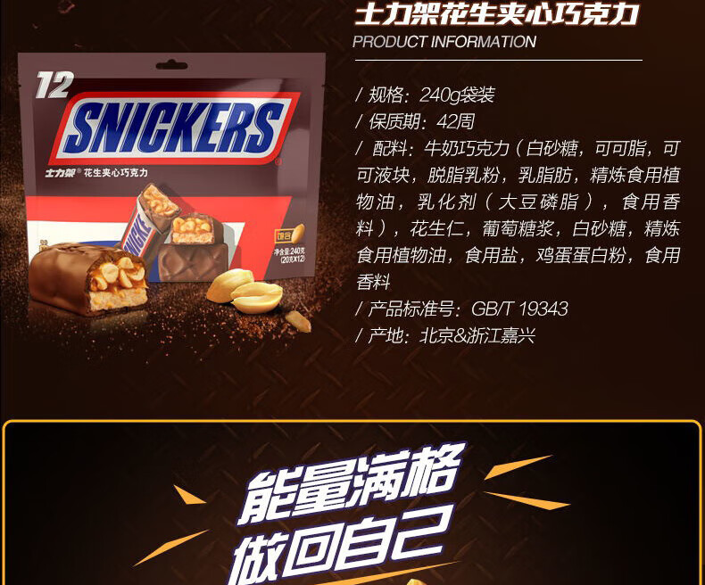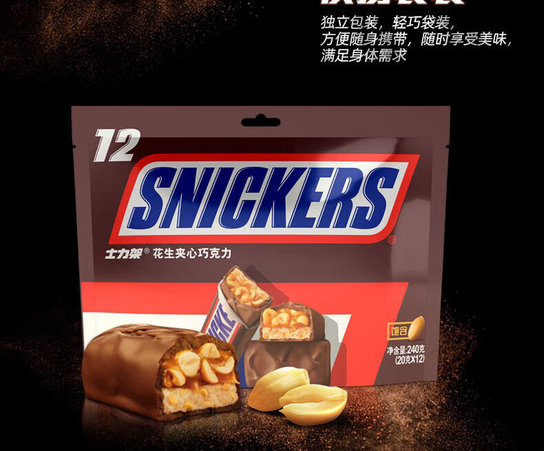 士力架花生夹心巧克力散装户外出游休闲零食饱腹礼物节日能量棒送女友 士力架新春金砖礼盒500g