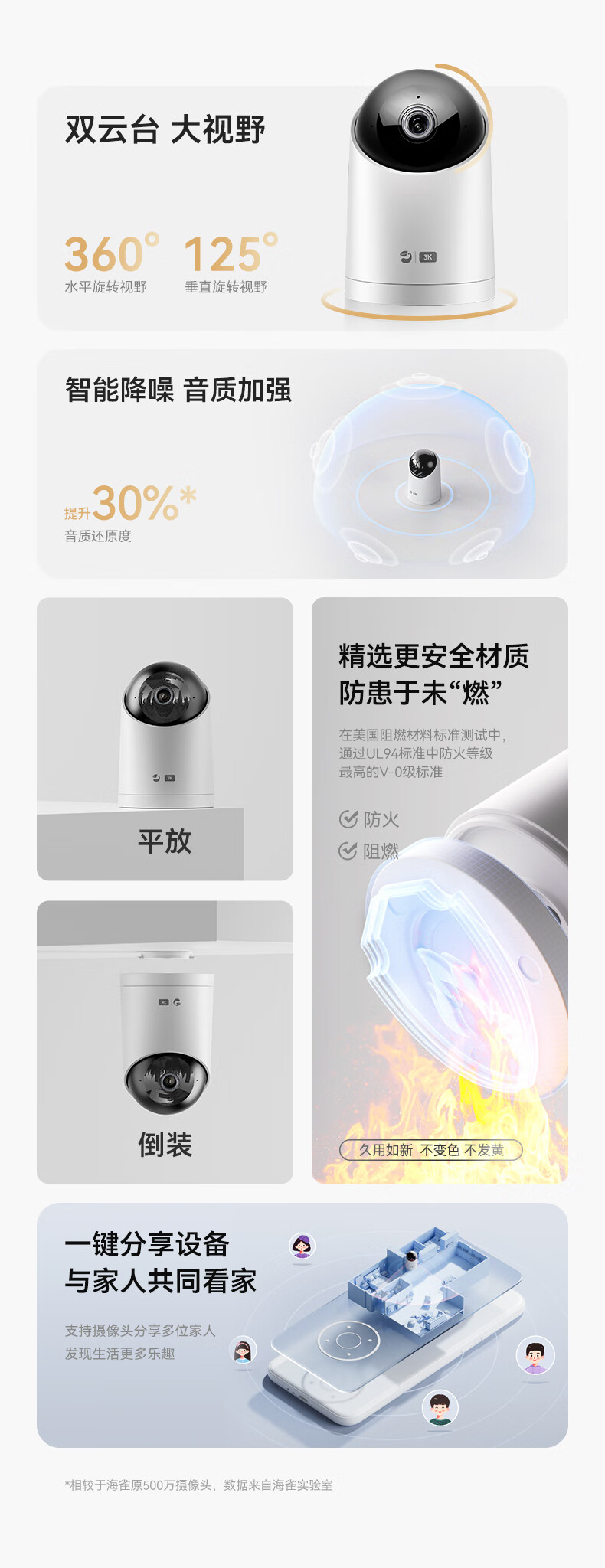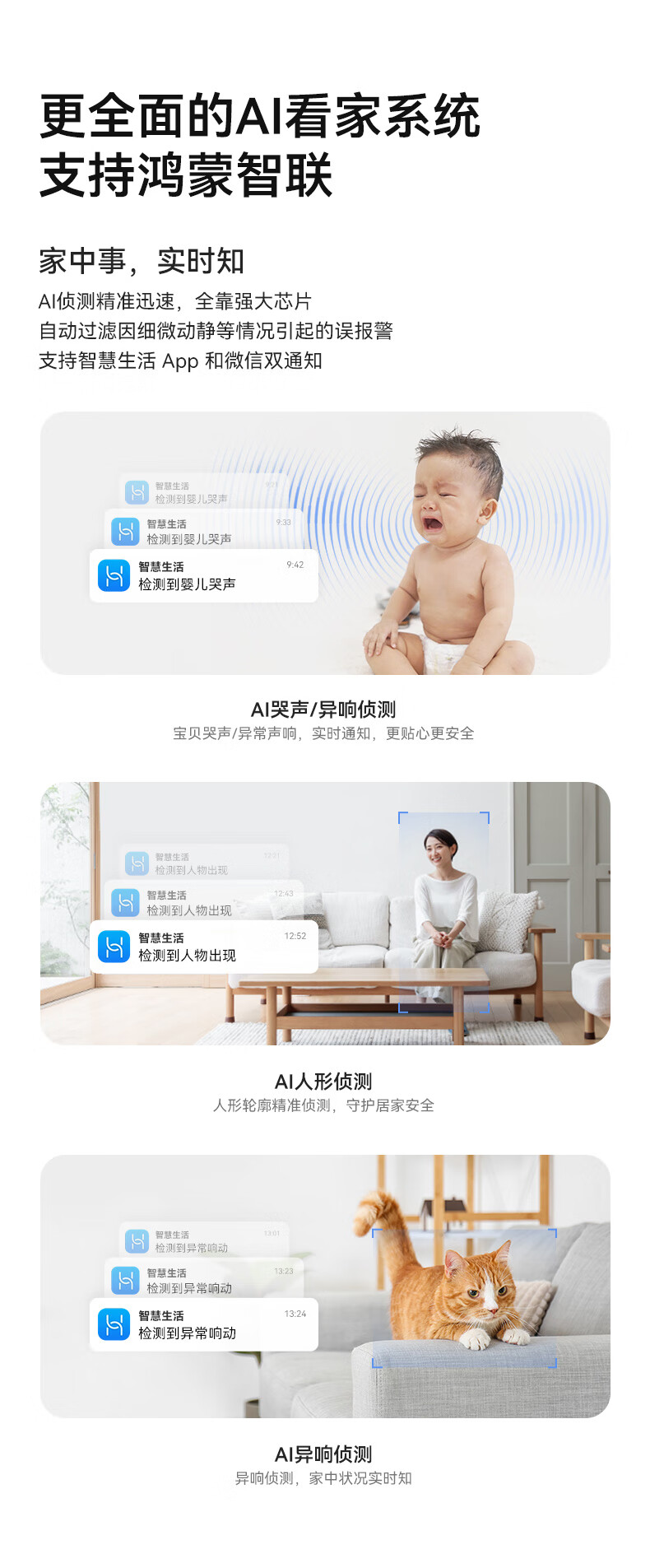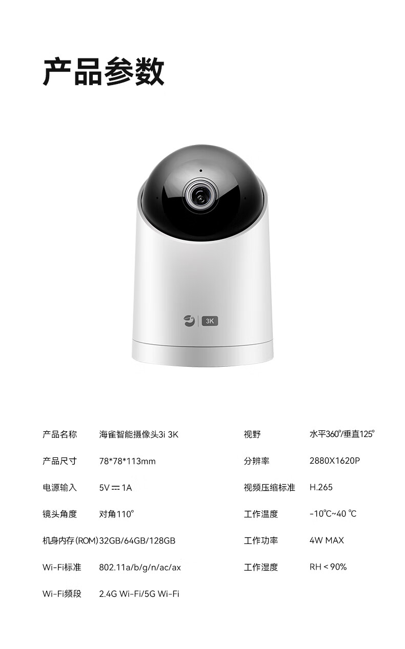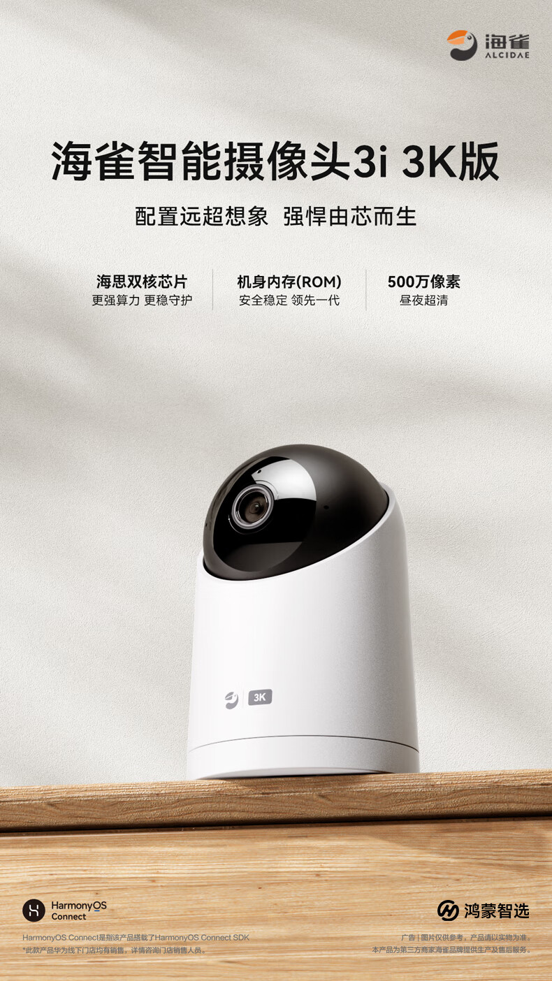 华为智选鸿蒙智选摄像头500万监控家用手机远程360度无死角带夜视全景可通话 家庭室内看护海雀3i3K