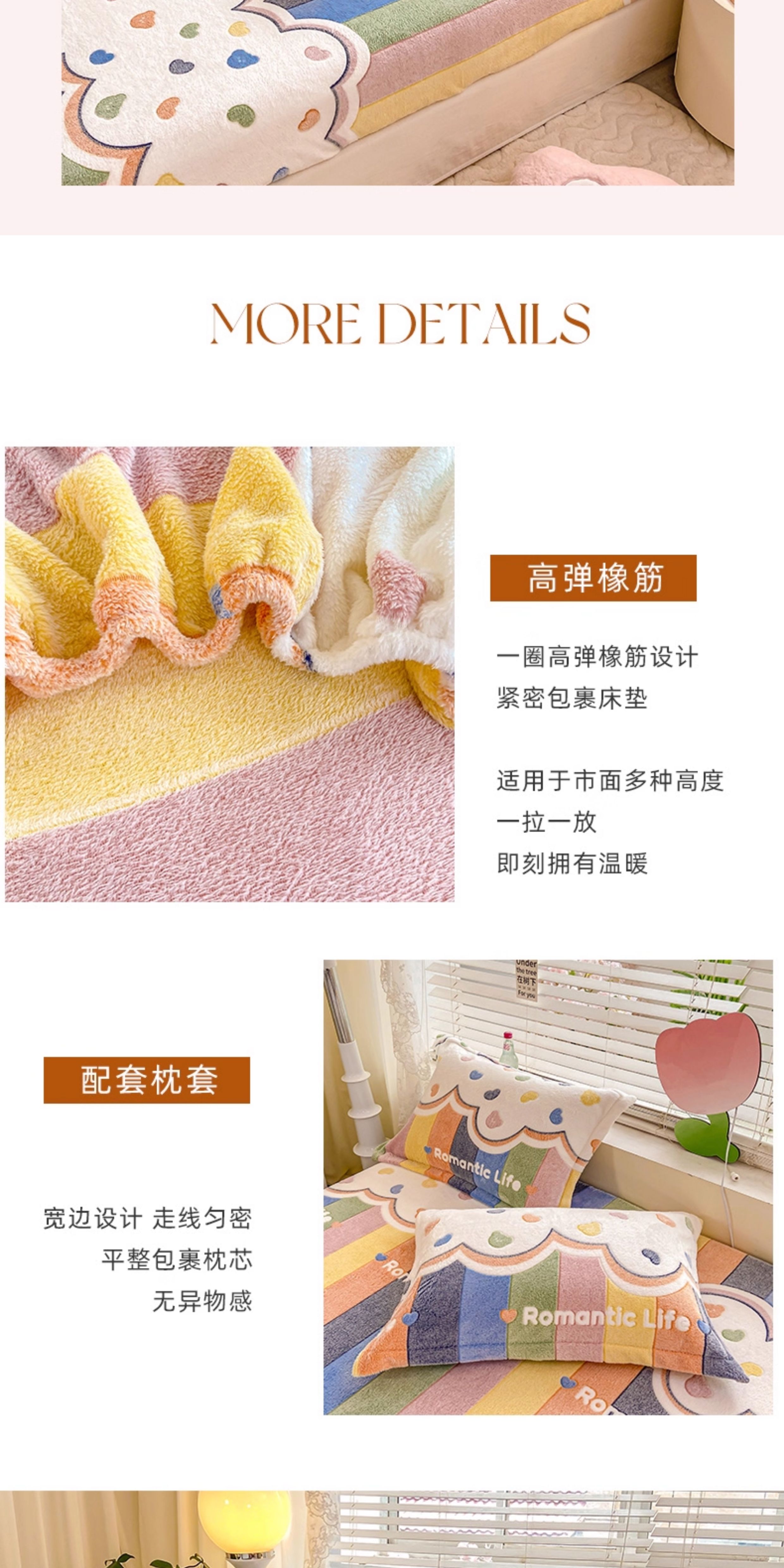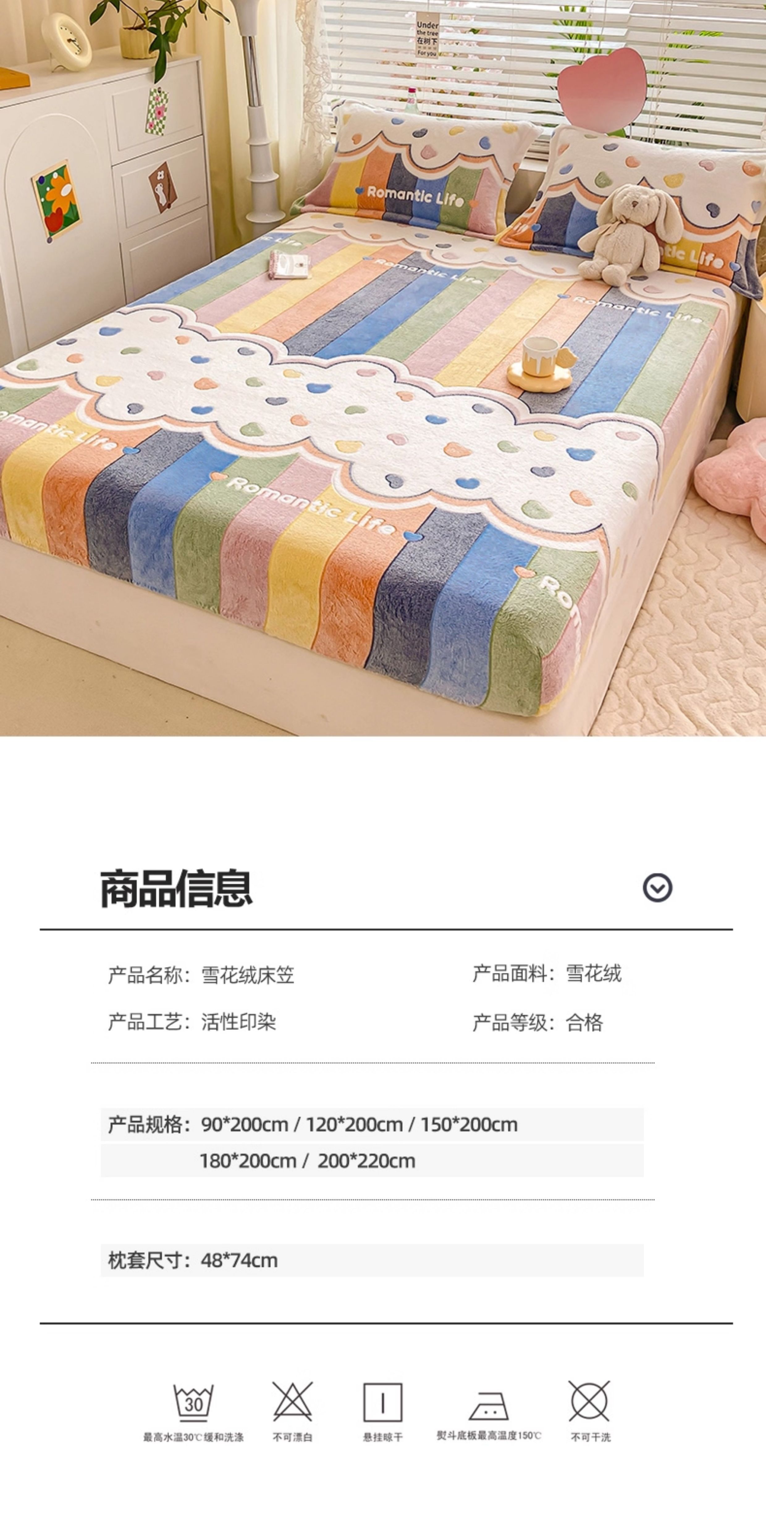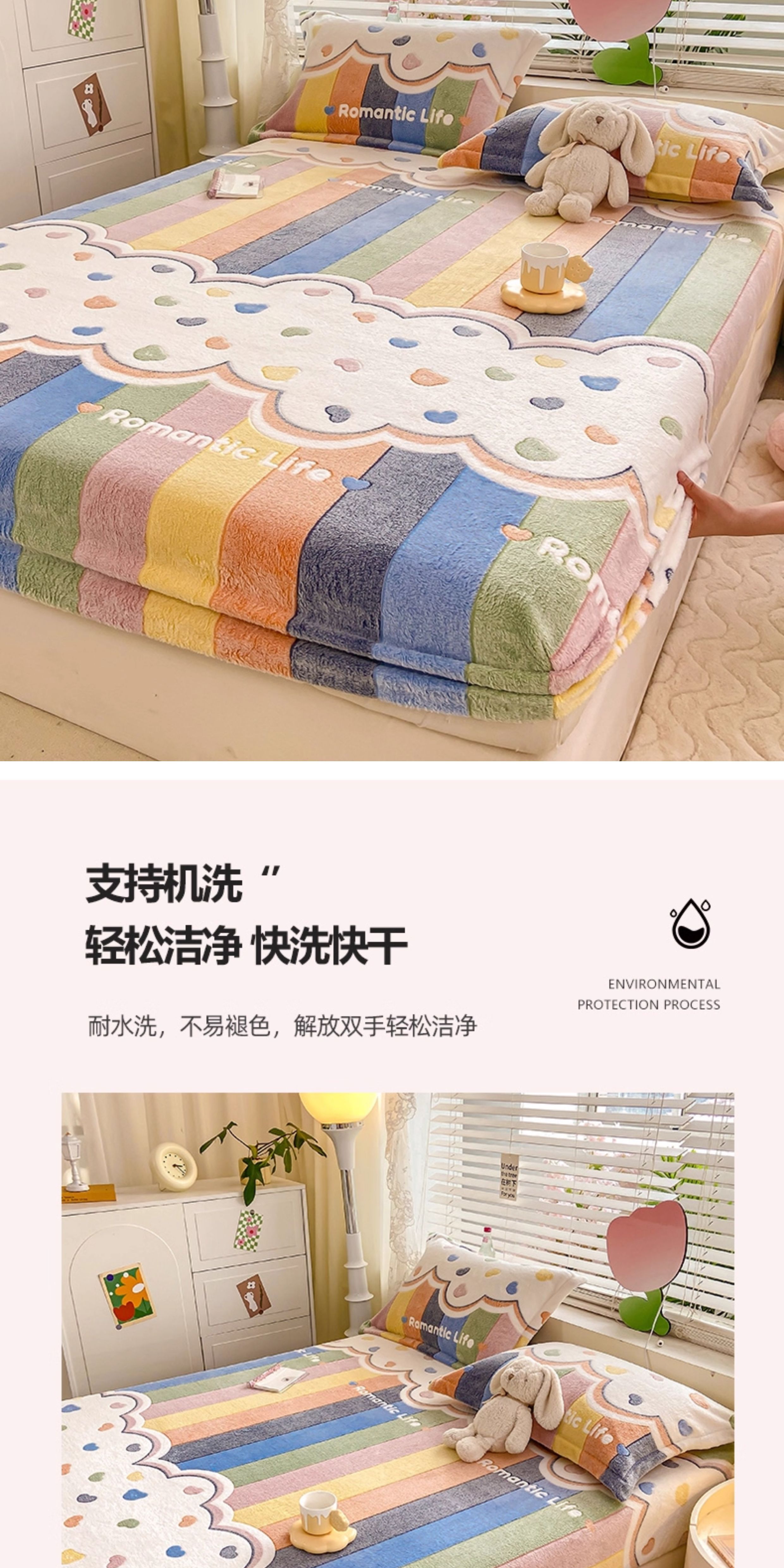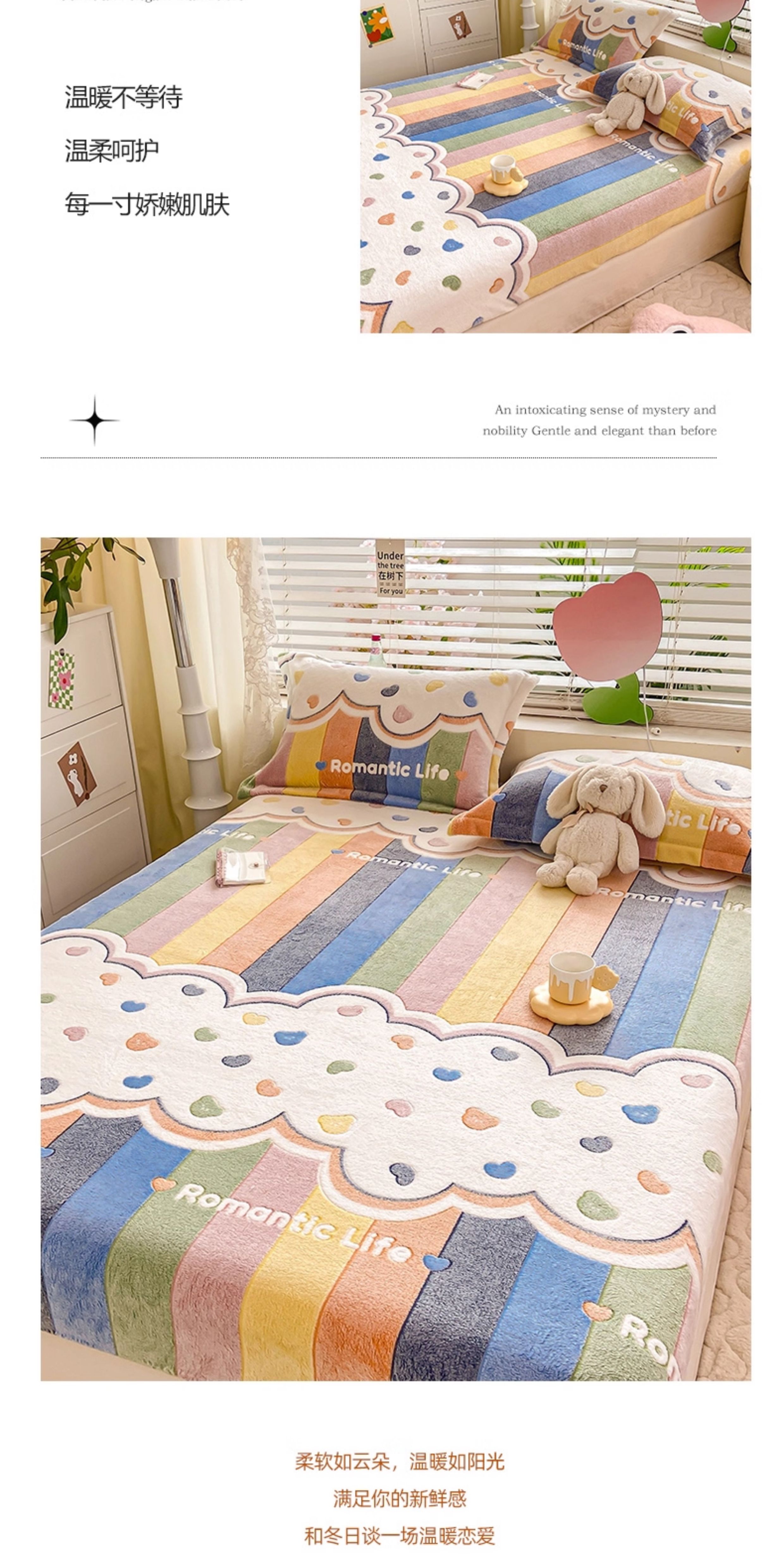 猫人(MiiOW)牛奶绒床笠1.5x2米单件 卡通珊瑚绒床垫保护罩单双人床套三件套 彩虹 90cm*200cm 单床笠