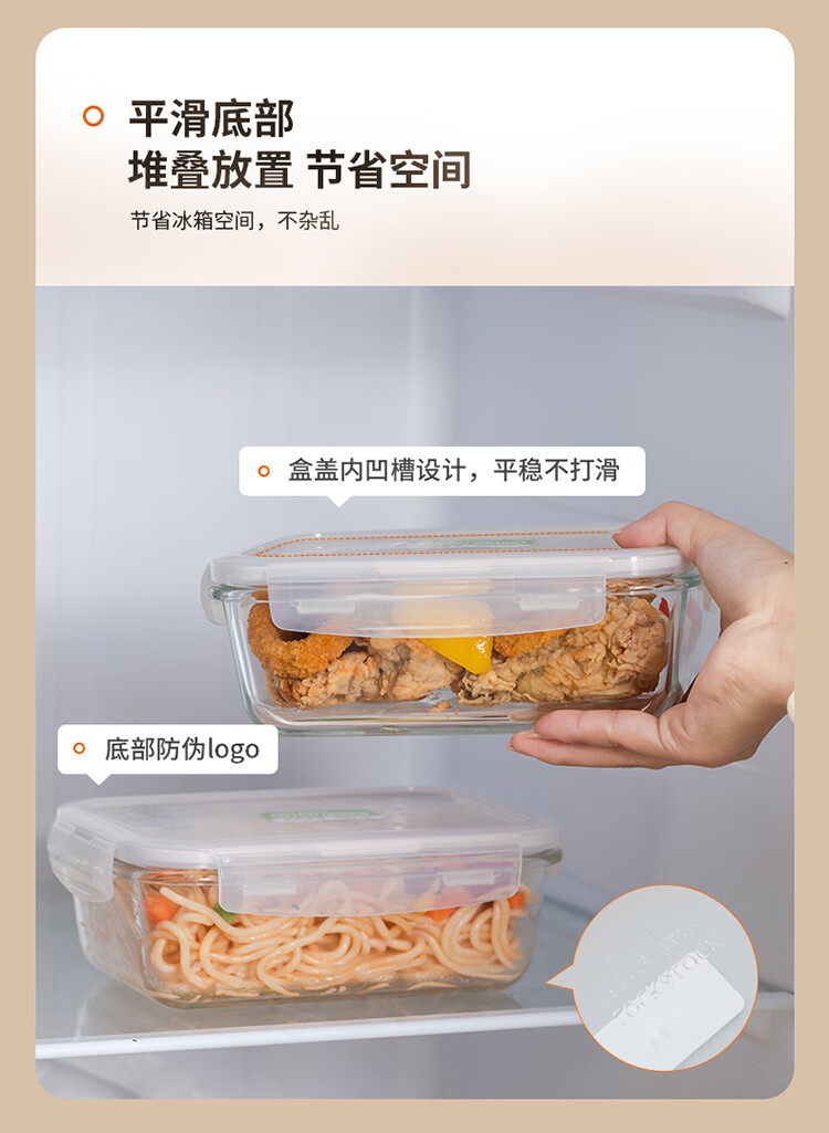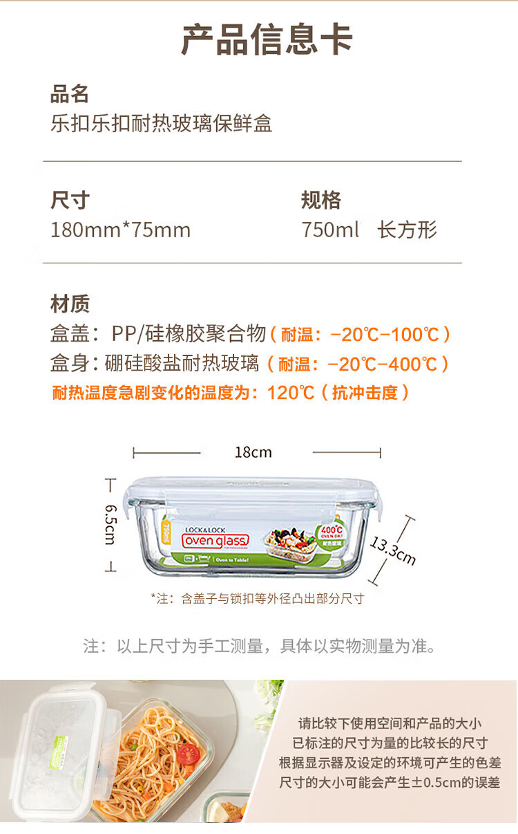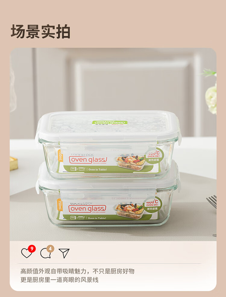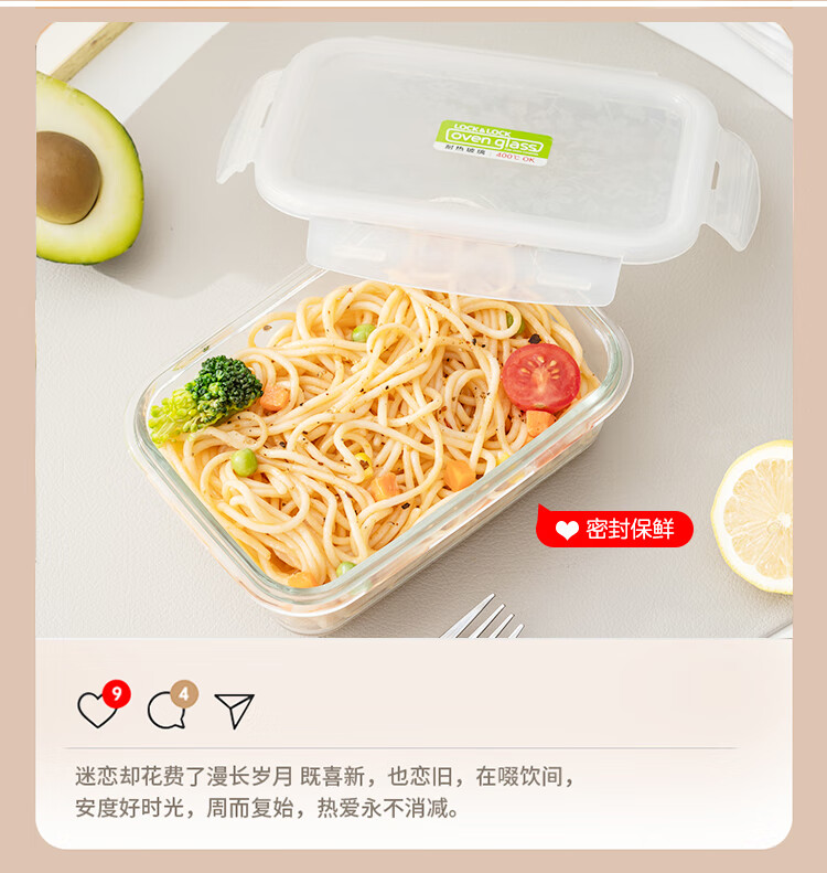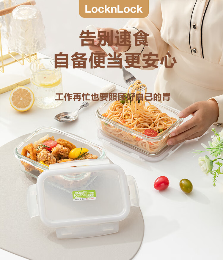 乐扣乐扣 玻璃保鲜盒微波炉饭盒碗密封便当餐盒储物盒收纳盒子750ML