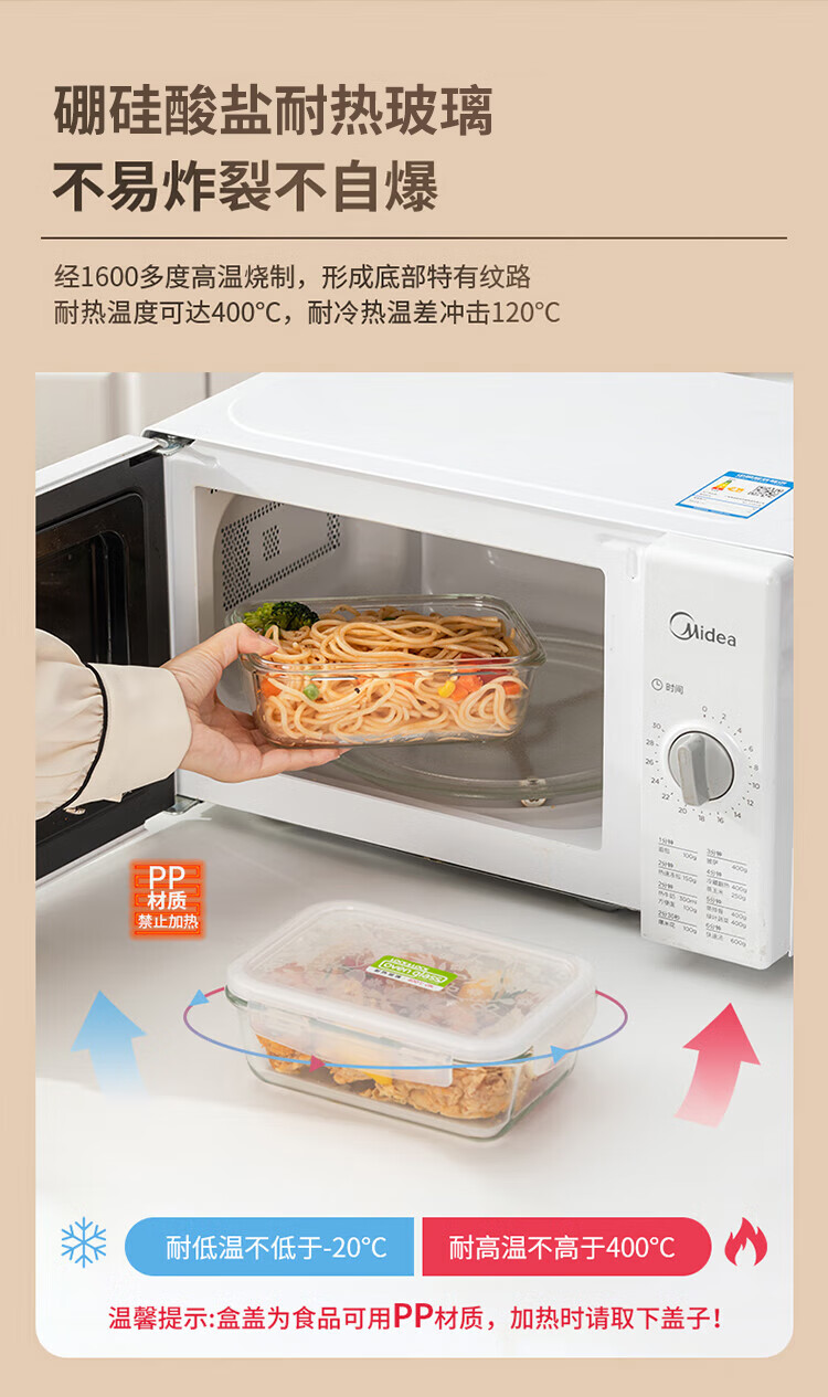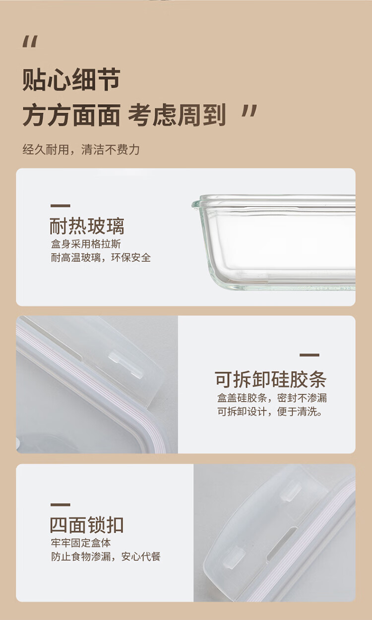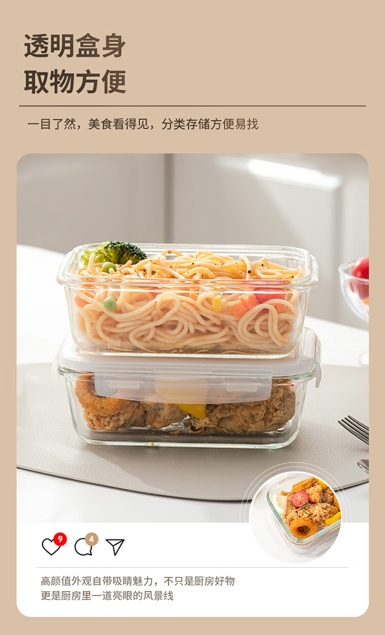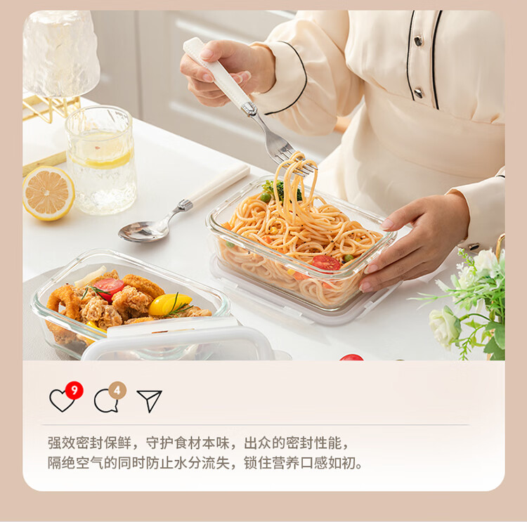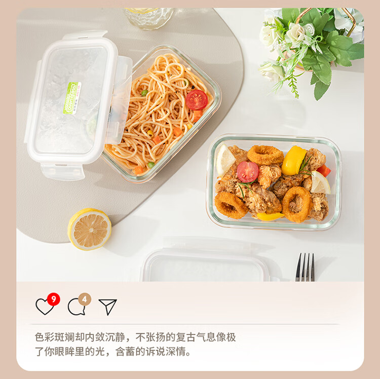 乐扣乐扣 玻璃保鲜盒微波炉饭盒碗密封便当餐盒储物盒收纳盒子750ML