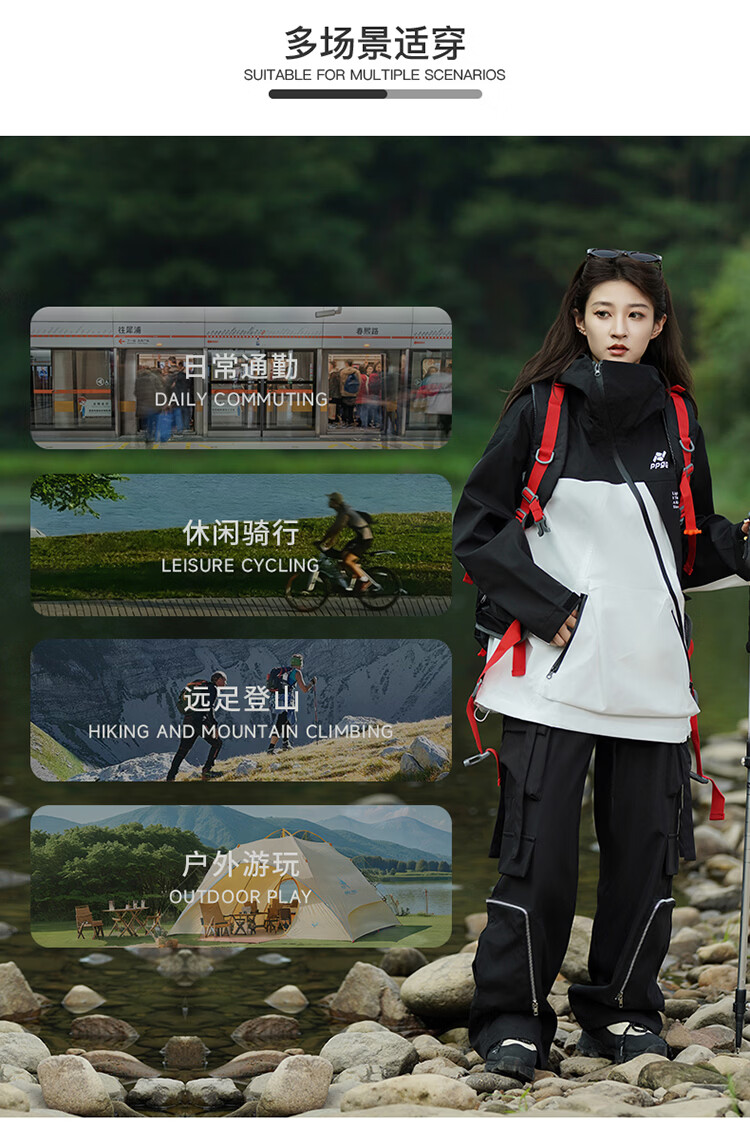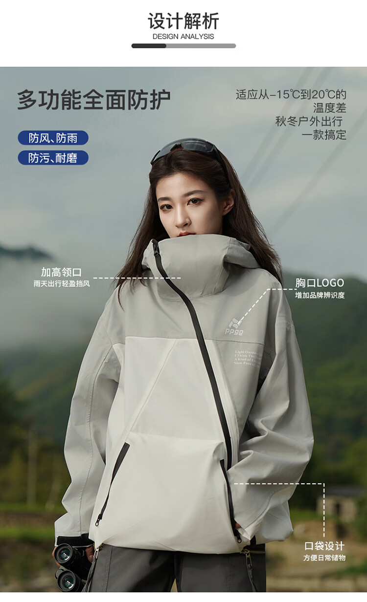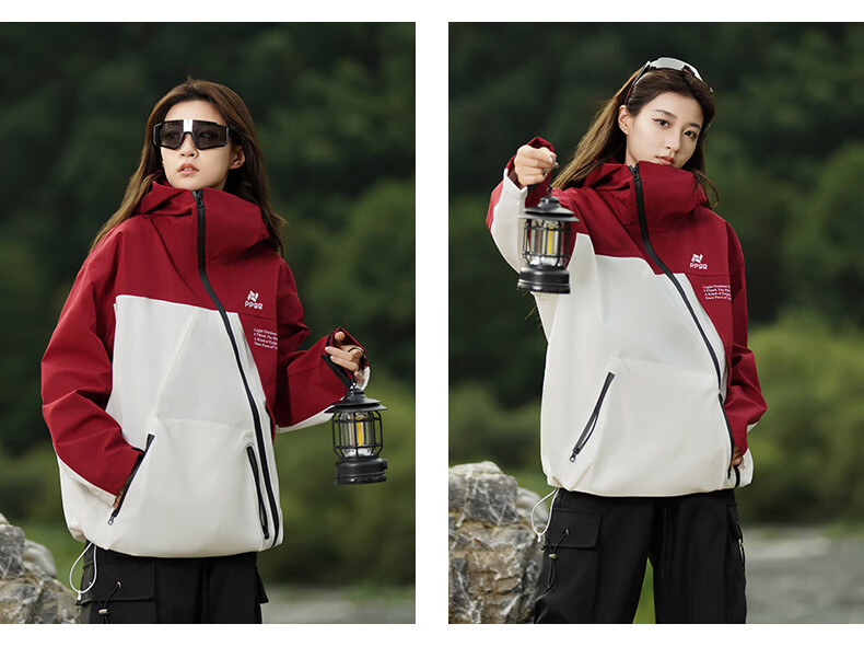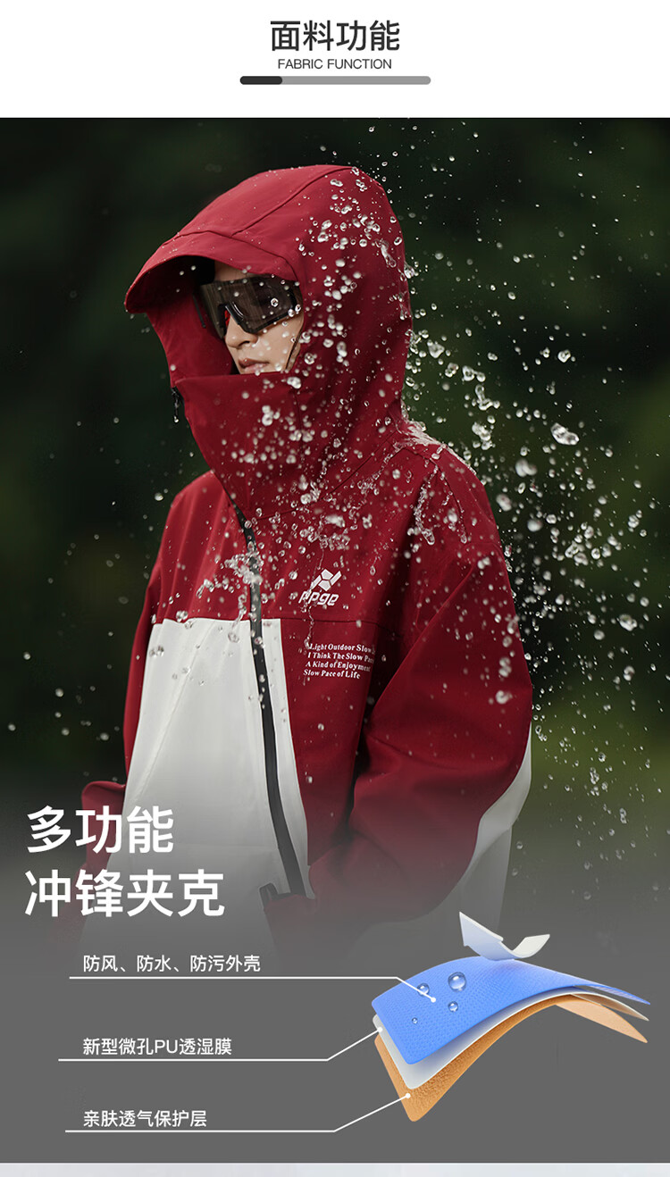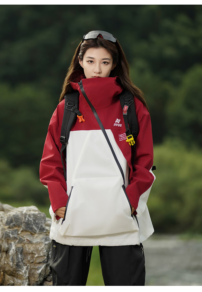 PPGE冲锋夹克秋冬防风防泼水户外登山衣服外套男女同款斜拉链运动夹克 赤狰红 软壳外套 M