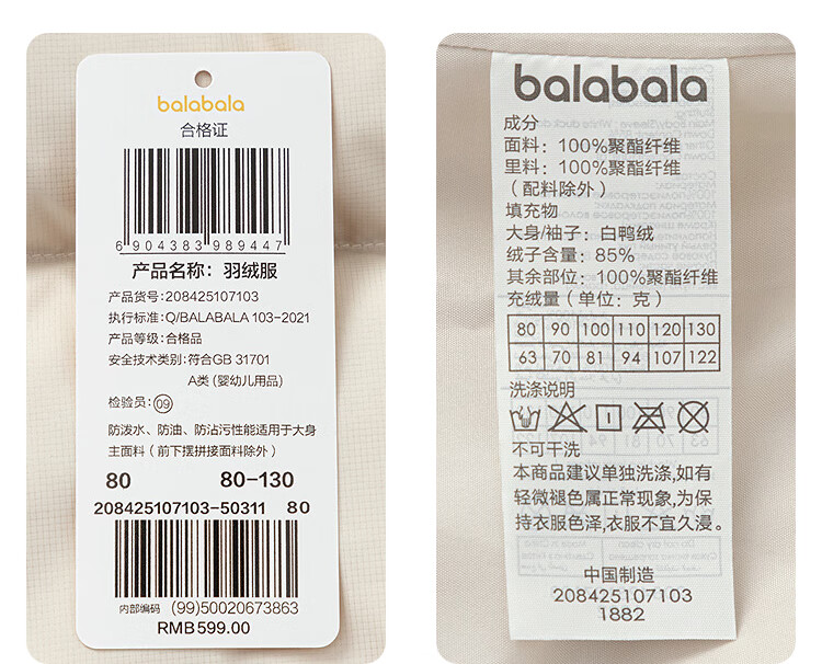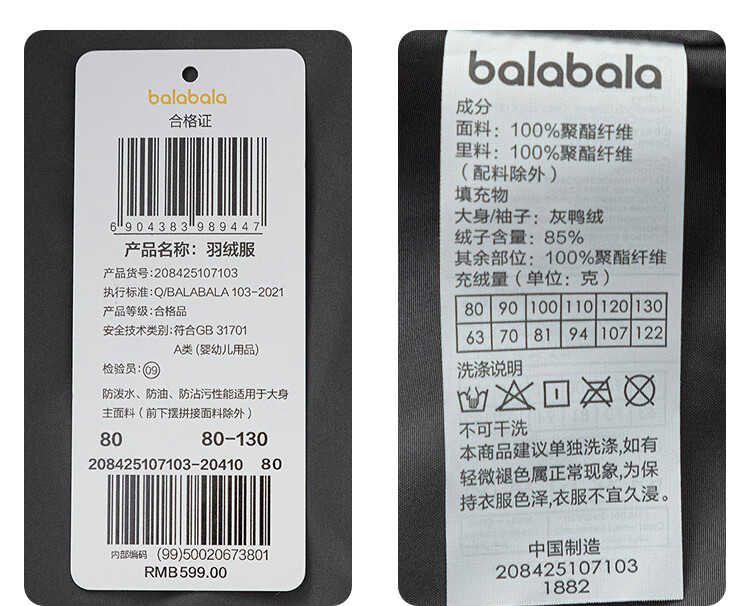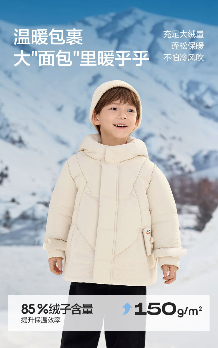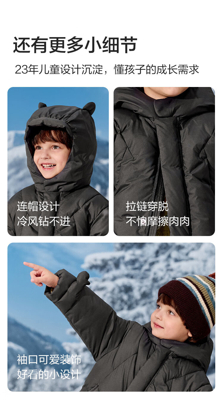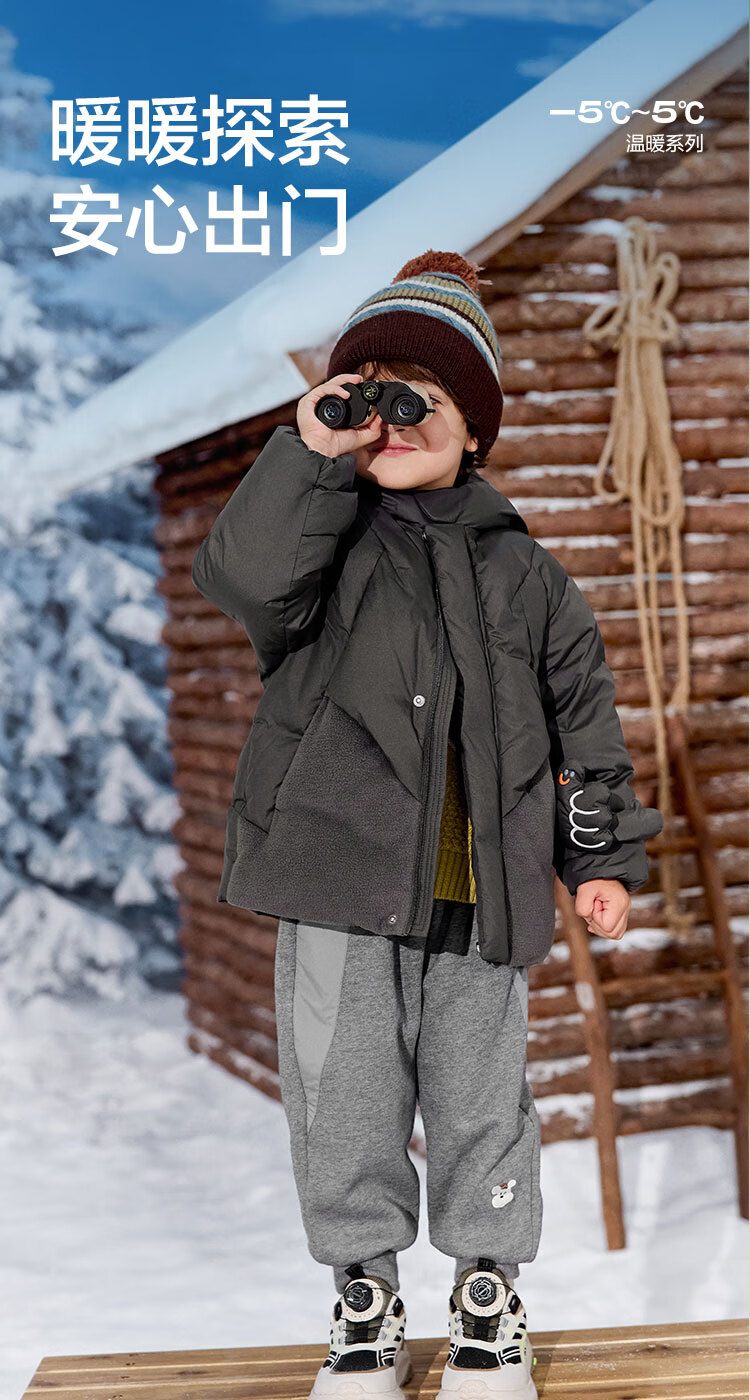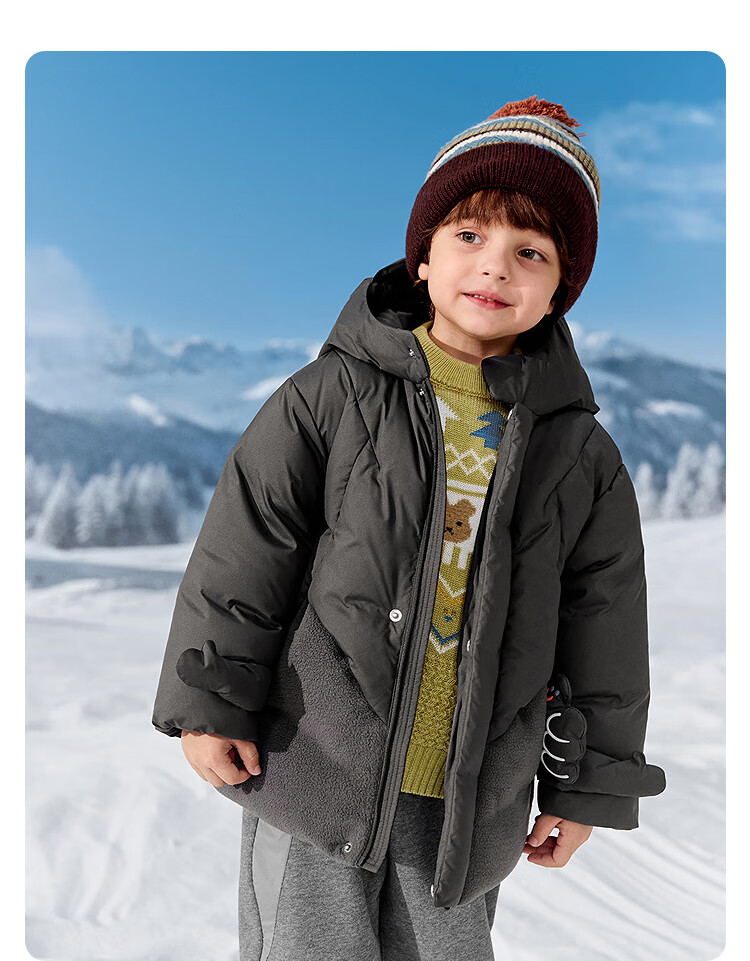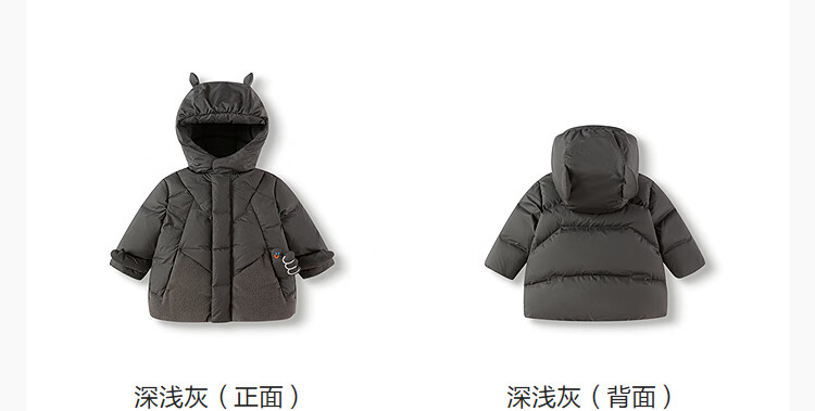 巴拉巴拉balaOne儿童羽绒服男童简约童装2025年冬季新款厚款保暖 深浅灰20410-灰鸭绒 110 充绒量94g
