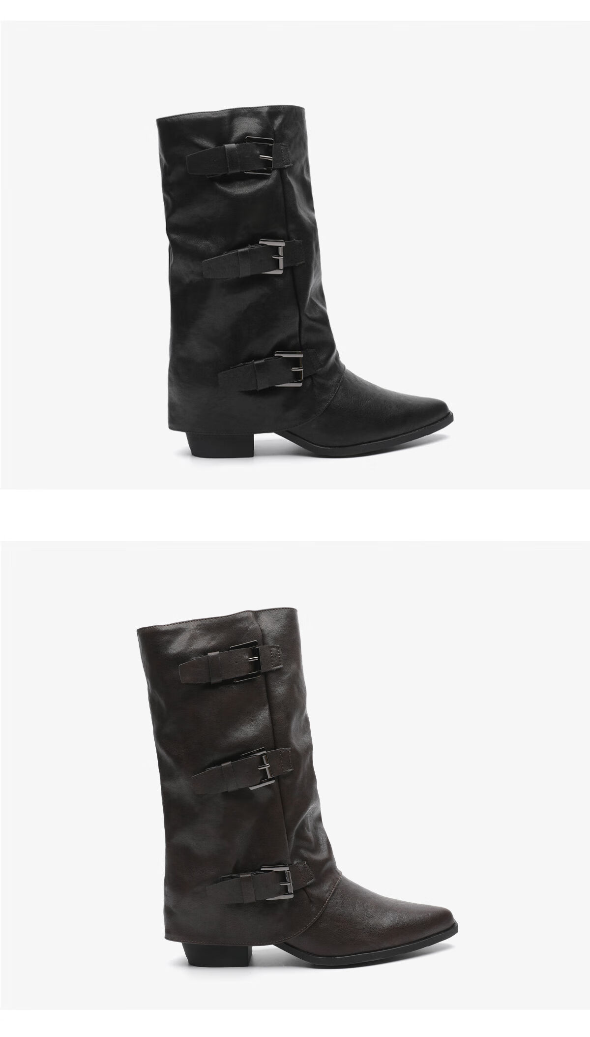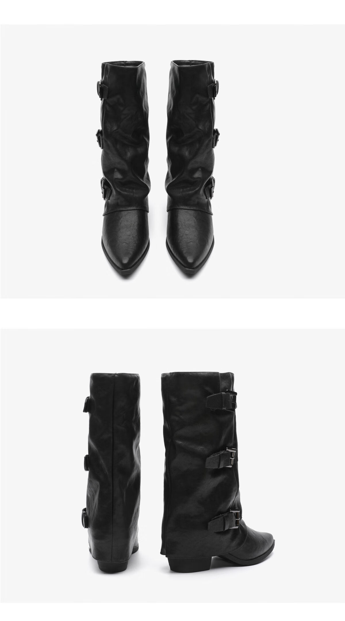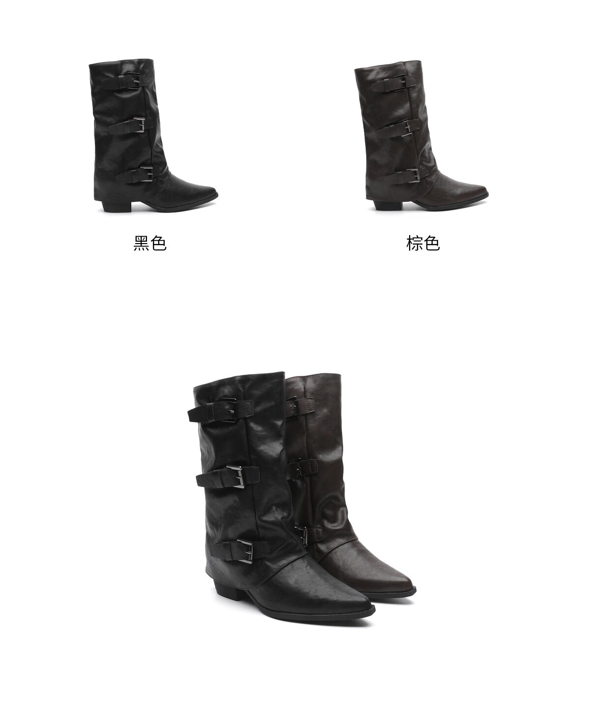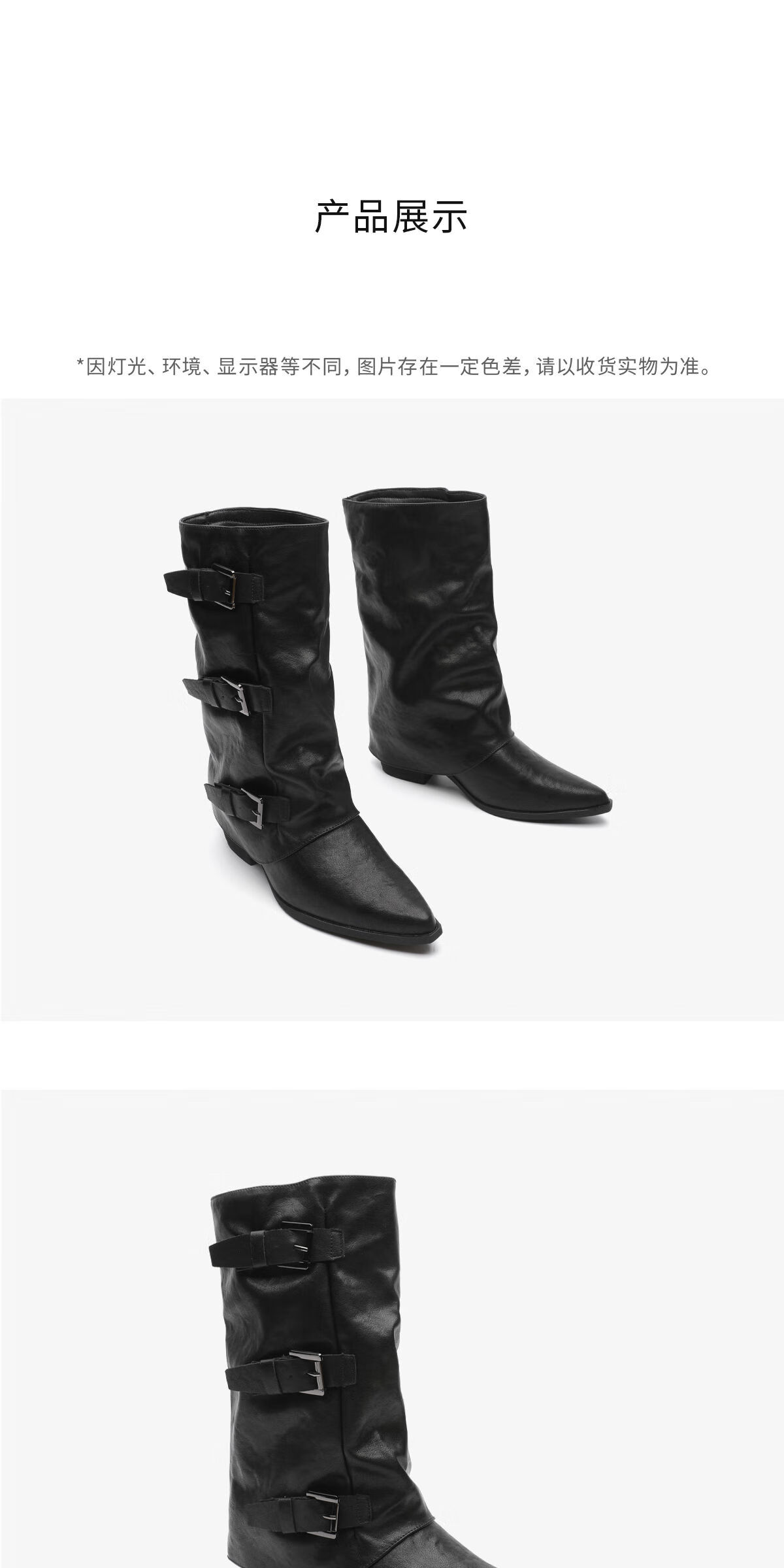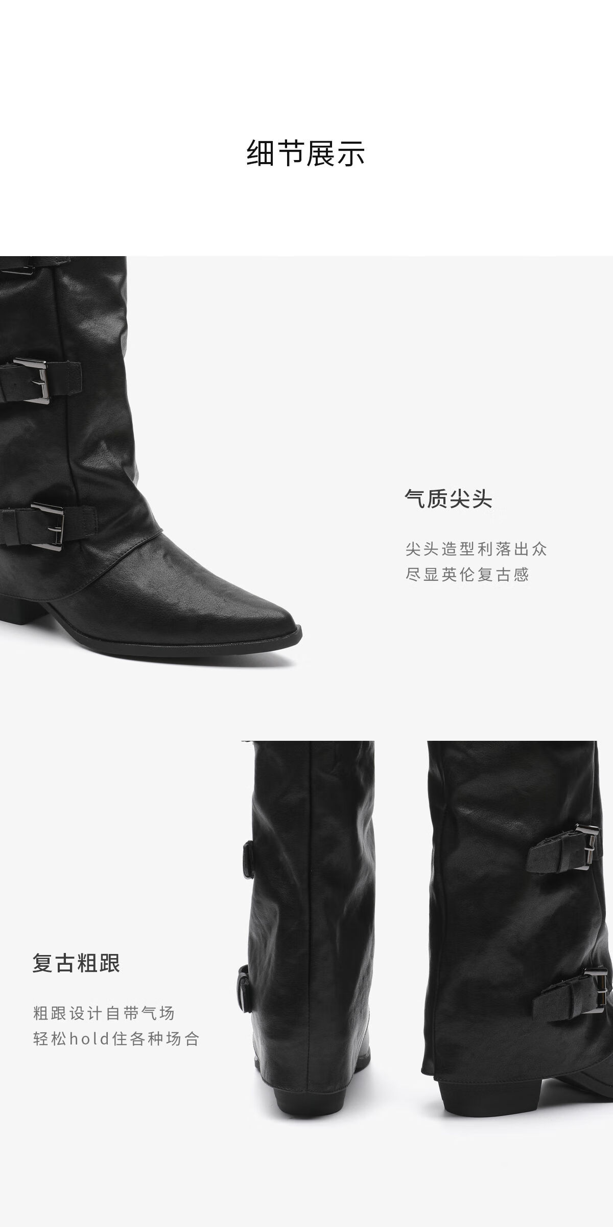 月芽儿尖头裤管靴女2025年秋季季新款法式加绒中筒靴子黑色时装靴短靴 绒里黑色01T 34