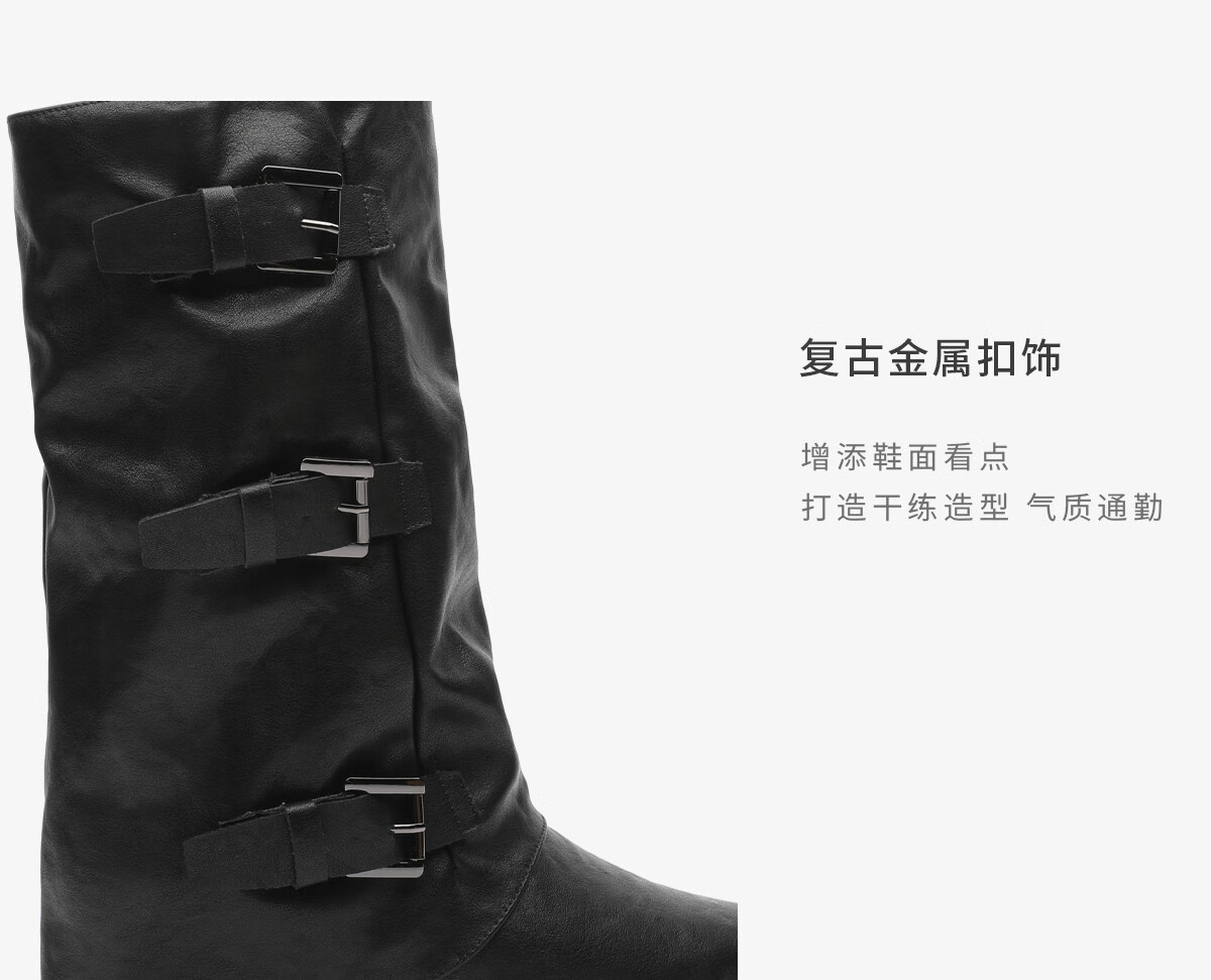 星期六(St&Sat)时尚过膝长筒靴女靴时尚百搭增高松糕底气质显高显瘦瘦靴子 黑色 35