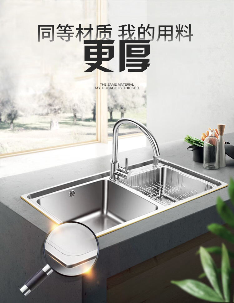 欧琳(OULIN)欧琳水槽双槽套餐 厨房304不锈钢洗菜盆 洗碗槽大双槽 655A
