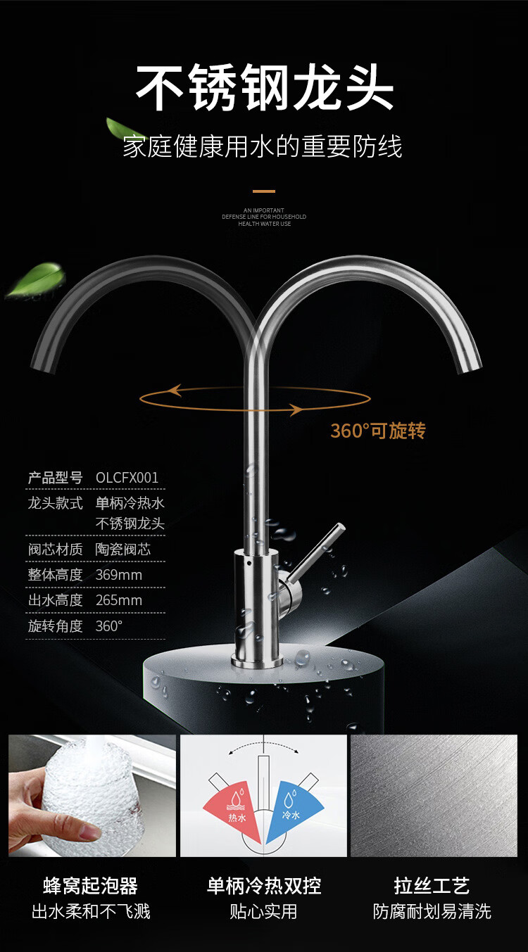 箭牌304不锈钢冷热水龙头可旋转抽拉龙头厨房抽拉式【焕新补贴15%】