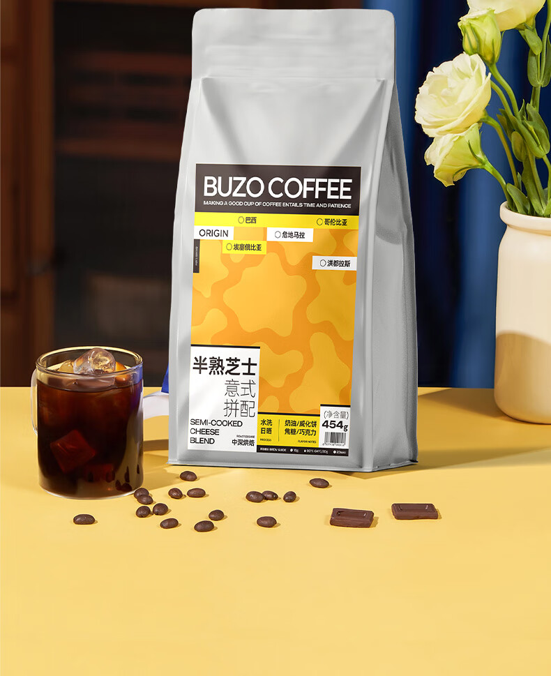BUZO新鲜烘焙 意式拼配咖啡豆1kg哥伦比亚巴西阿拉比卡美式咖啡1000g 小黄油拼配1kg(深烘)油脂丰厚 中深烘焙 不支持代磨粉