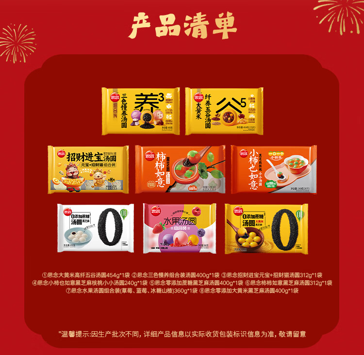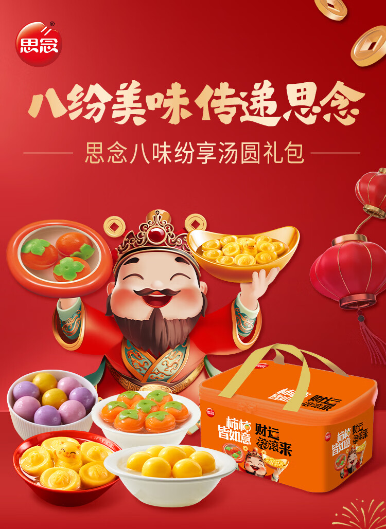 思念八味纷享汤圆年货礼袋2.87kg/8款含大黄米黑芝麻/柿柿如意年货