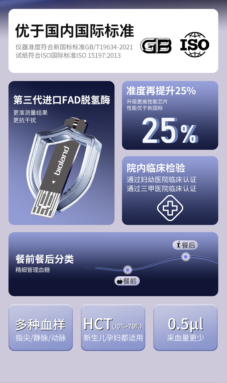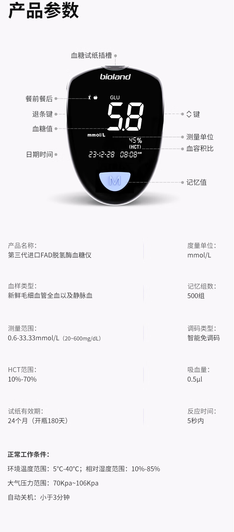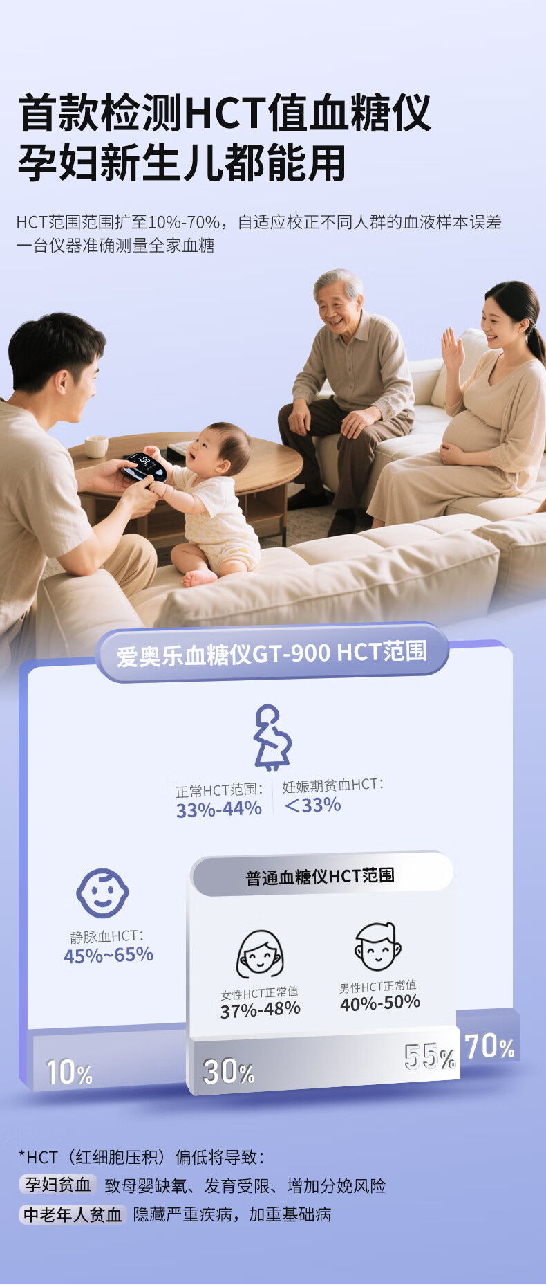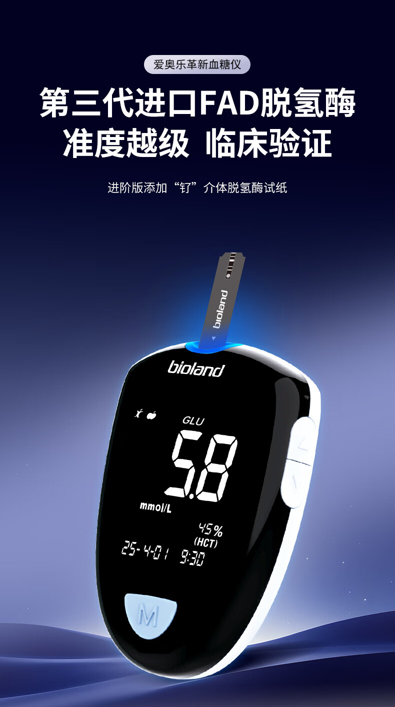 爱奥乐医用级测血糖仪GT-900高精准血糖脱氢酶试纸仪器100试纸套装