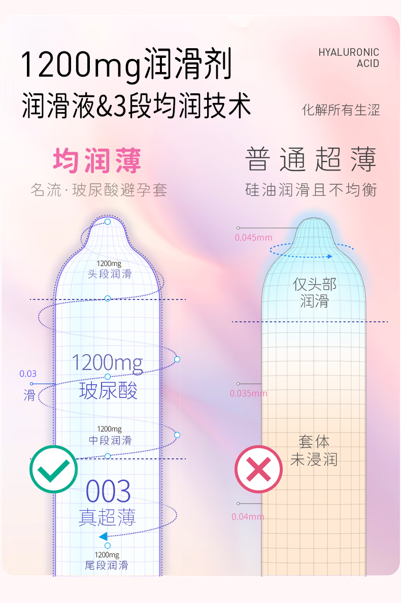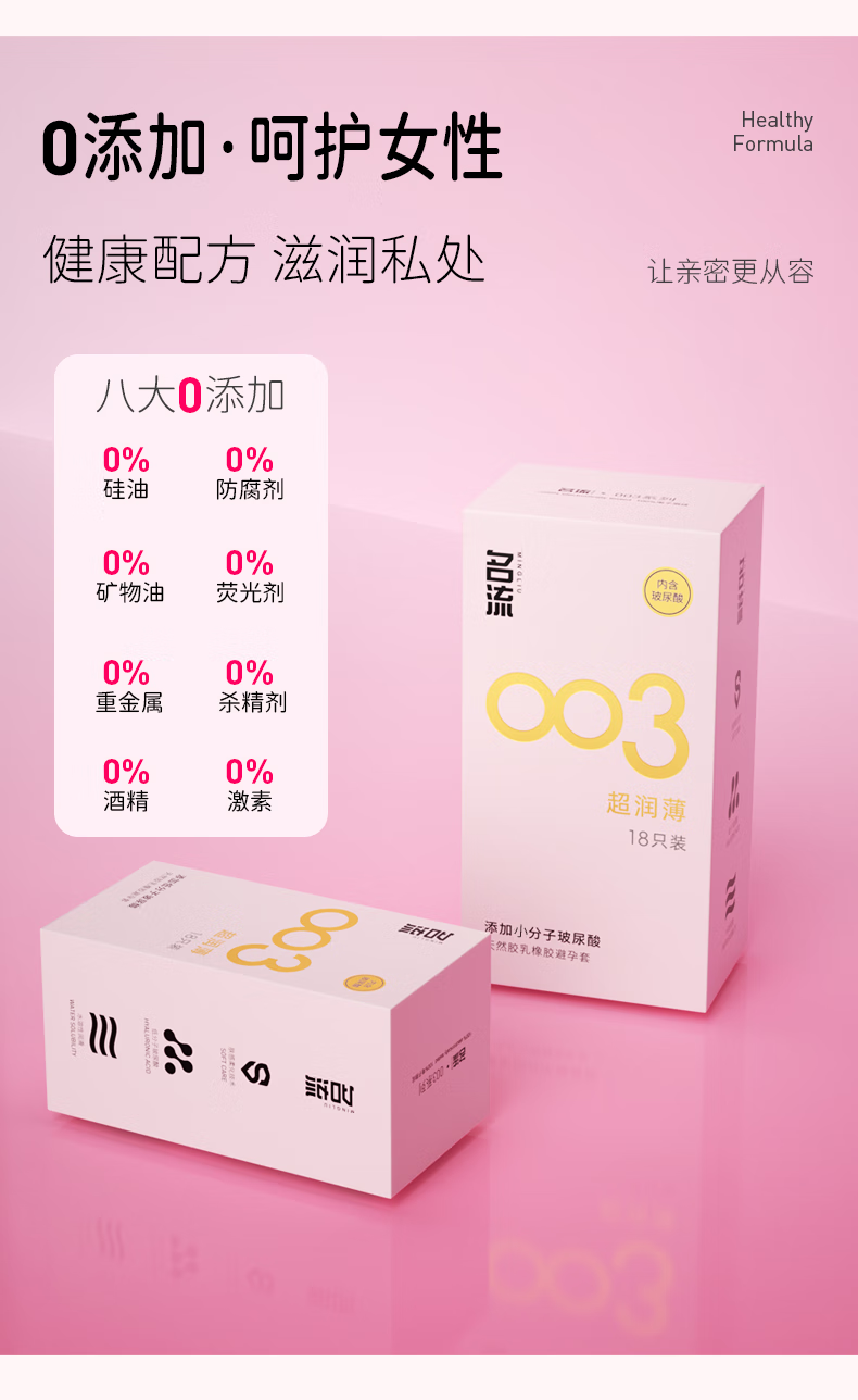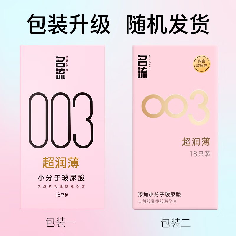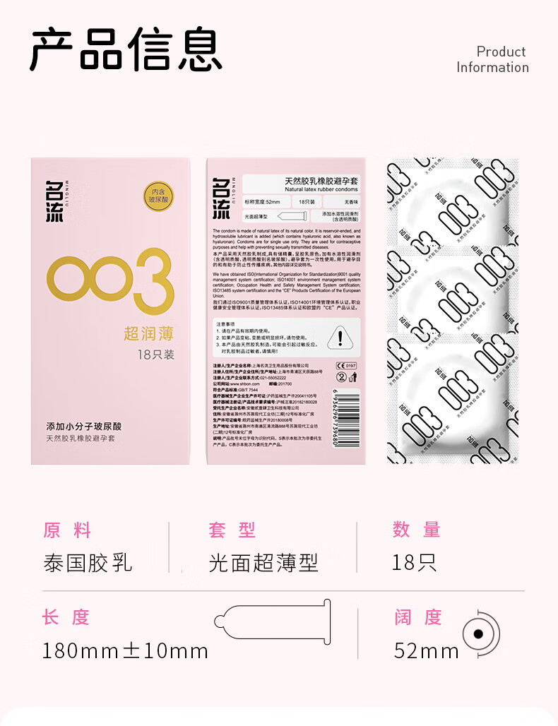 名流避孕套安全套套003玻尿酸润滑超薄隐形18只byt成人计生男女性用品