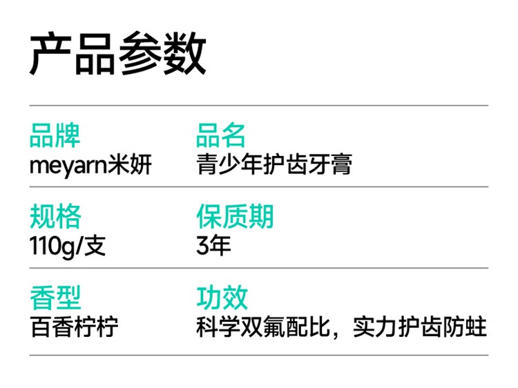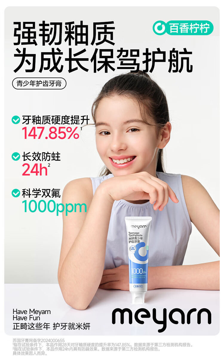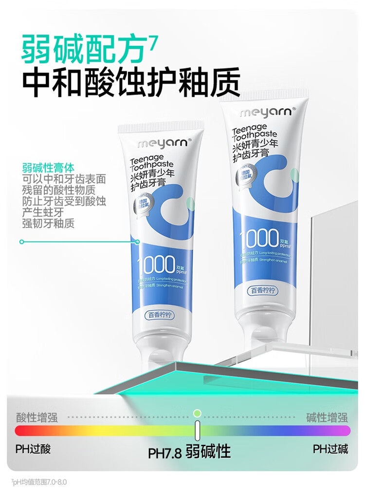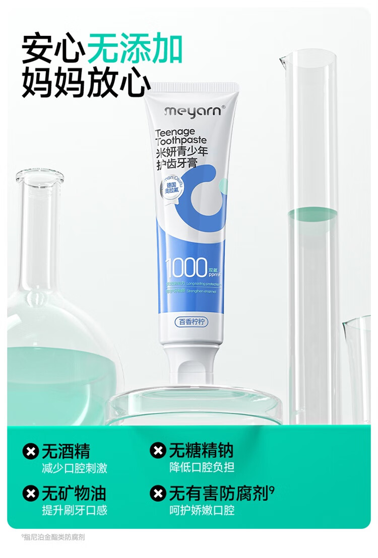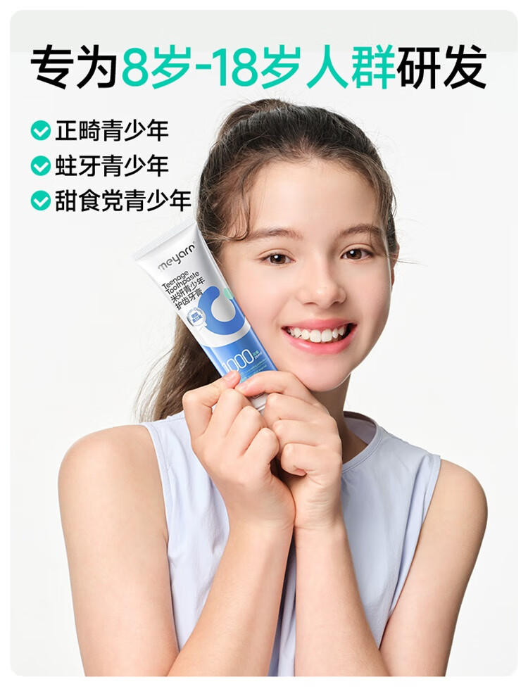 米妍(meyarn)青少年牙膏8-18岁正畸含氟防蛀牙防龋儿童牙膏初高中生专用220g