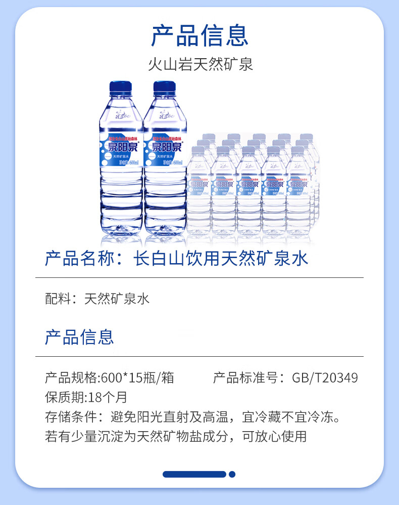 泉阳泉(QUANYANGQUAN) 长白山 天然矿泉水 泡茶水 600ml*15瓶