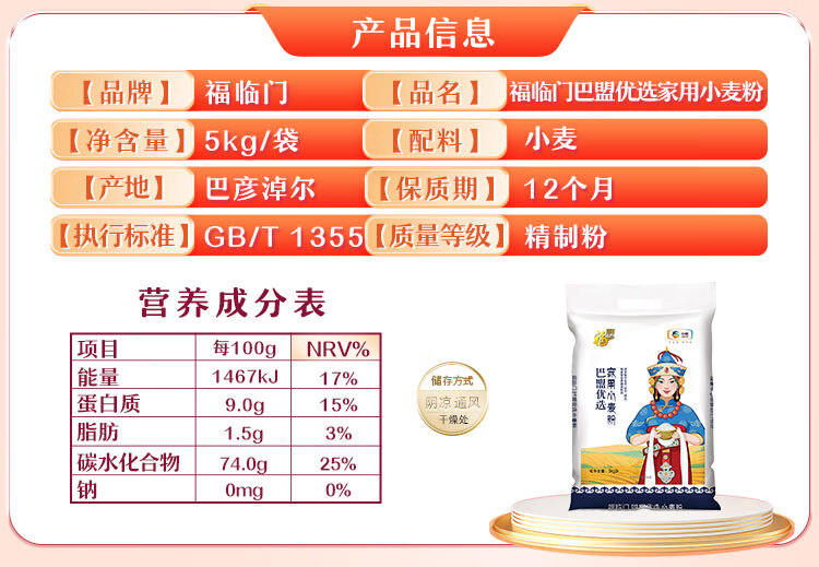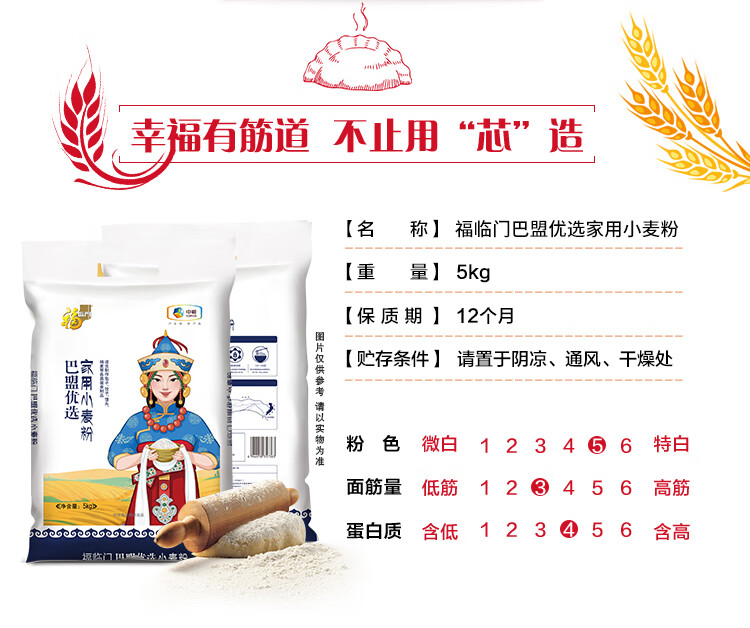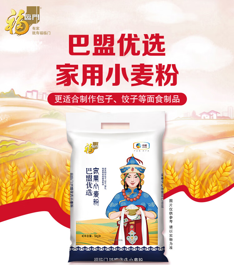 福临门巴盟优选家用小麦粉10斤 中筋面粉 包子馒头面条通用面粉 年货