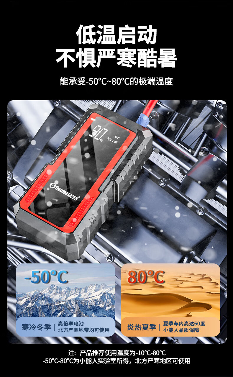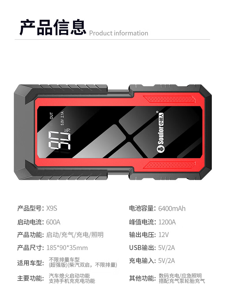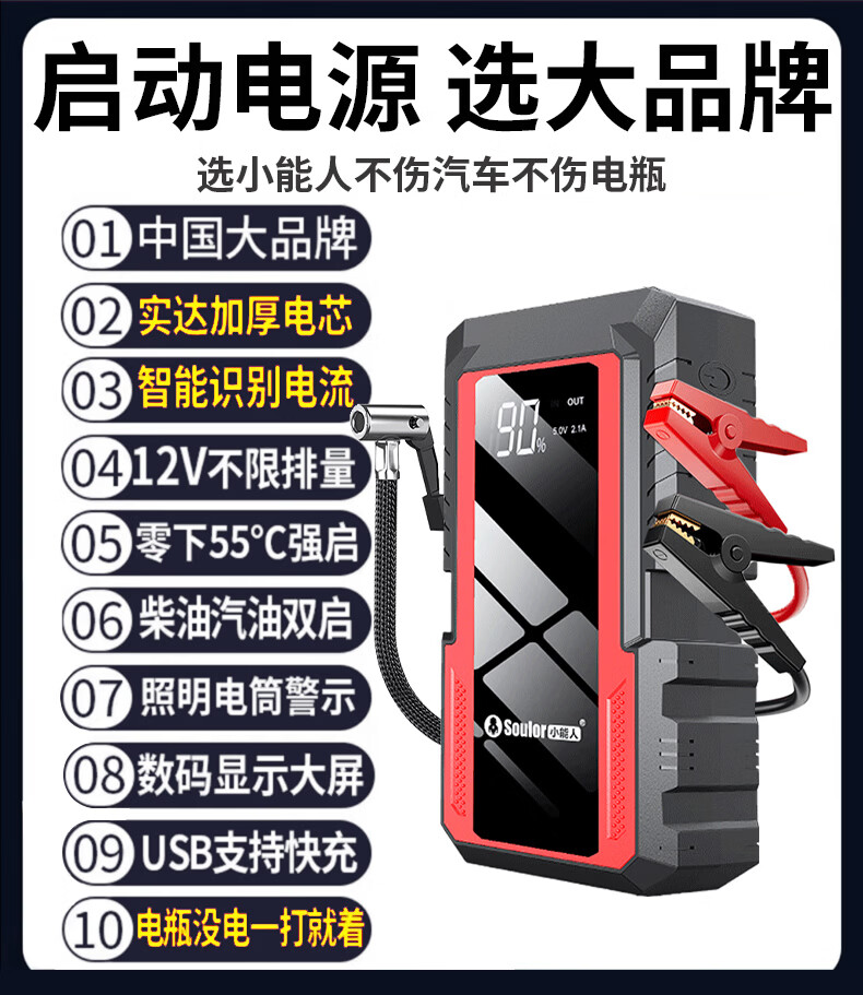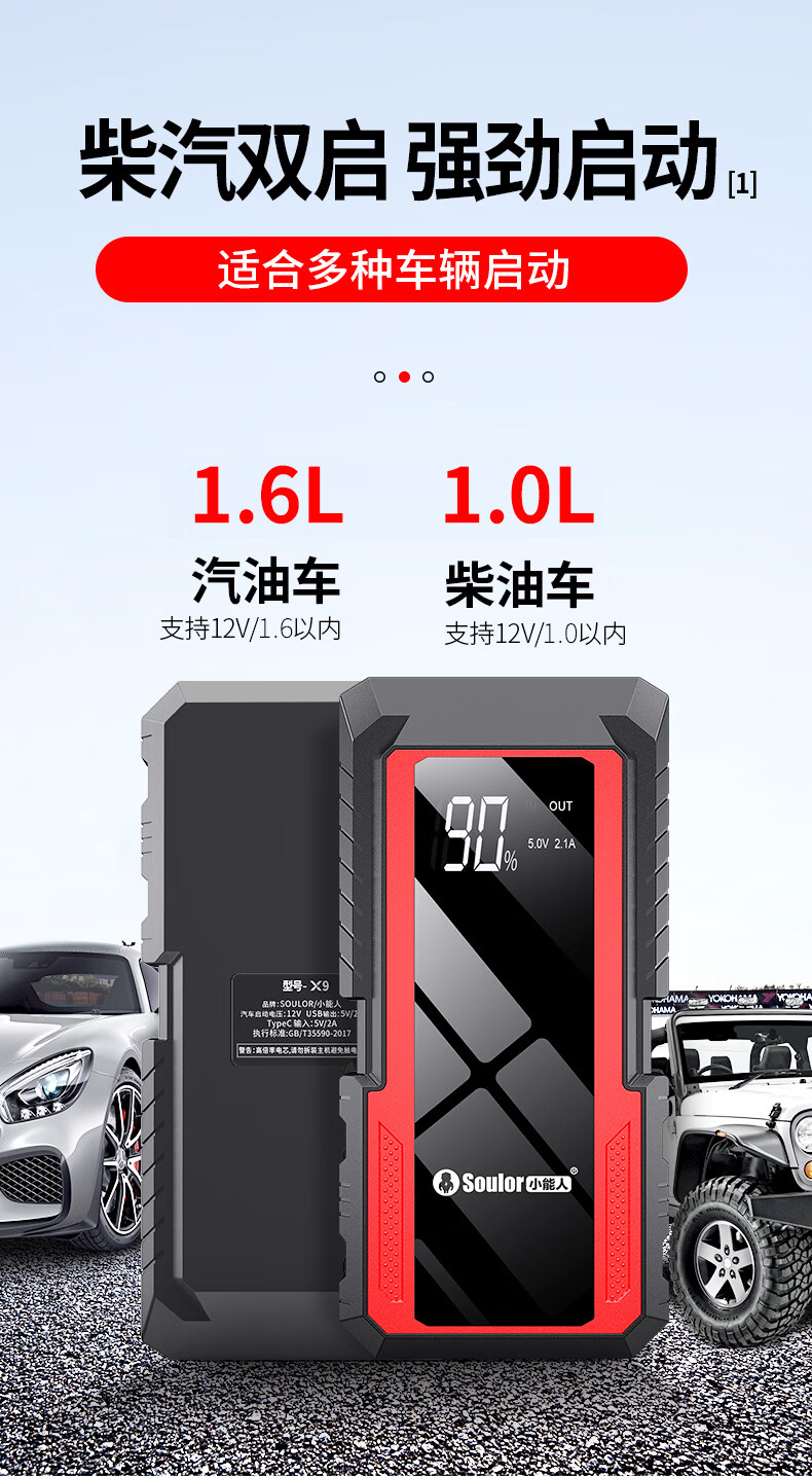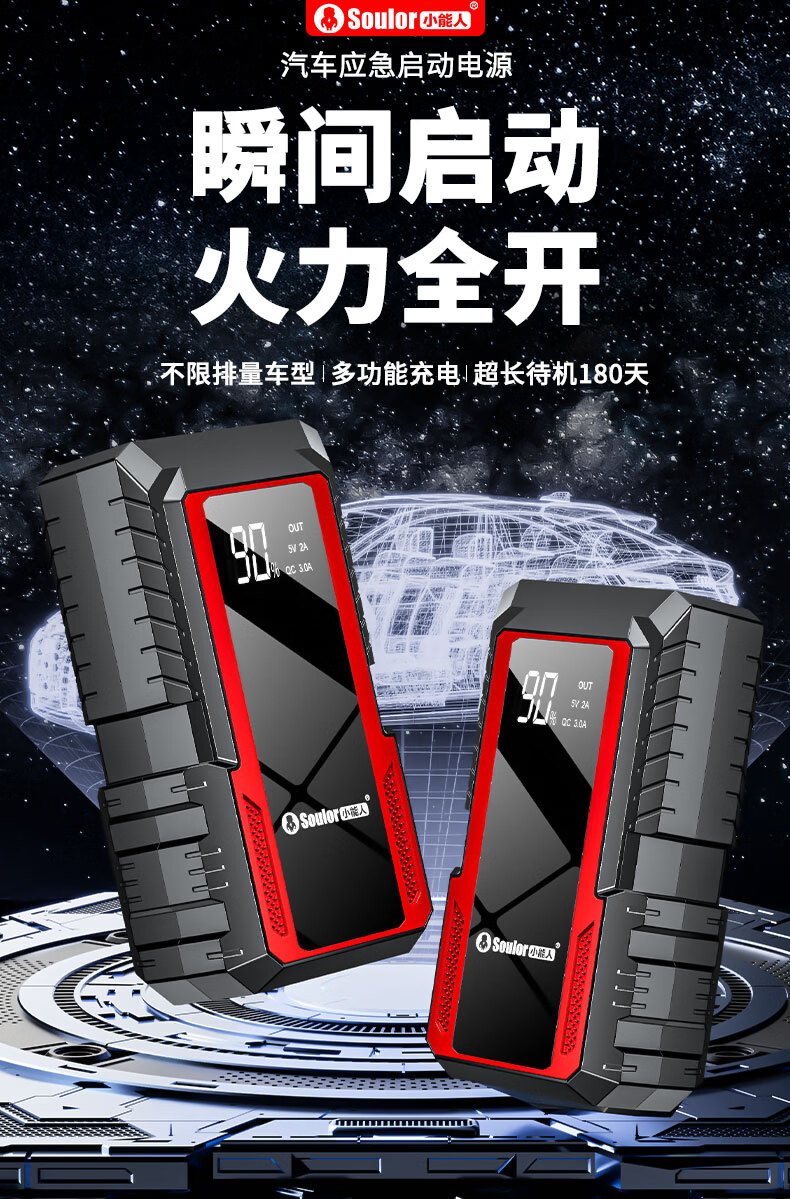 小能人(soulor)【3C认证】汽车应急启动电源搭电宝汽车专用12V电瓶紧急强启摩托车强起打火救援搭电神器X9S