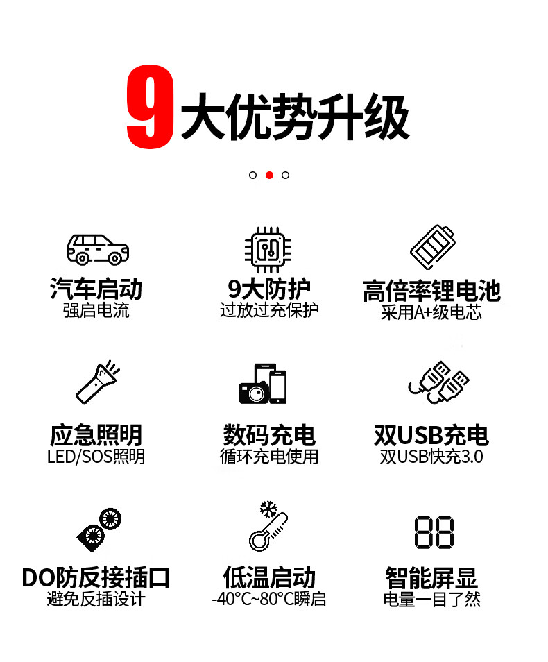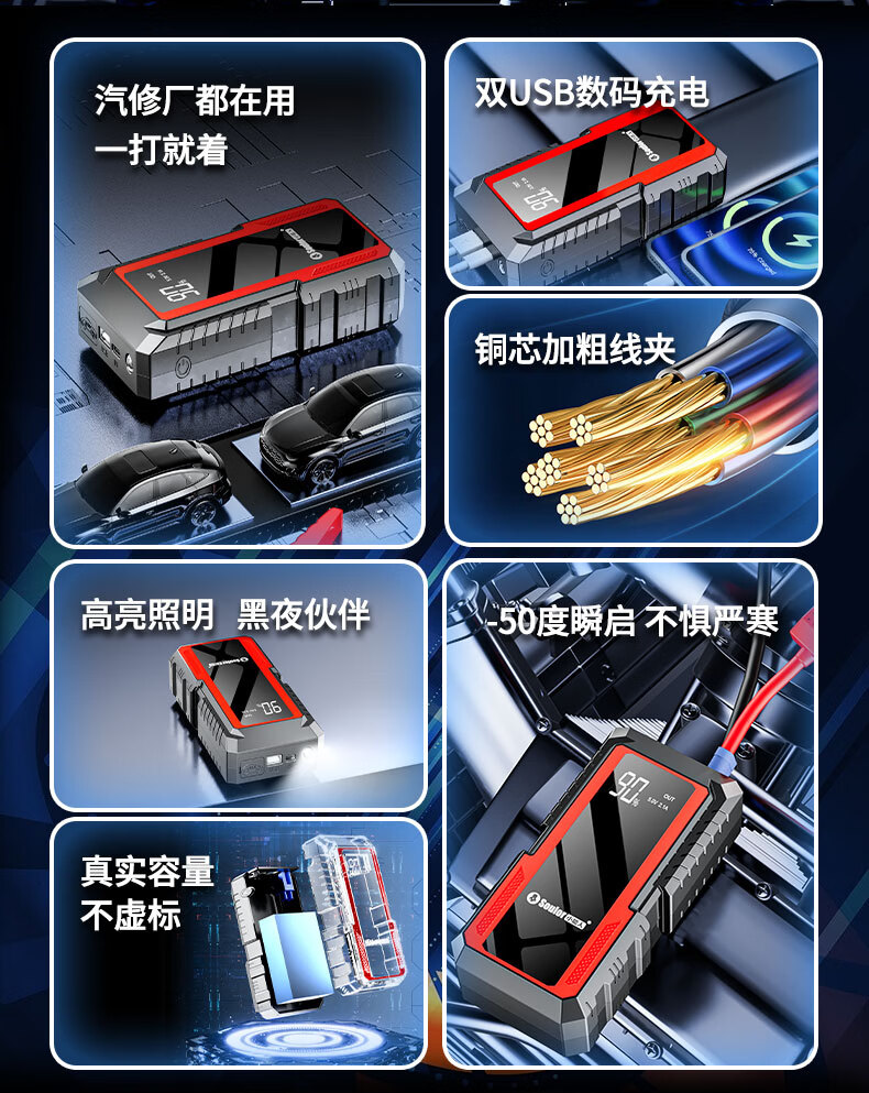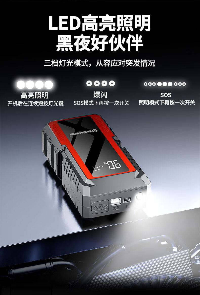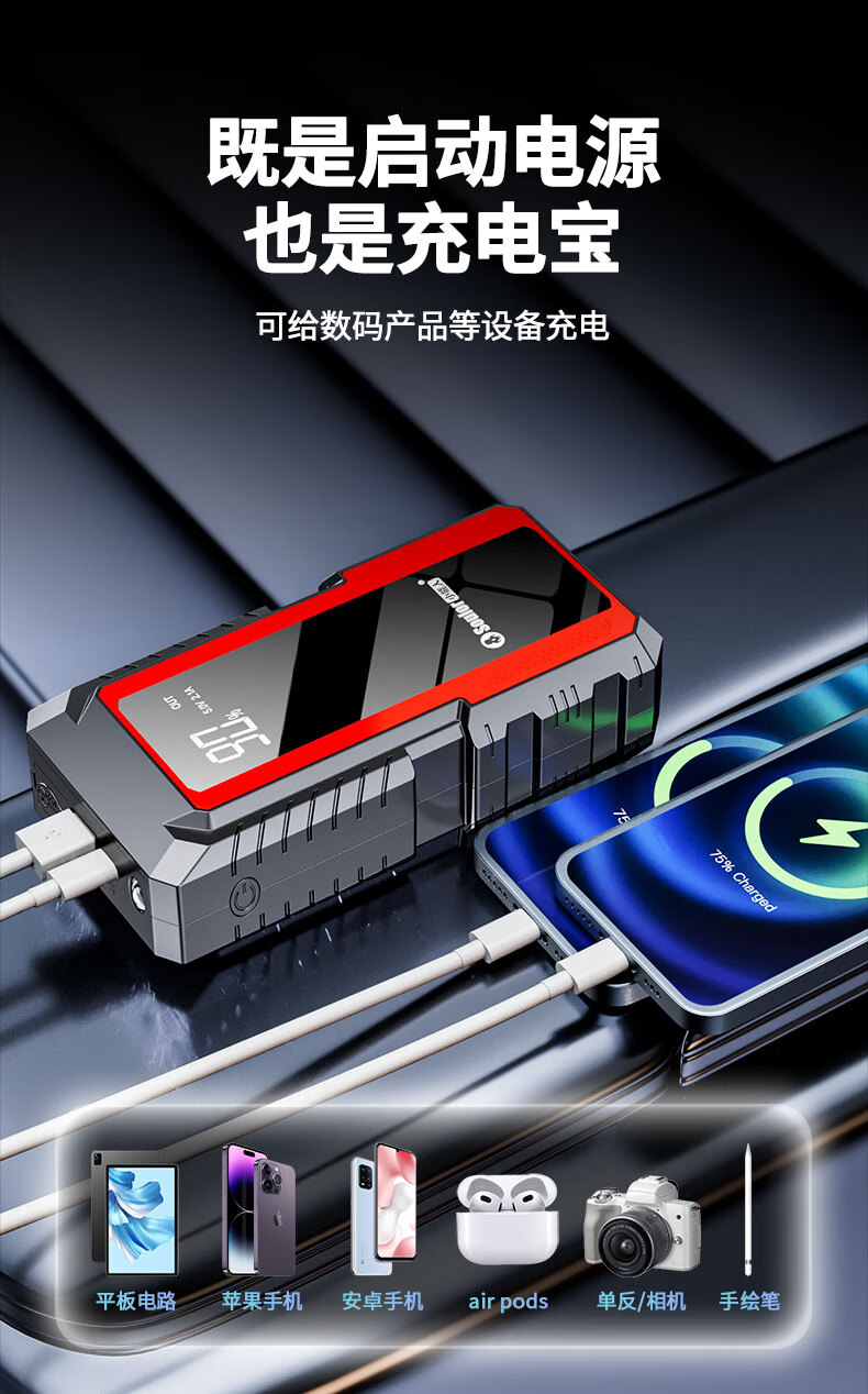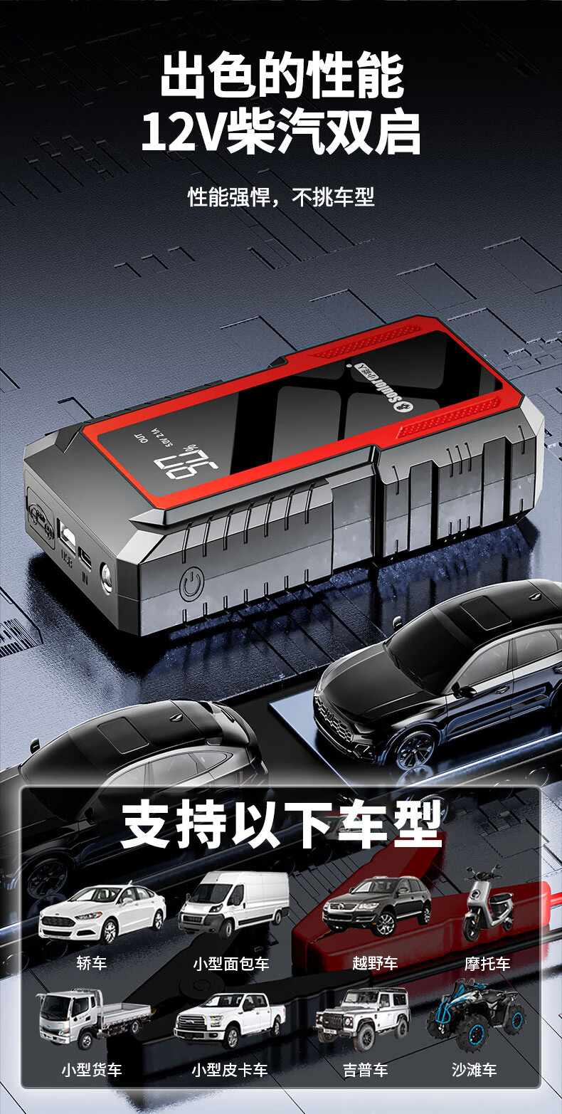 小能人(soulor)【3C认证】汽车应急启动电源搭电宝汽车专用12V电瓶紧急强启摩托车强起打火救援搭电神器X9S