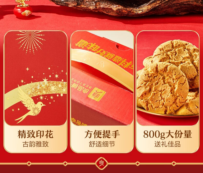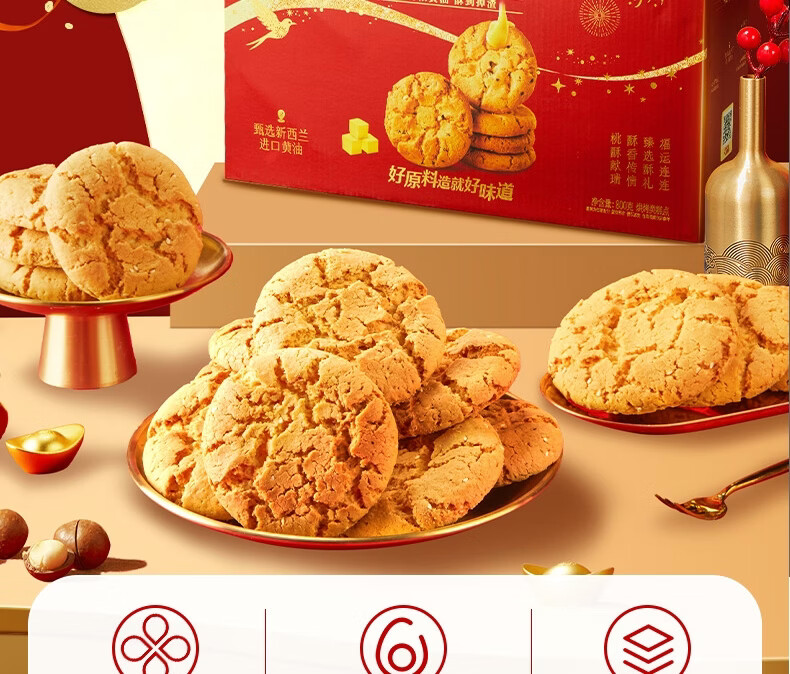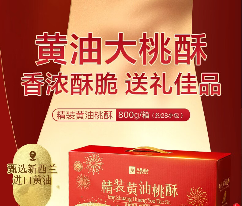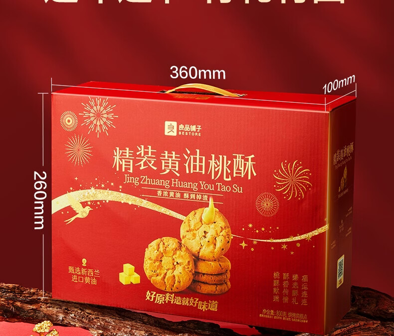 良品铺子桃酥饼干糕点点心休闲零食小吃烘烤小饼干食品 【年货礼盒】精装黄油桃酥800g*1盒