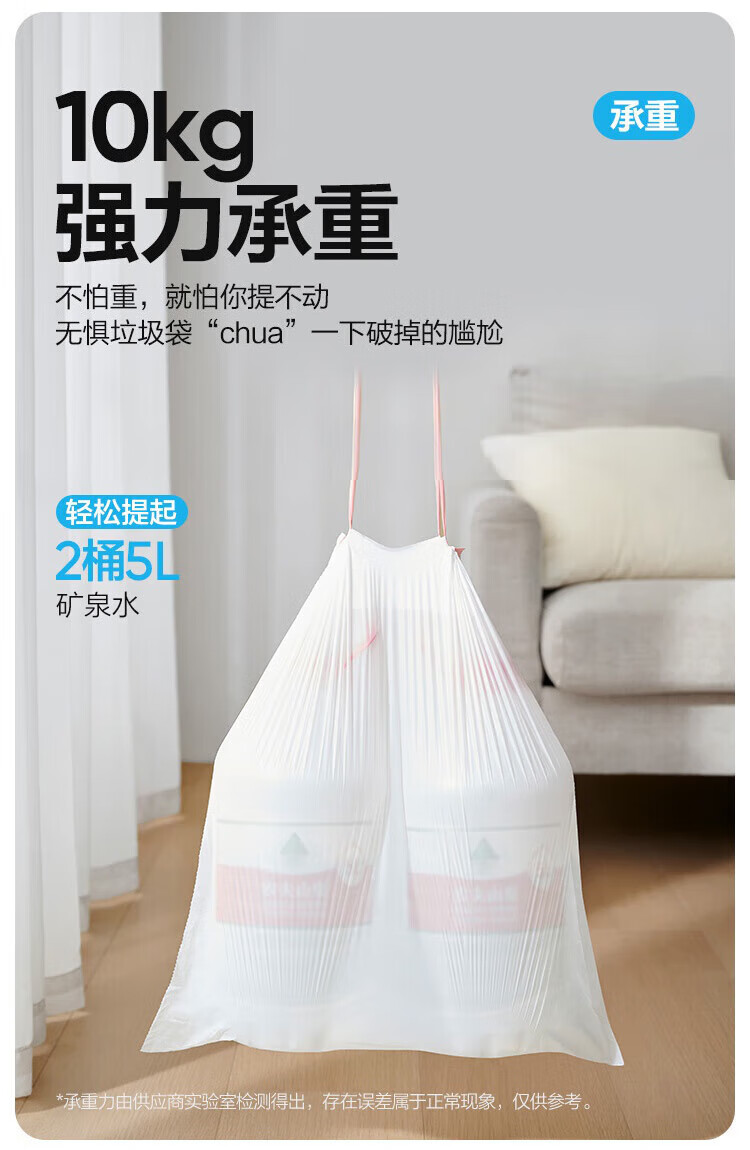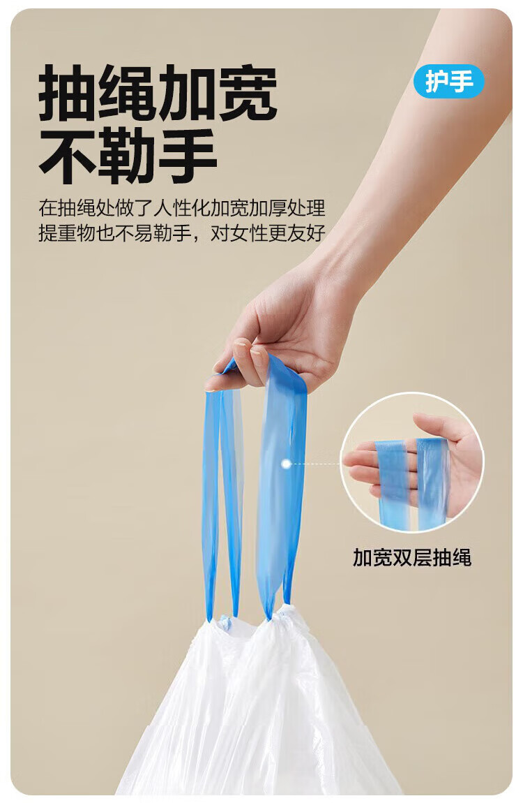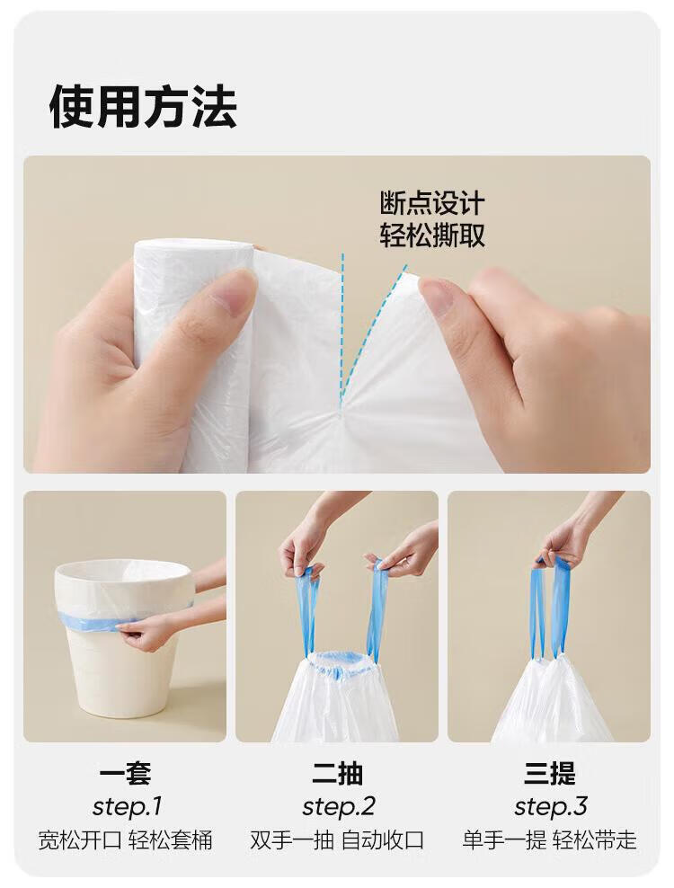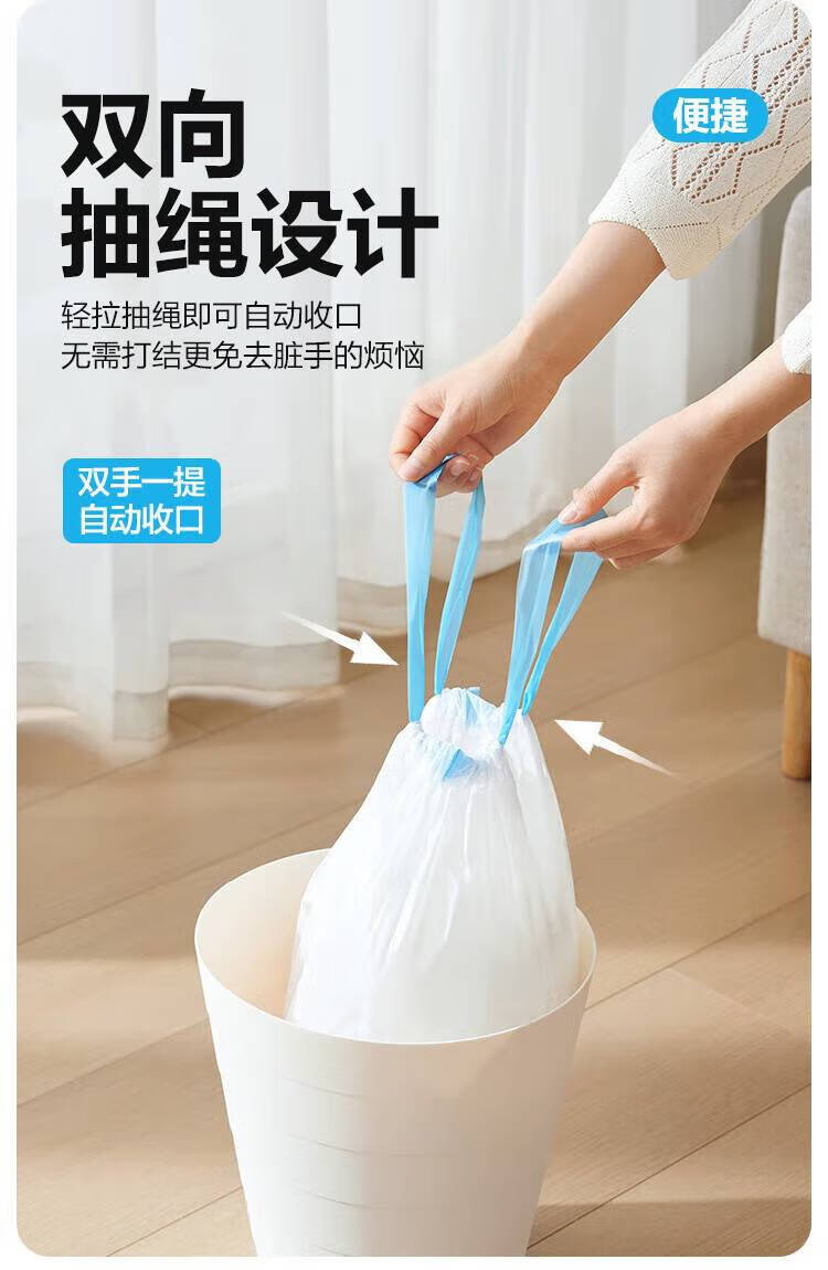 大号垃圾袋抽绳式家用加厚钢袋手提式自动收口厨房拉收塑料袋 1卷15只(颜色随机)加厚款 加厚