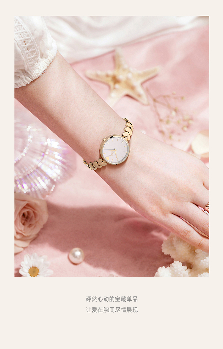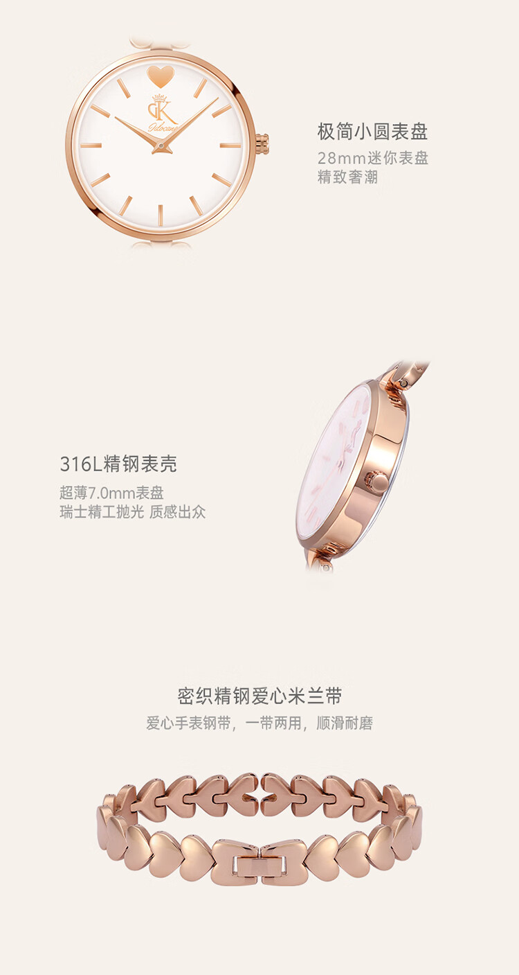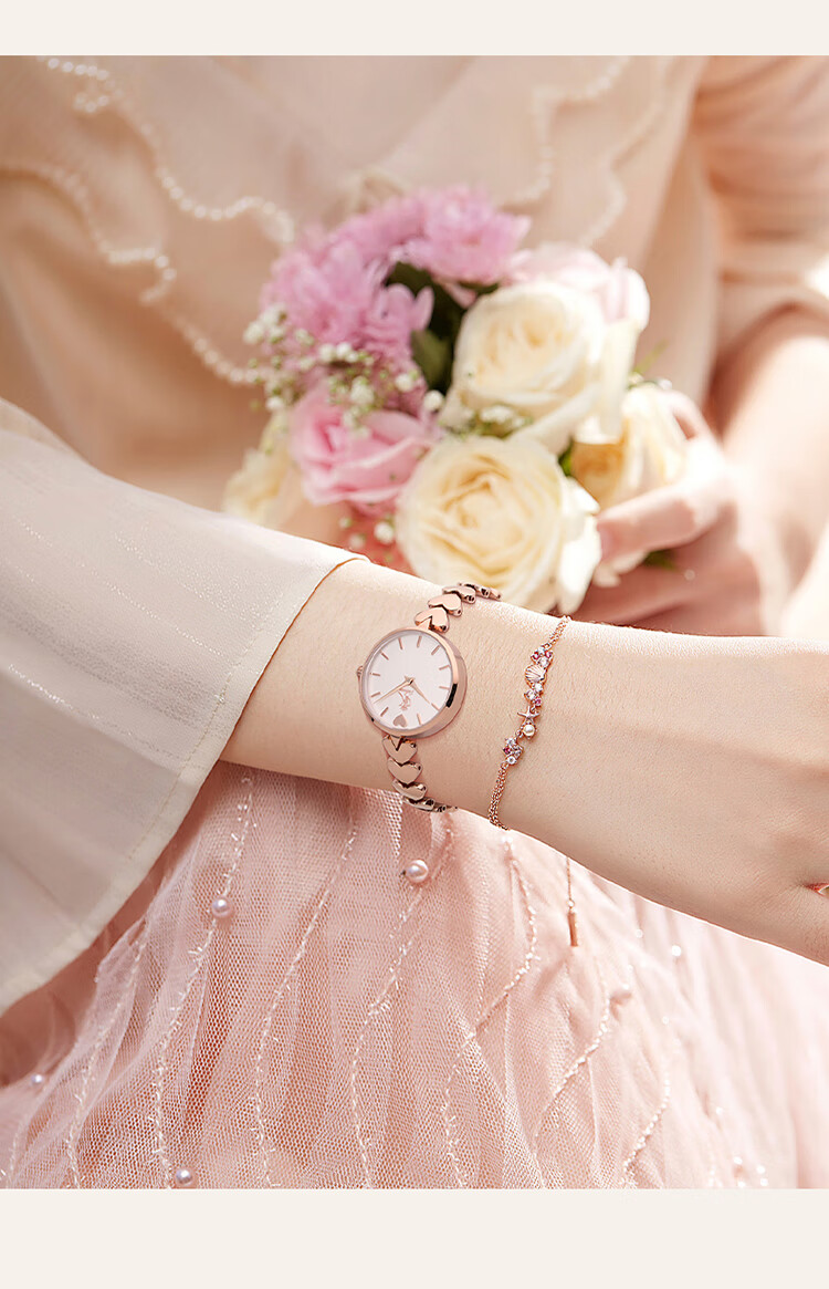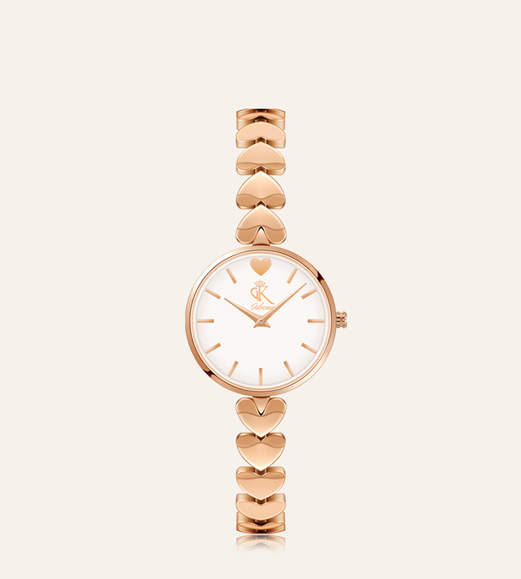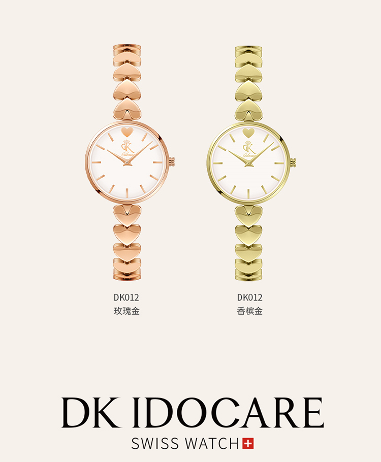 DK爱心表女士手表女石英表七夕情人节新年生日礼物送妈妈送女友老婆 爱心钢带-玫瑰金色