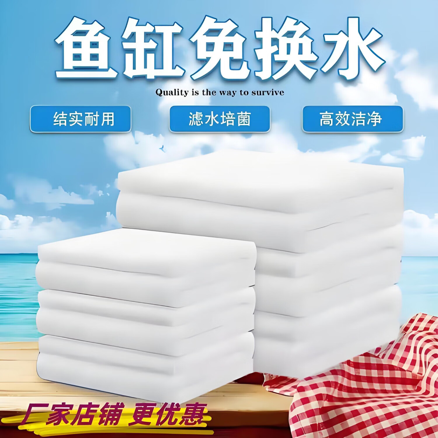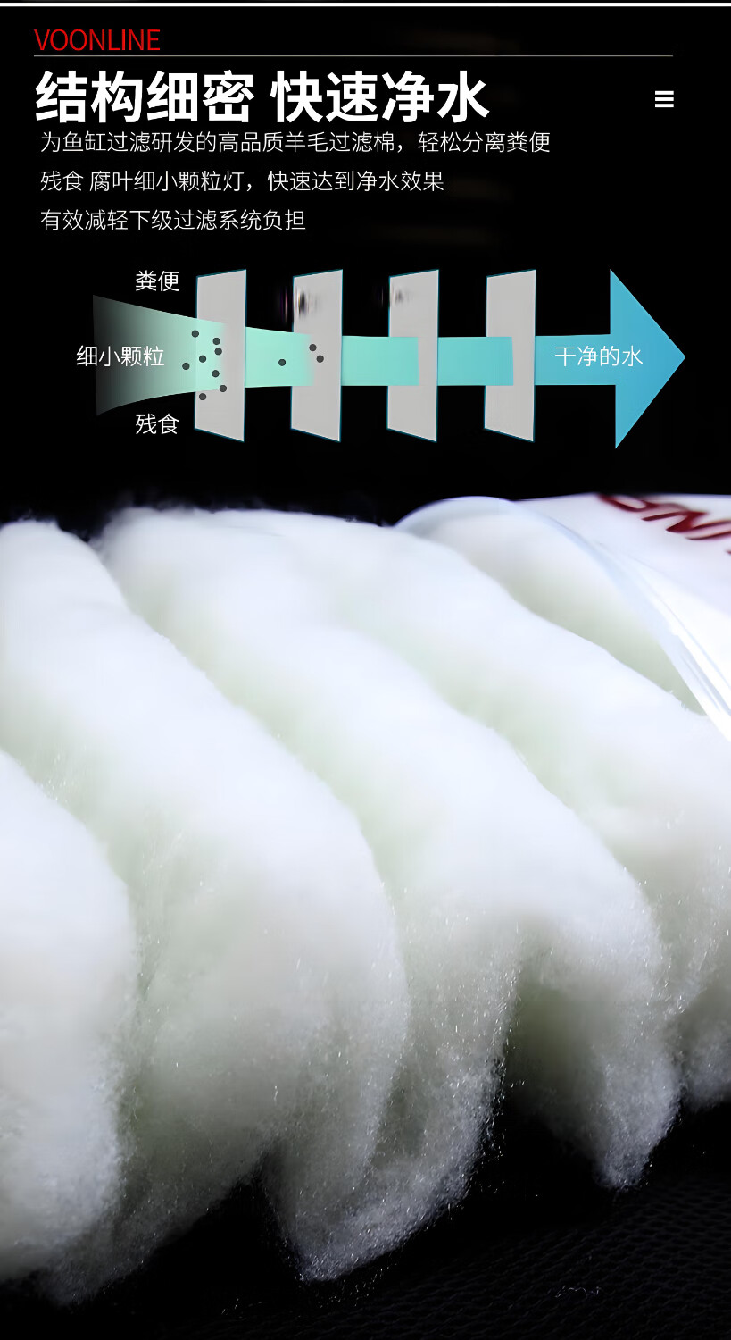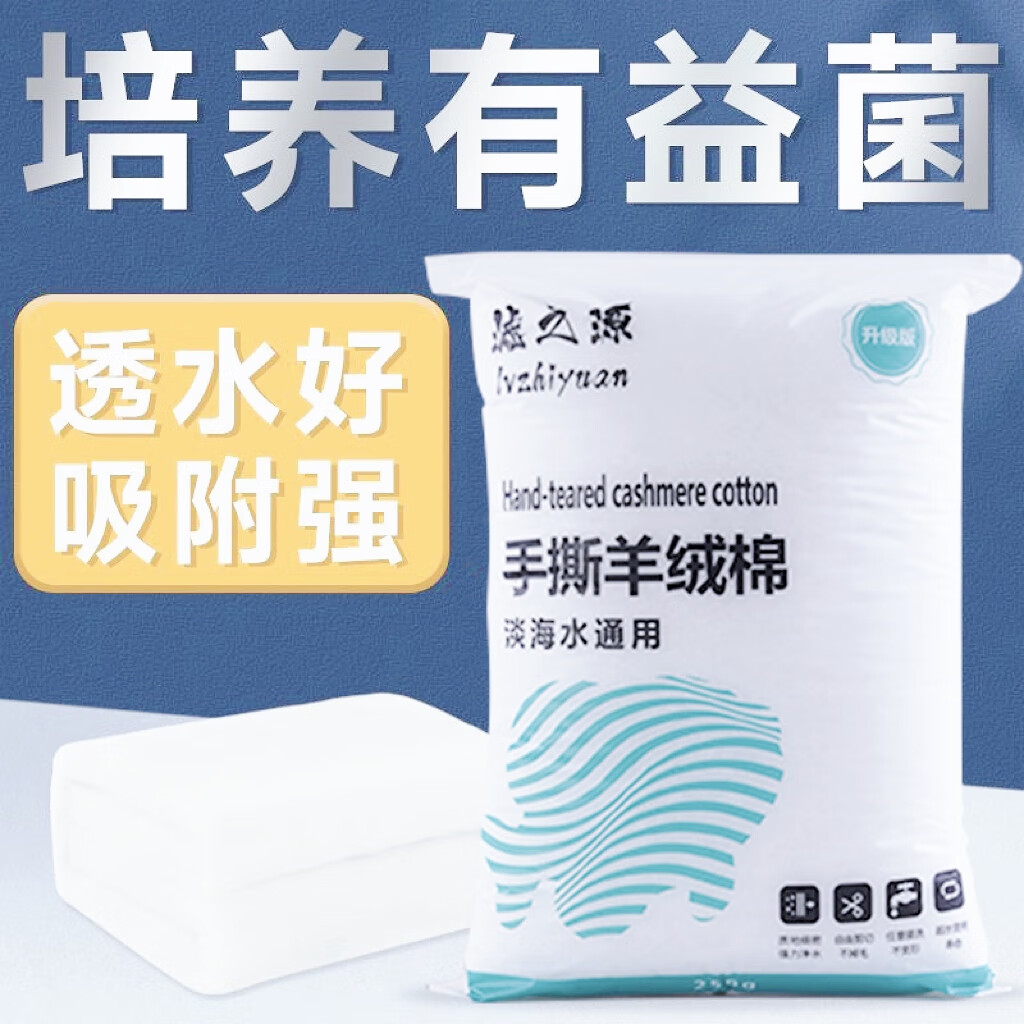鱼缸过滤棉高密度加厚羊绒棉过滤棉水族箱净水滤棉拦截手撕白棉 30*220 【3片】250克加厚过滤棉