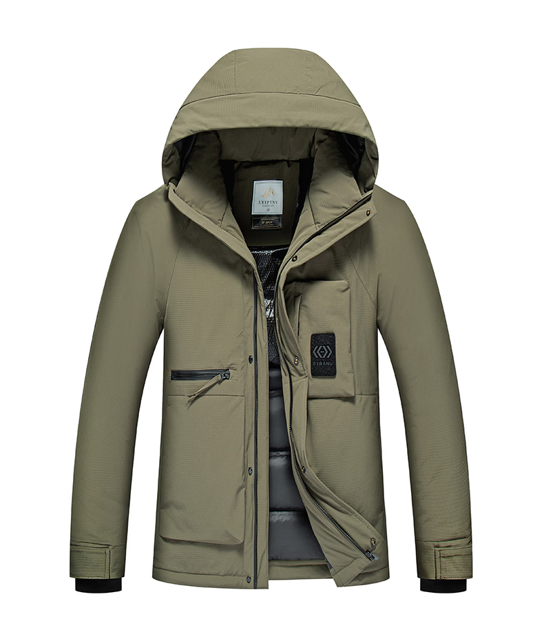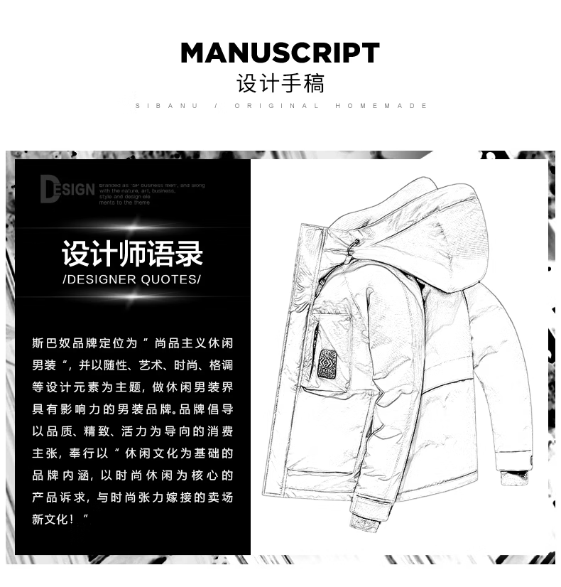斯巴奴加厚羽绒服男短款2025冬季新款休闲连帽鸭绒保暖冬装外套潮工装 黑色 L