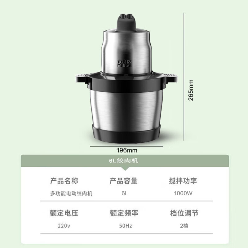 万利达(Malata)绞肉机家用多功能料理机和面机打泥机碎肉机绞馅机搅拌机绞肉绞菜 豪华不锈钢款 5L 【三套六叶立体刀】四档调速