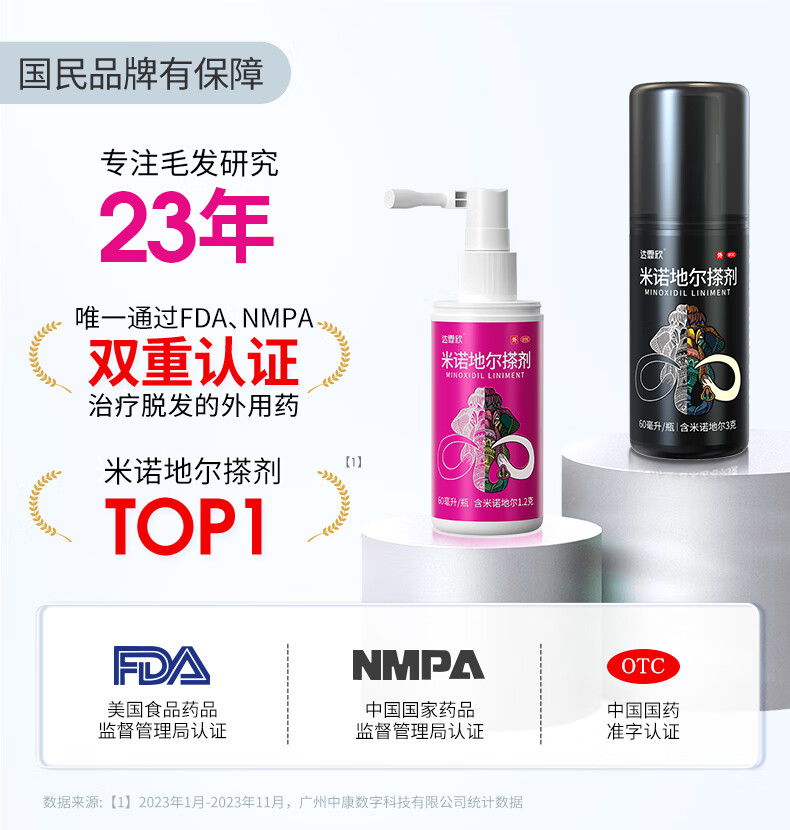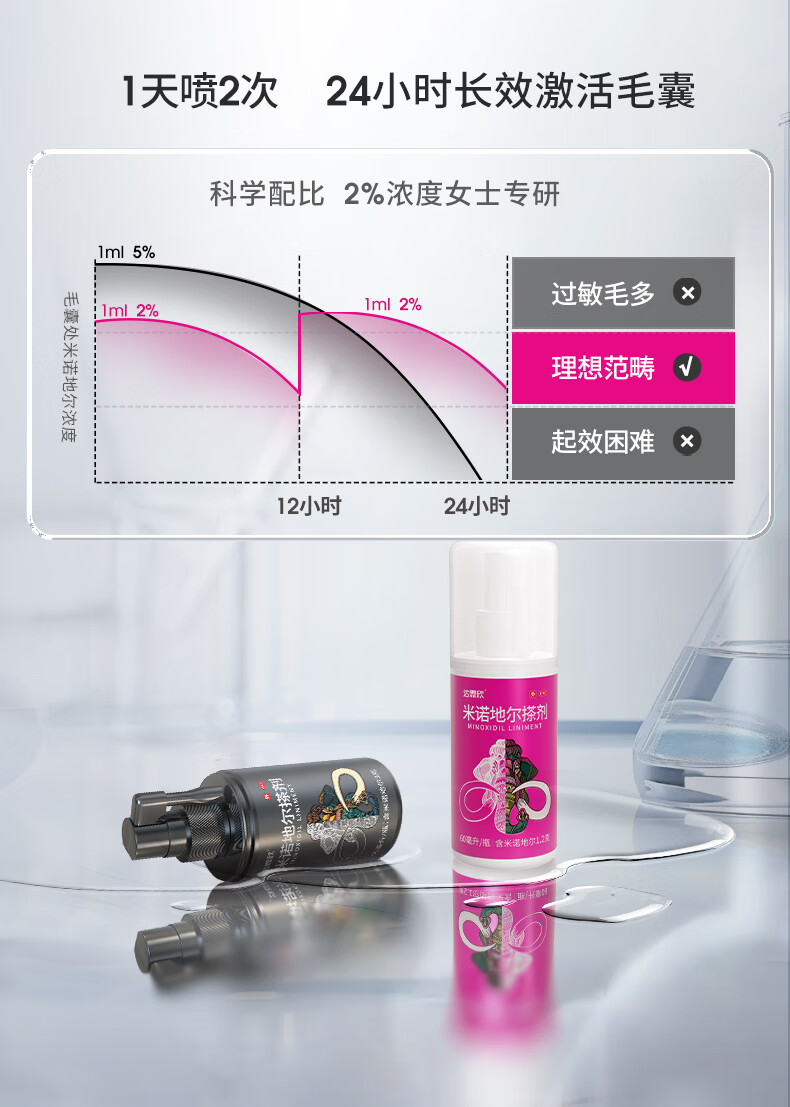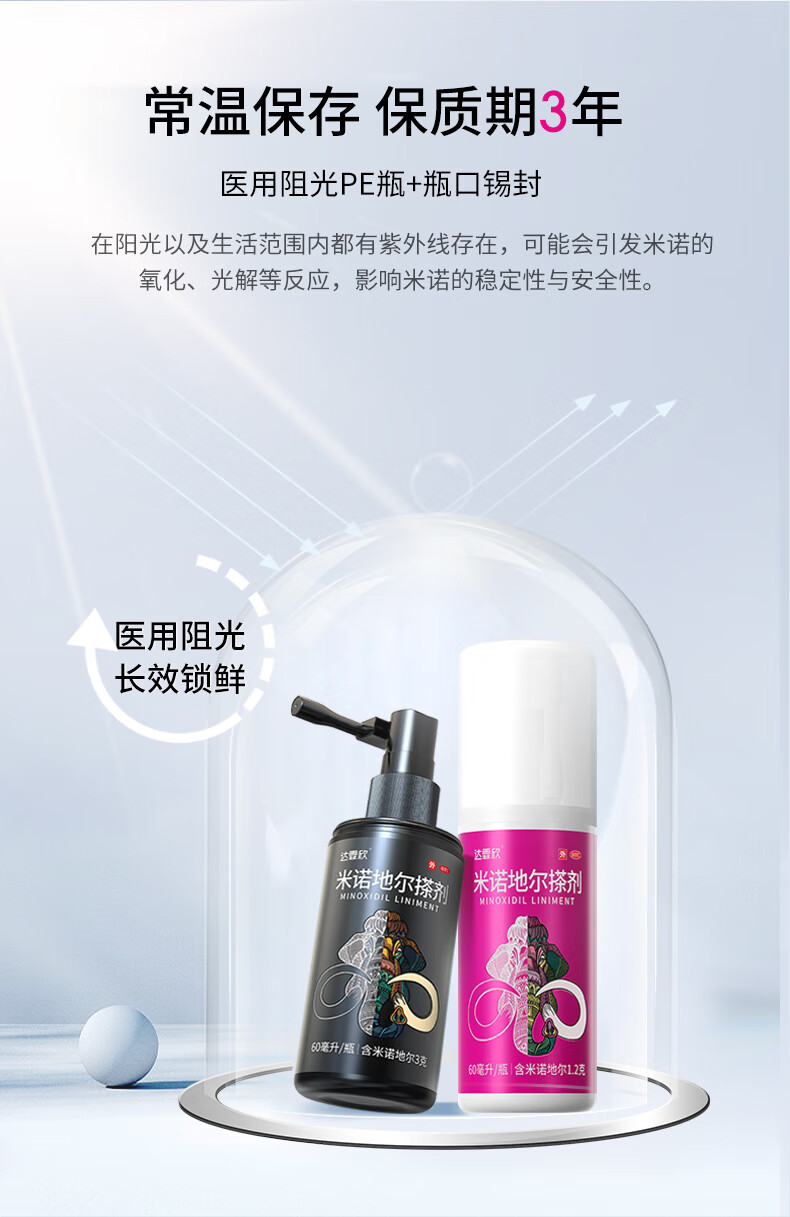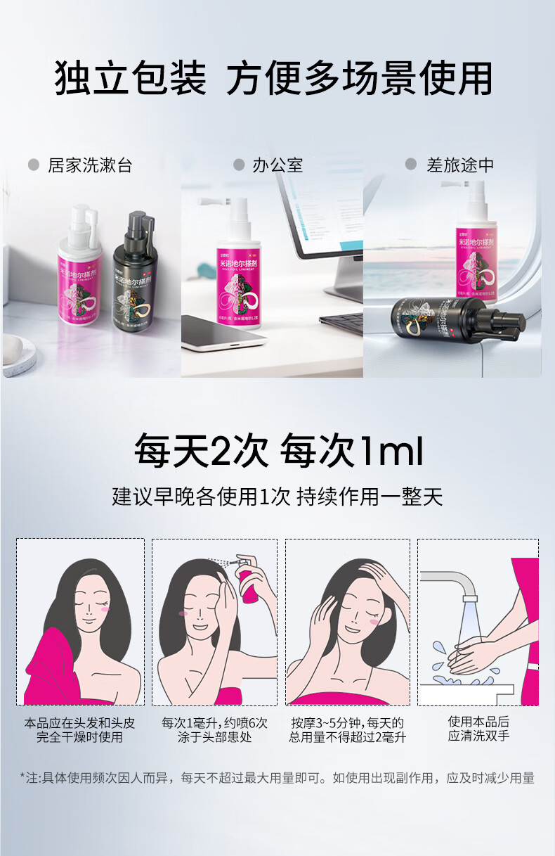 [达霏欣]米诺地尔搽剂 5%*60ml 2瓶装 5%浓度男士专用治脱发生发酊防脱发育发液脱发斑秃 咨询客服,赠好礼