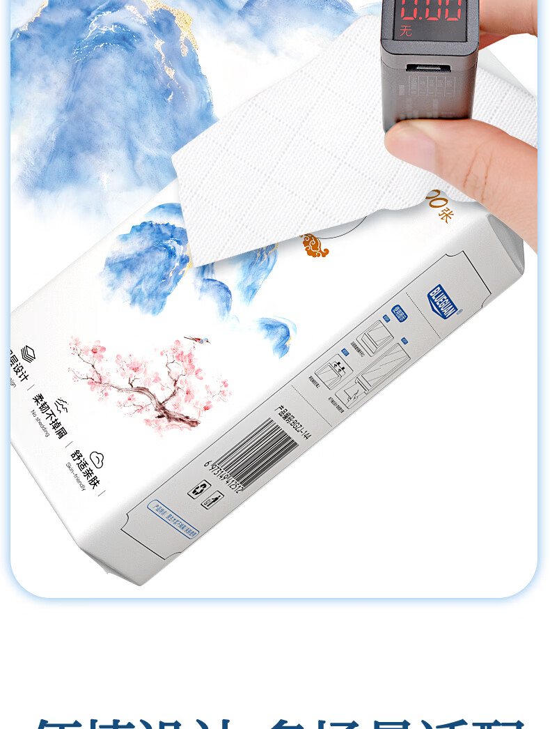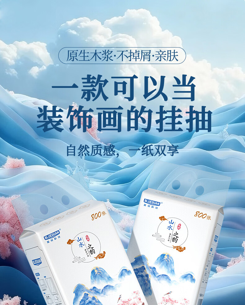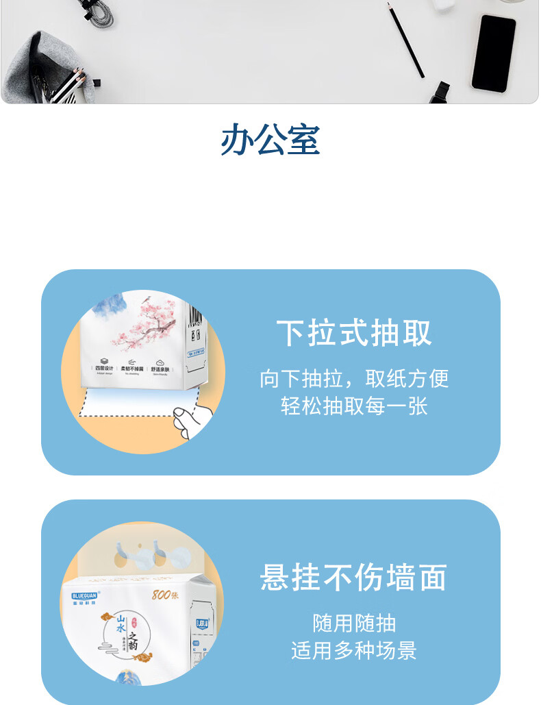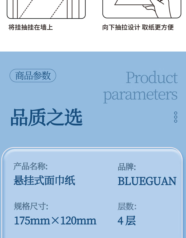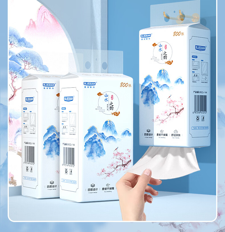 BLUEGUAN家庭大包悬挂式抽纸整箱壁挂式卫生纸厕纸面巾纸擦手纸巾批发 4层 800张*6提