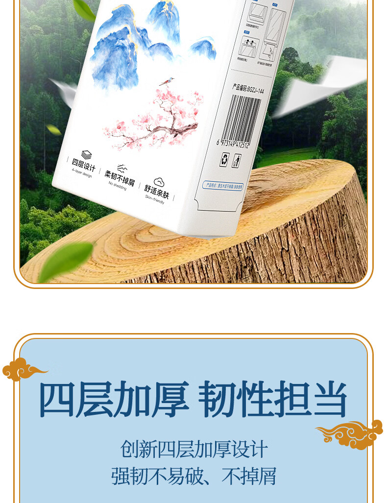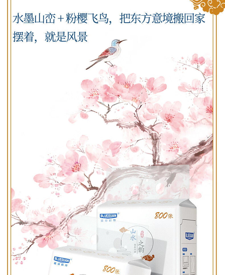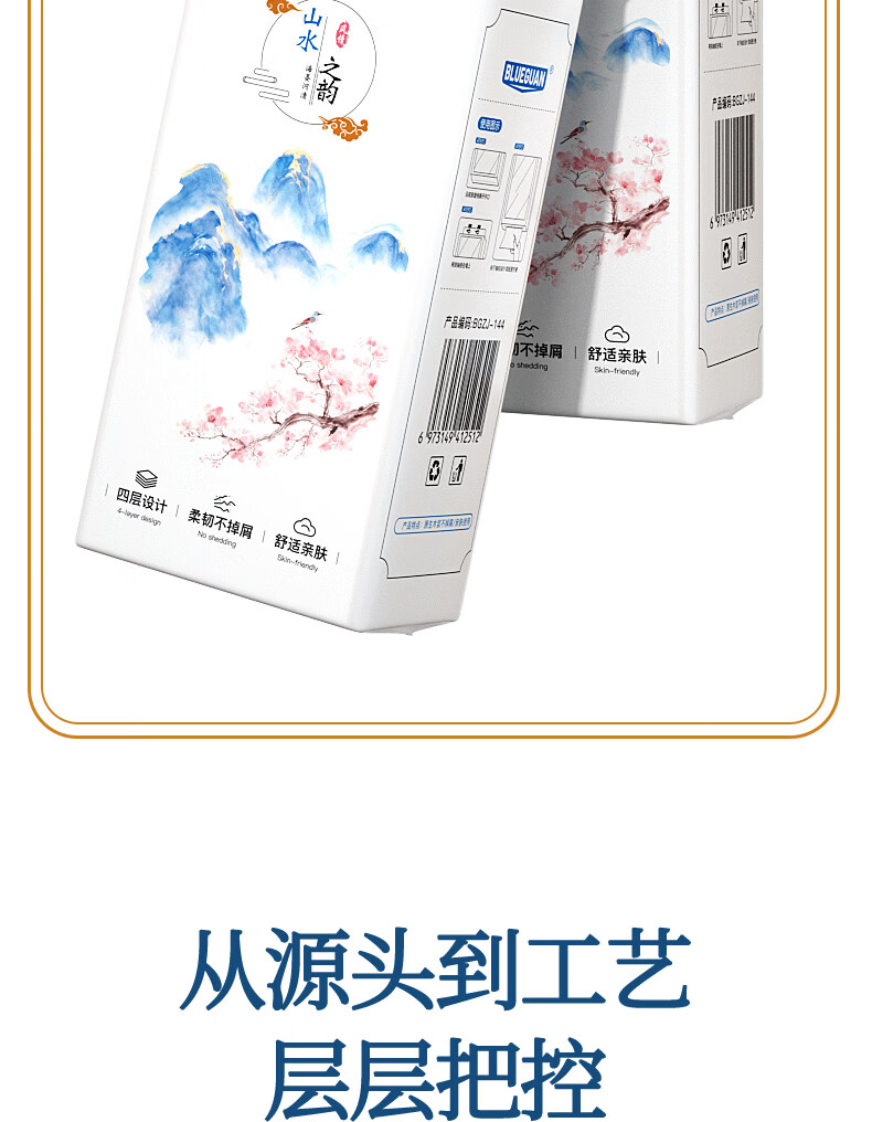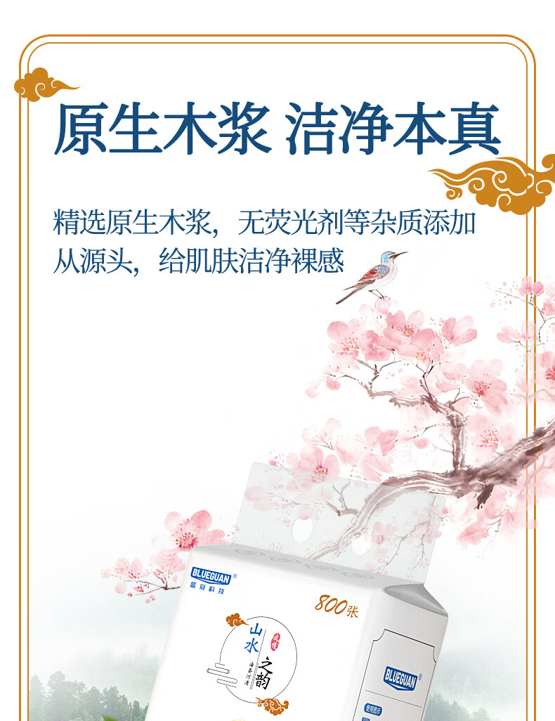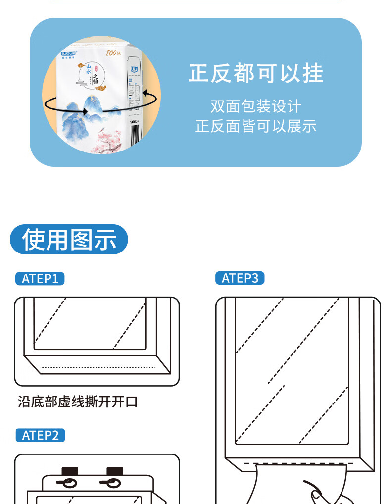 BLUEGUAN家庭大包悬挂式抽纸整箱壁挂式卫生纸厕纸面巾纸擦手纸巾批发 4层 800张*6提