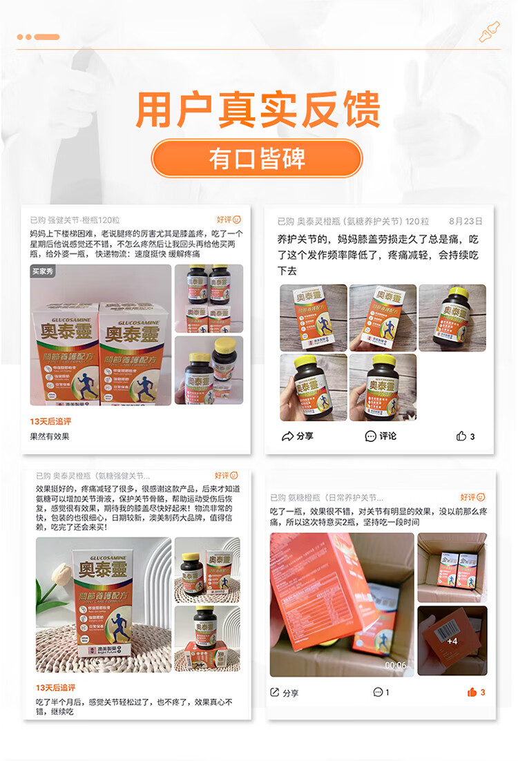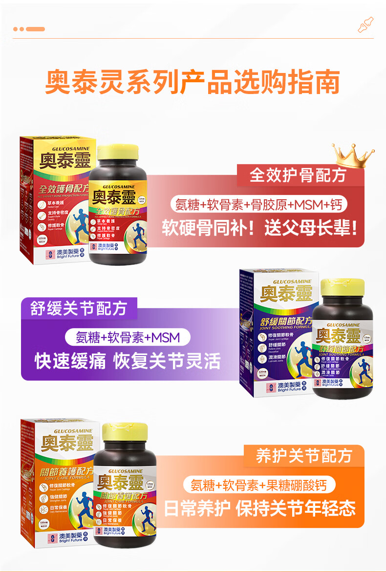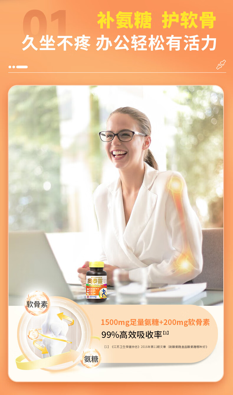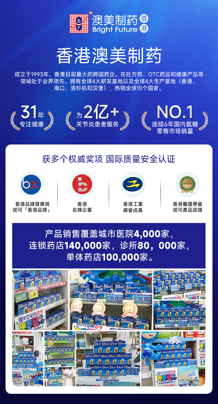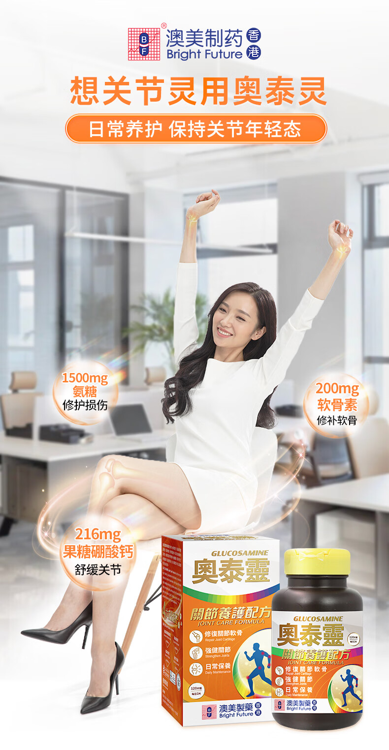 澳美製藥奥泰灵香港原装盐酸氨糖软骨素氨基葡萄糖骨关节润滑损伤修复养护 奥泰灵专业氨糖(关节养护+修复) 120粒*1盒