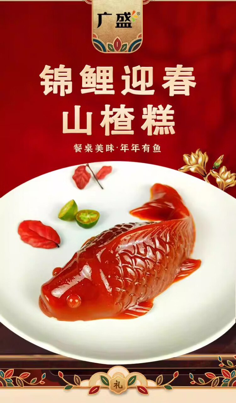 广盛年年有鱼山楂锦鲤山楂糕年货造型蜜饯年夜饭新年大吉餐桌摆盘必备 山楂鲤鱼218g*2条【年年有鱼】