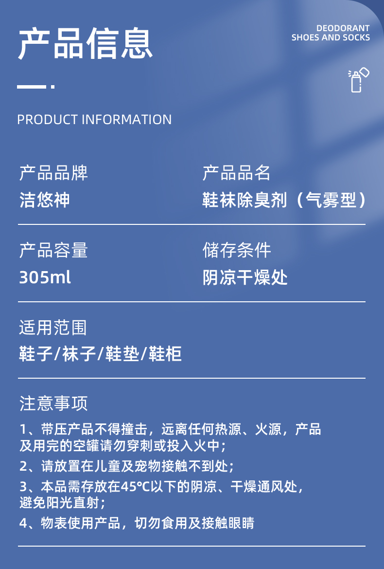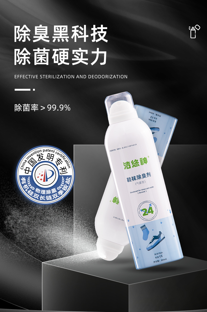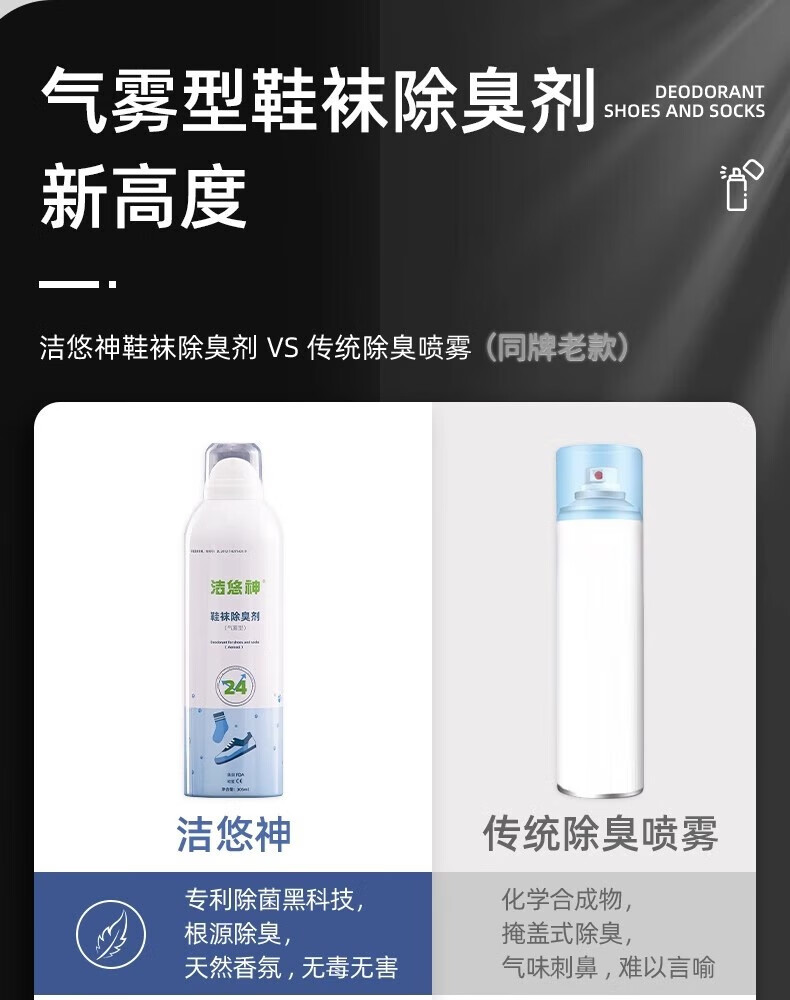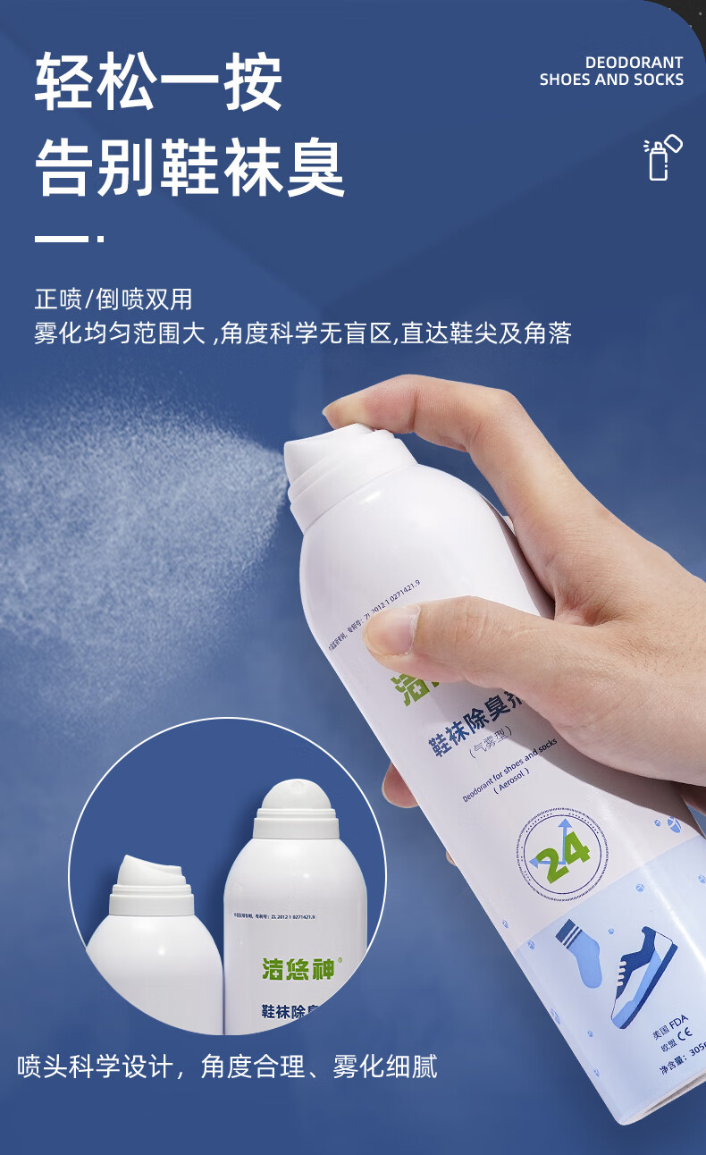 洁悠神鞋子除臭喷雾异味杀菌物理除菌鞋柜除臭长效抑菌清新留香消臭神器 一瓶装305ml【木质香型】